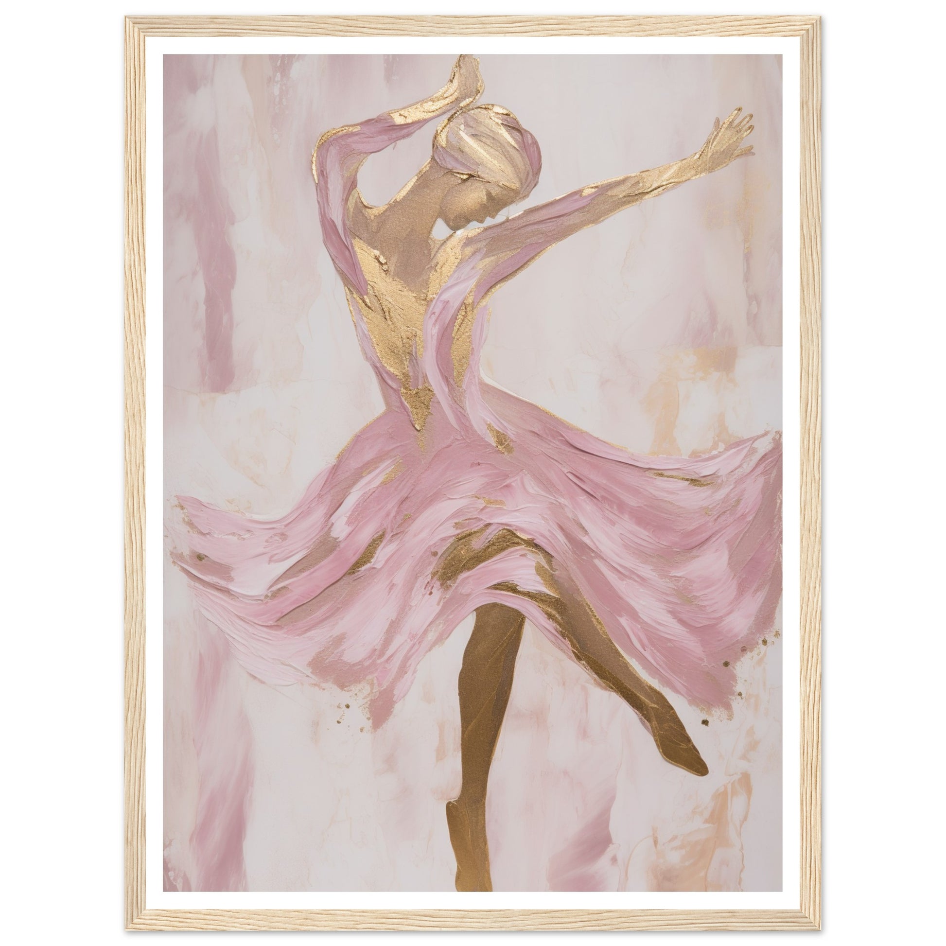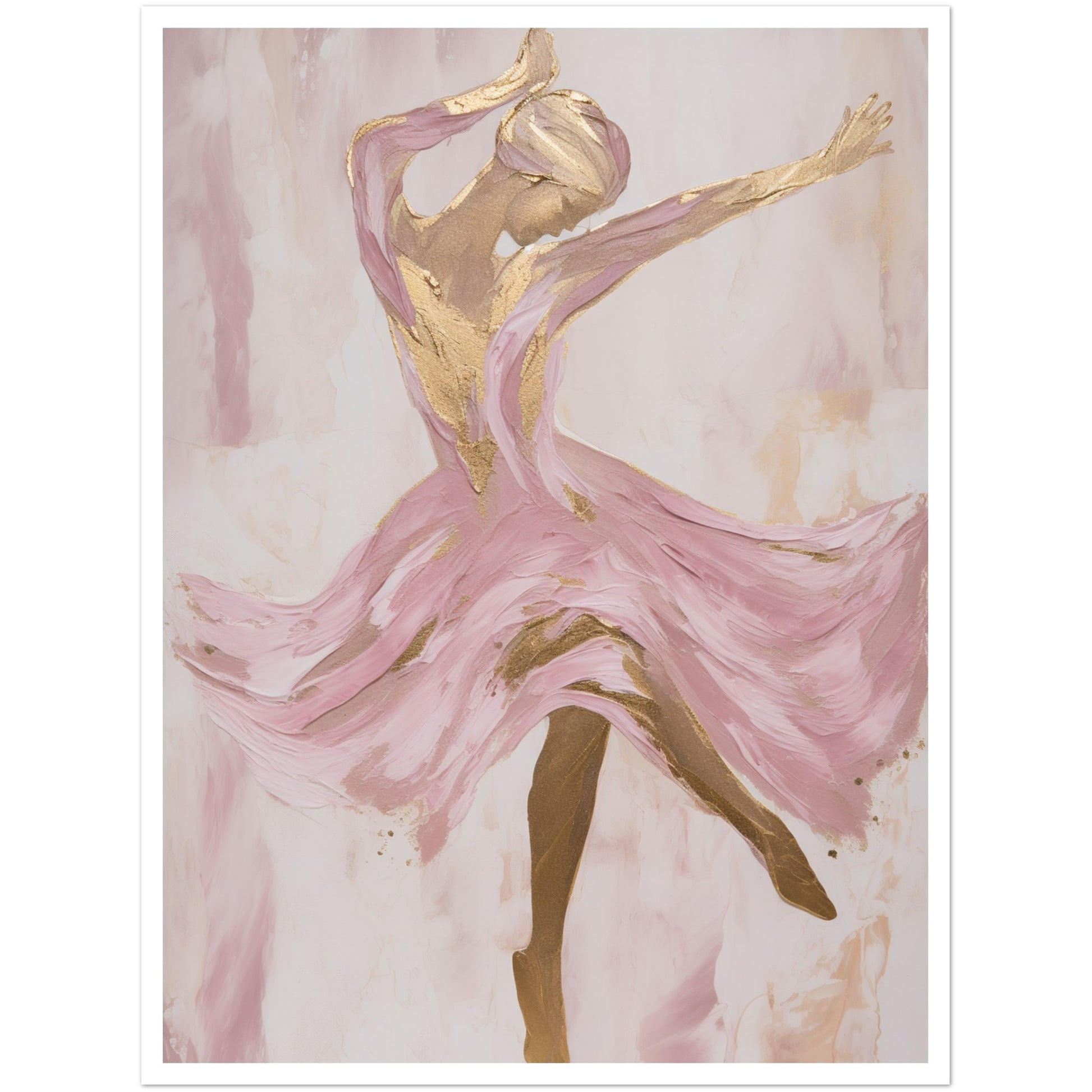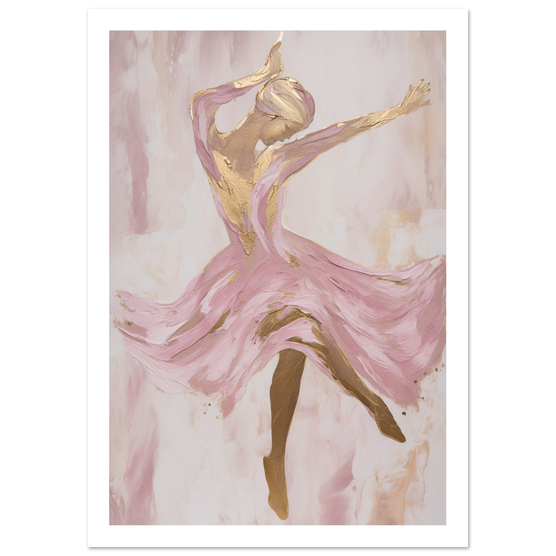Fluid Ballet Dancer in Pink and Gold Wall Art Print