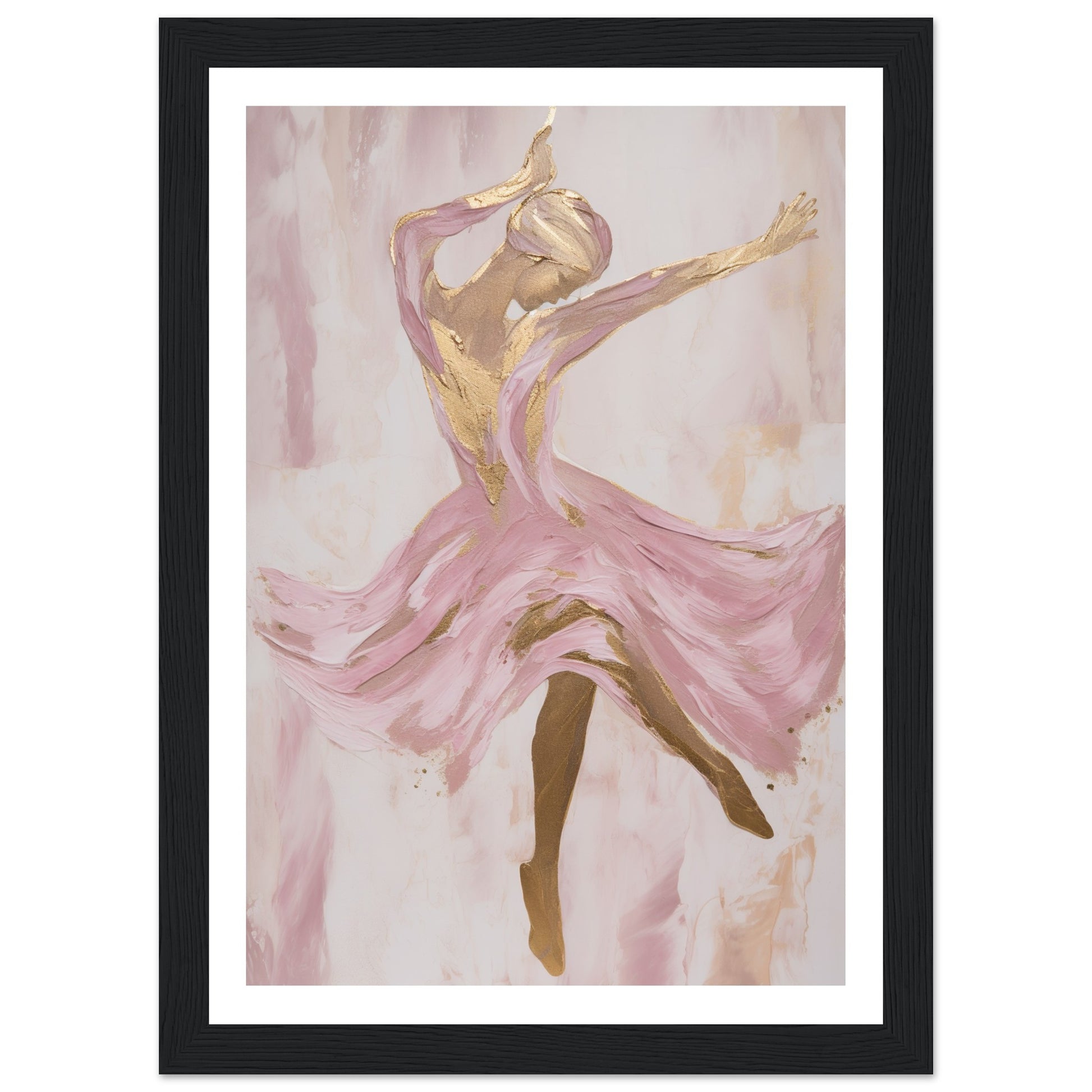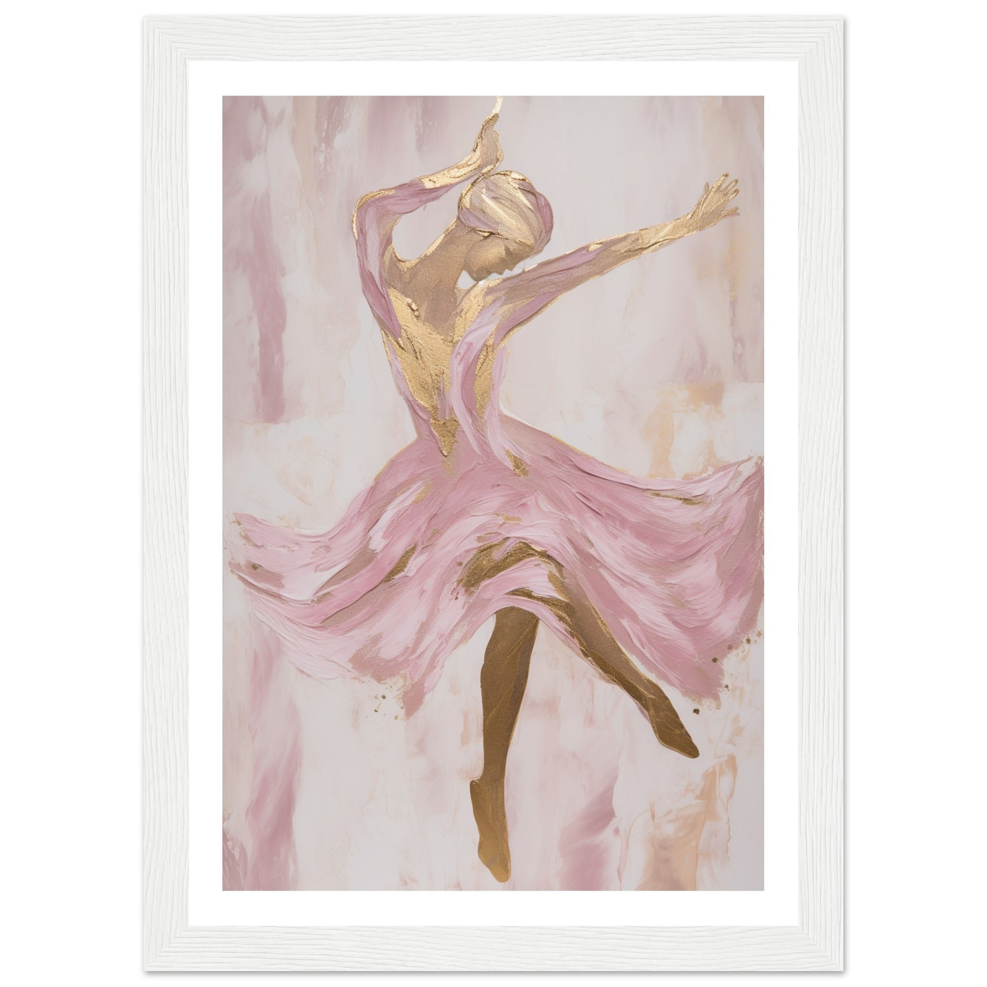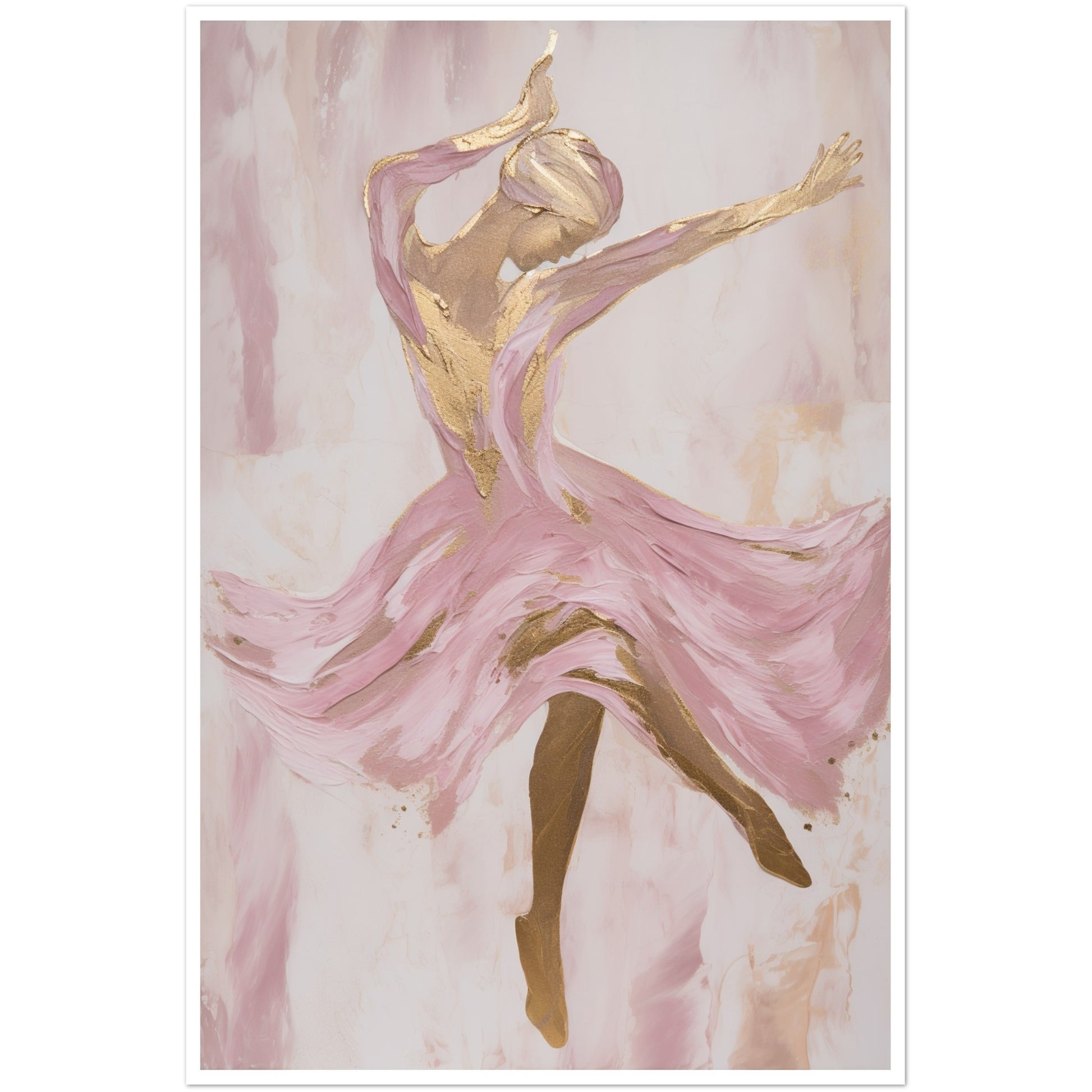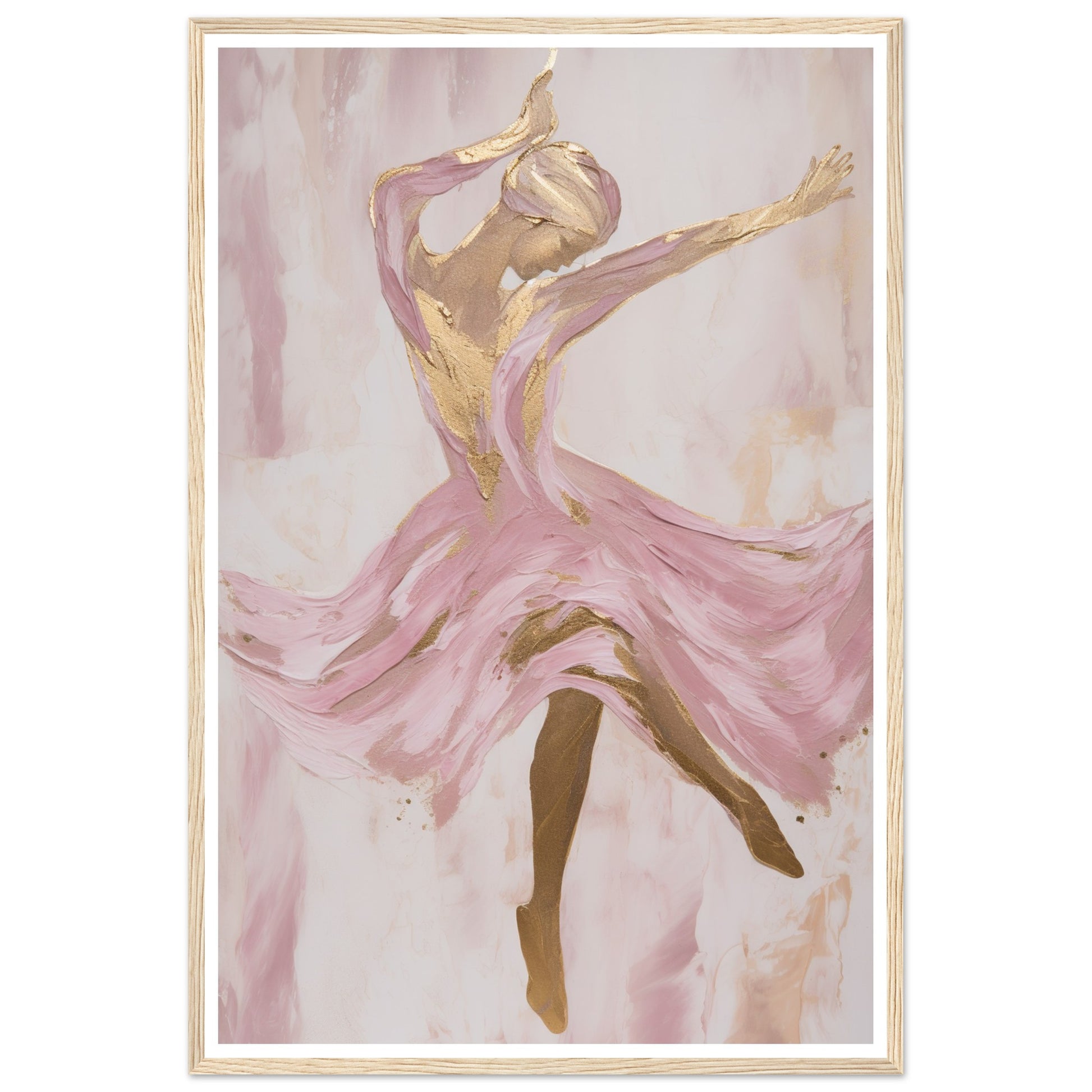 Fluid Ballet Dancer in Pink and Gold Wall Art Print