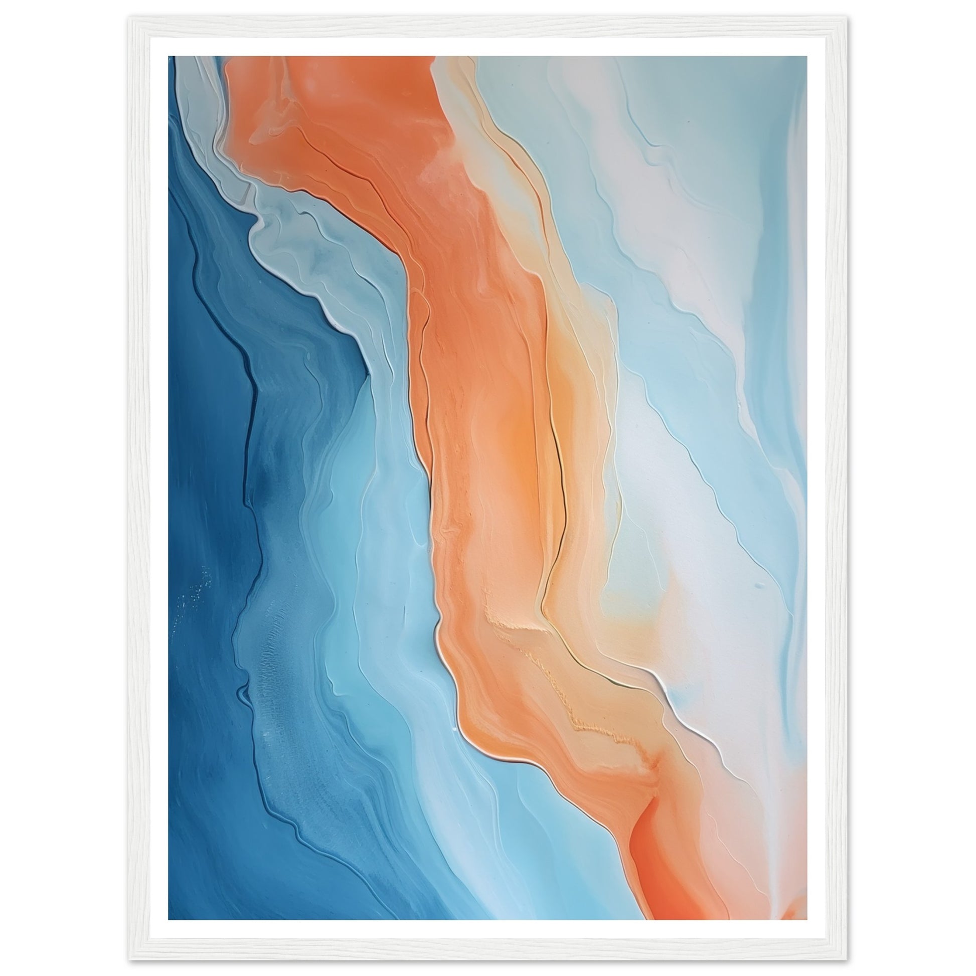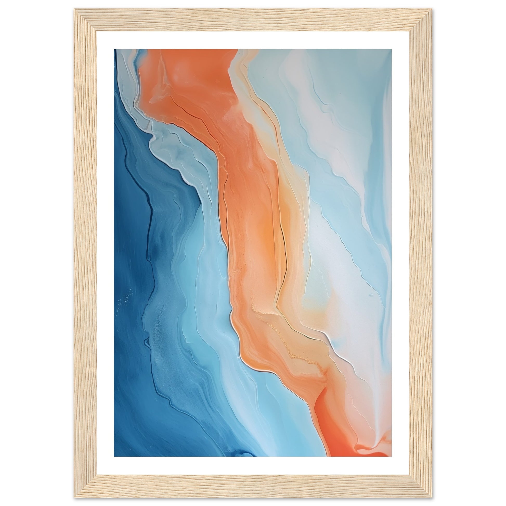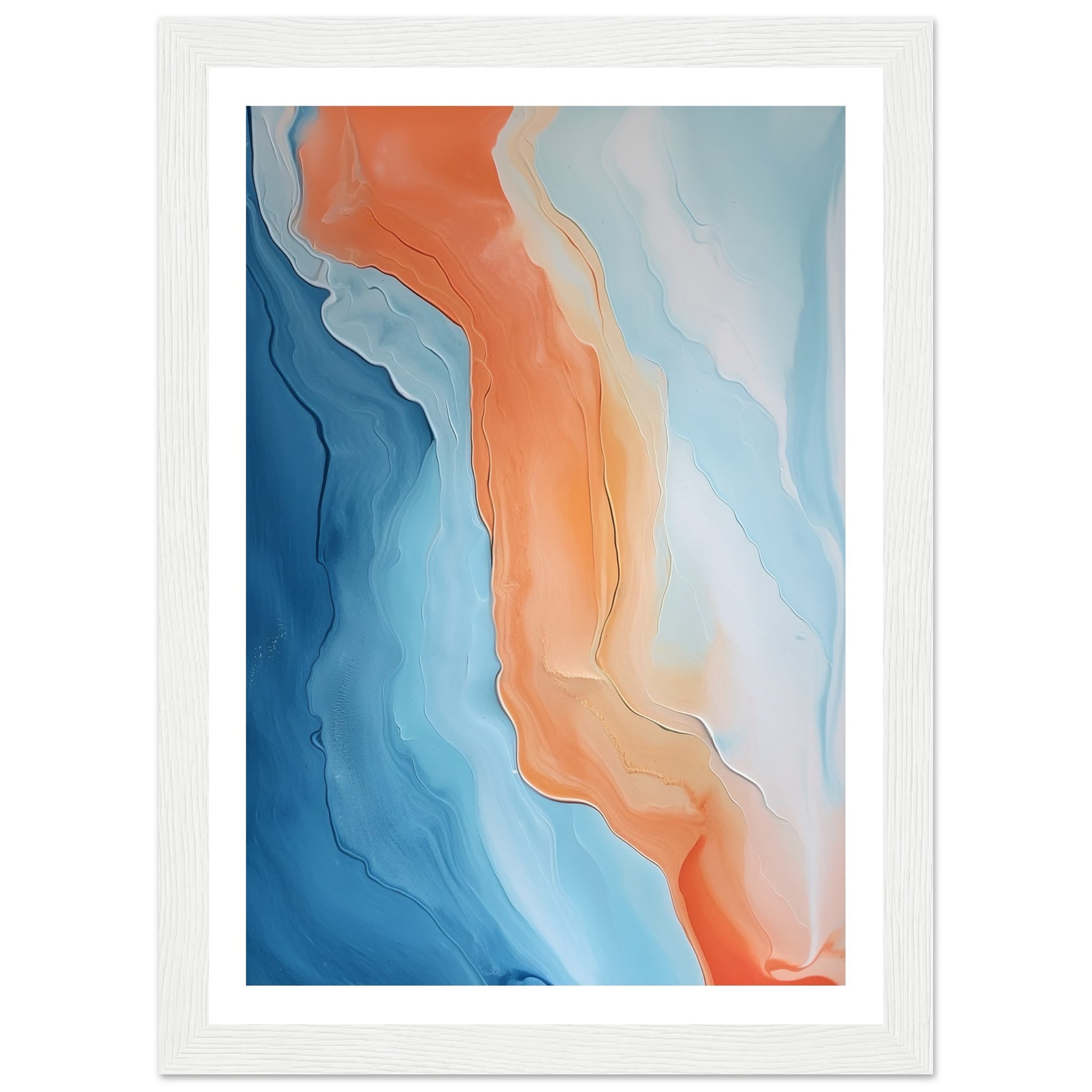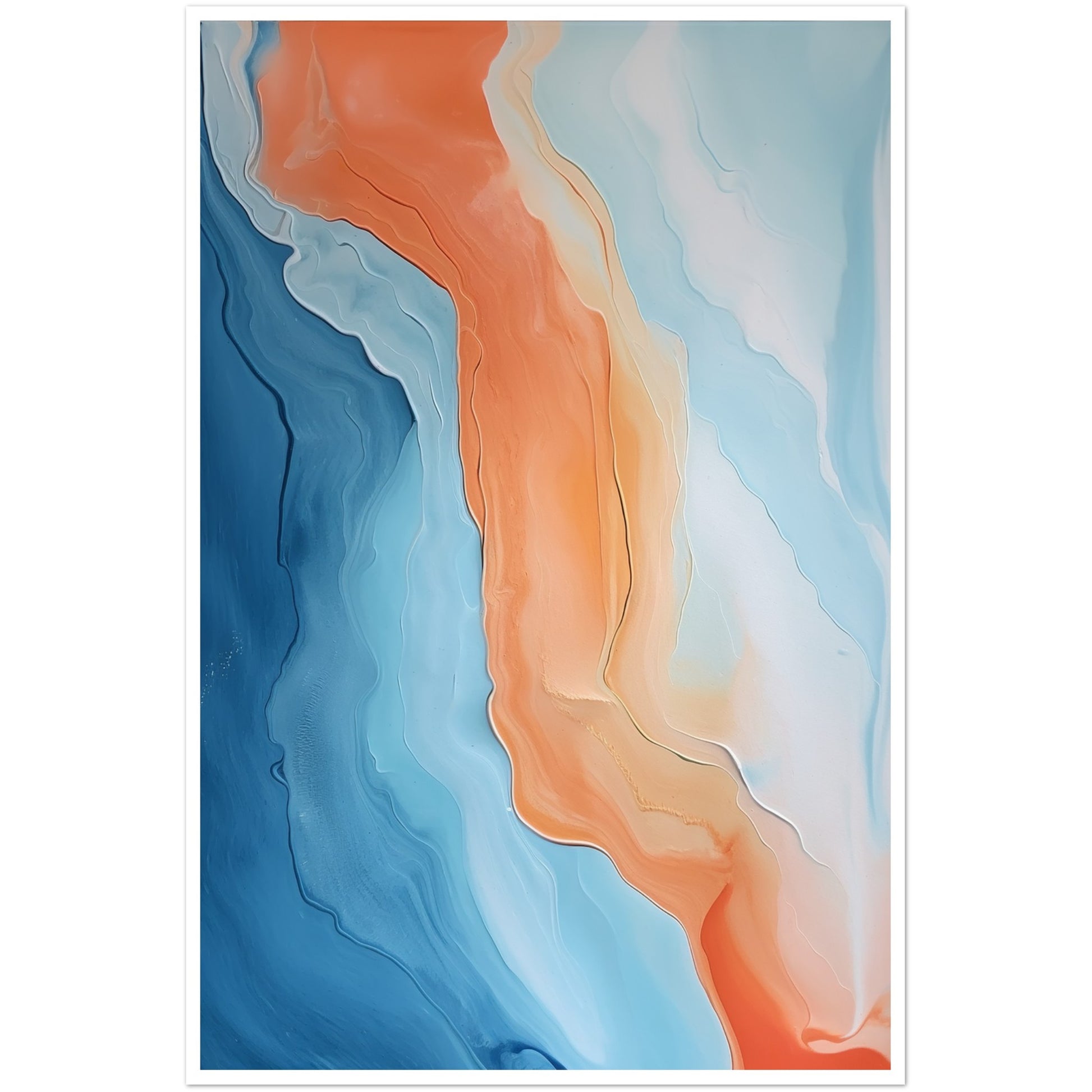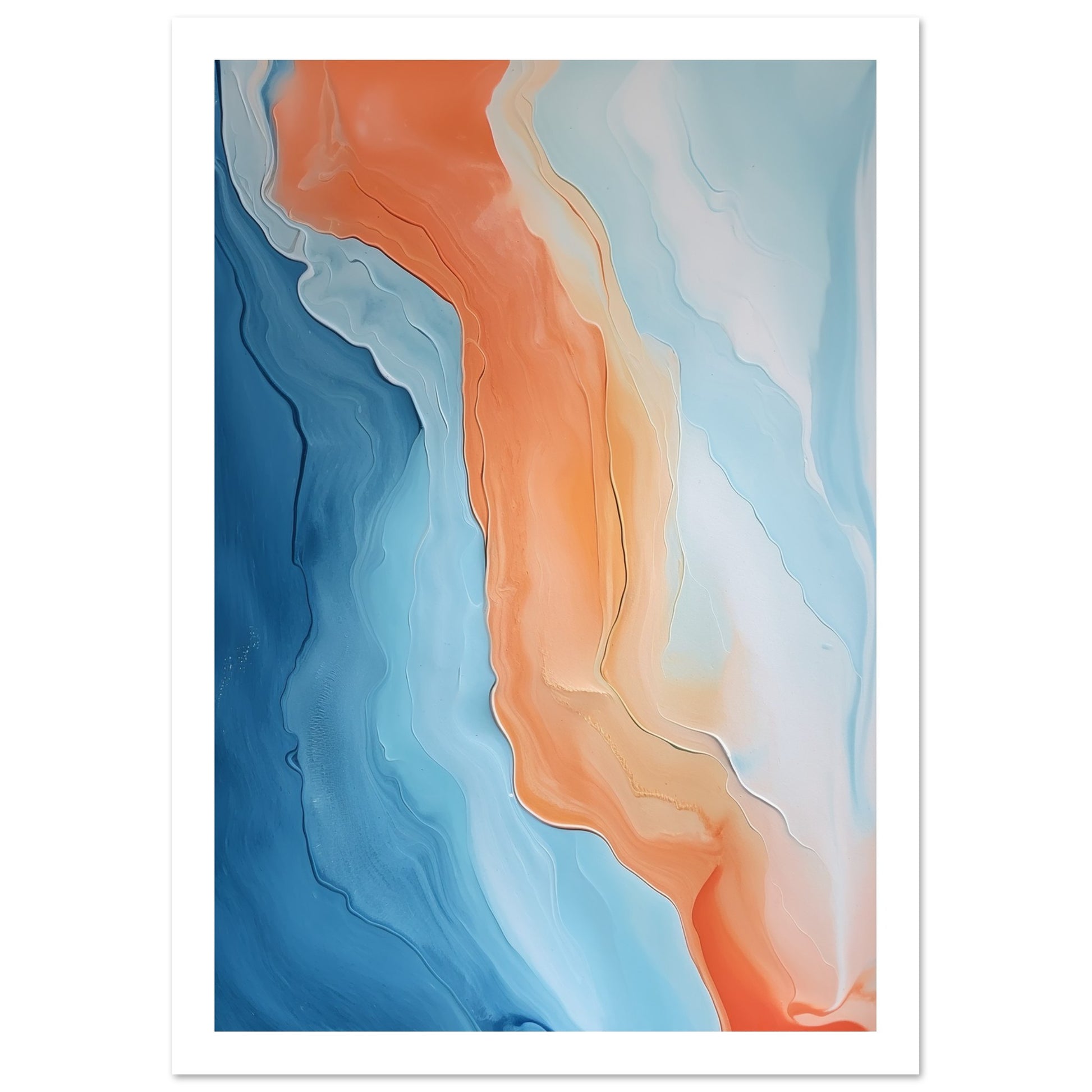 Melted Streams of Orange and Blue Abstract Painting Wall Art Print