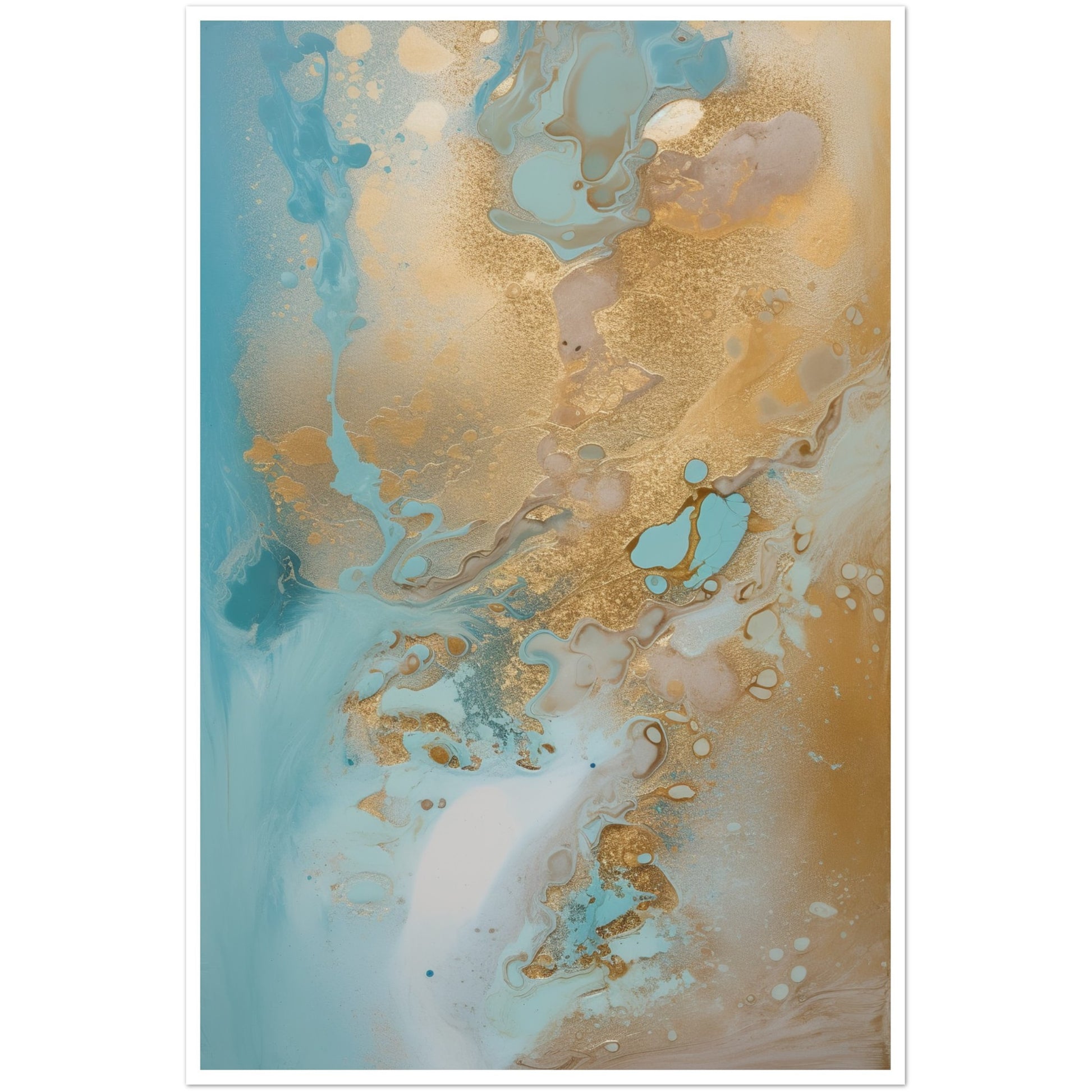 View compareMelted Waves of Blue and Bronze Shimmer Abstract Painting Wall Art Print