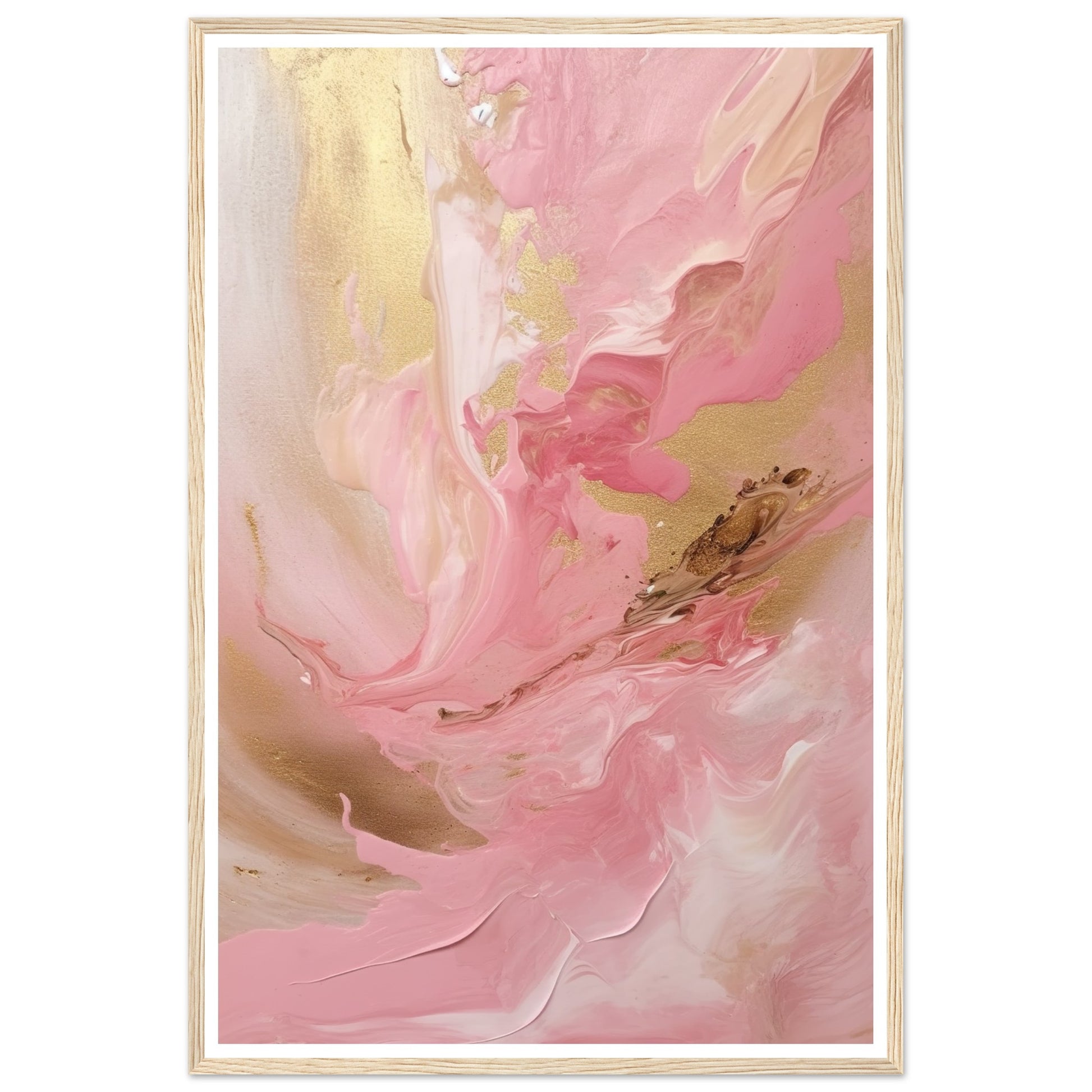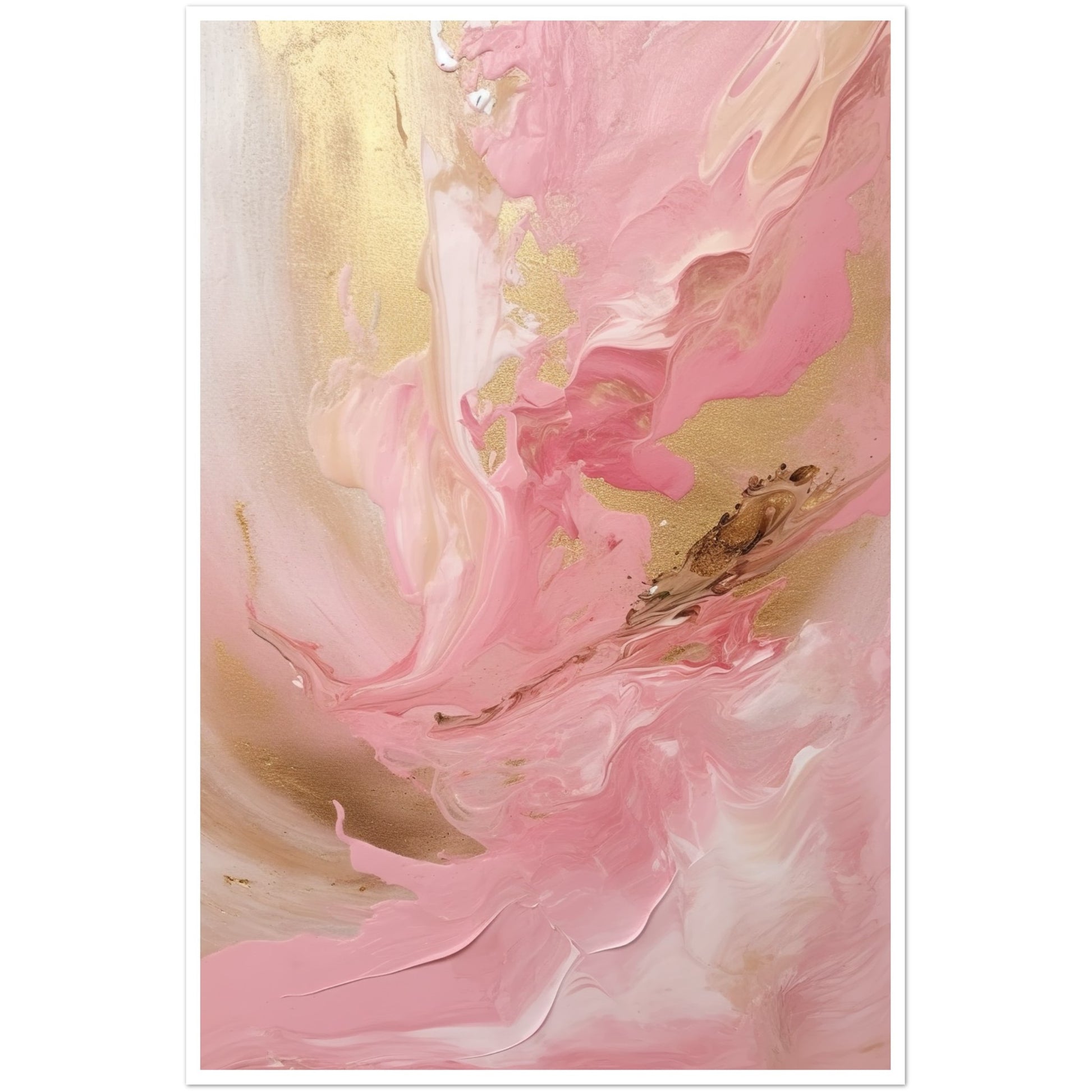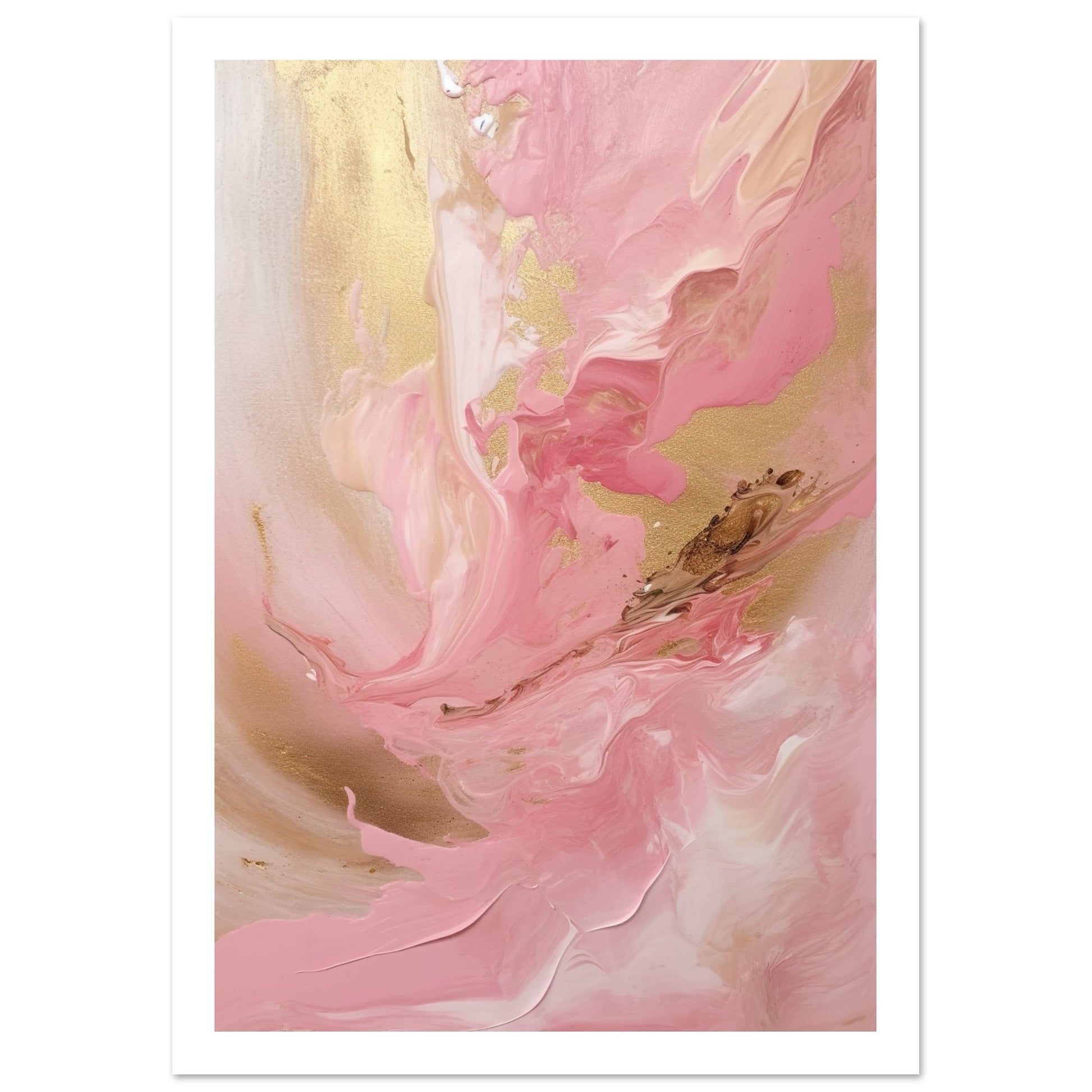 Melting Waves of Pink and Gold Abstract Painting Wall Art Print