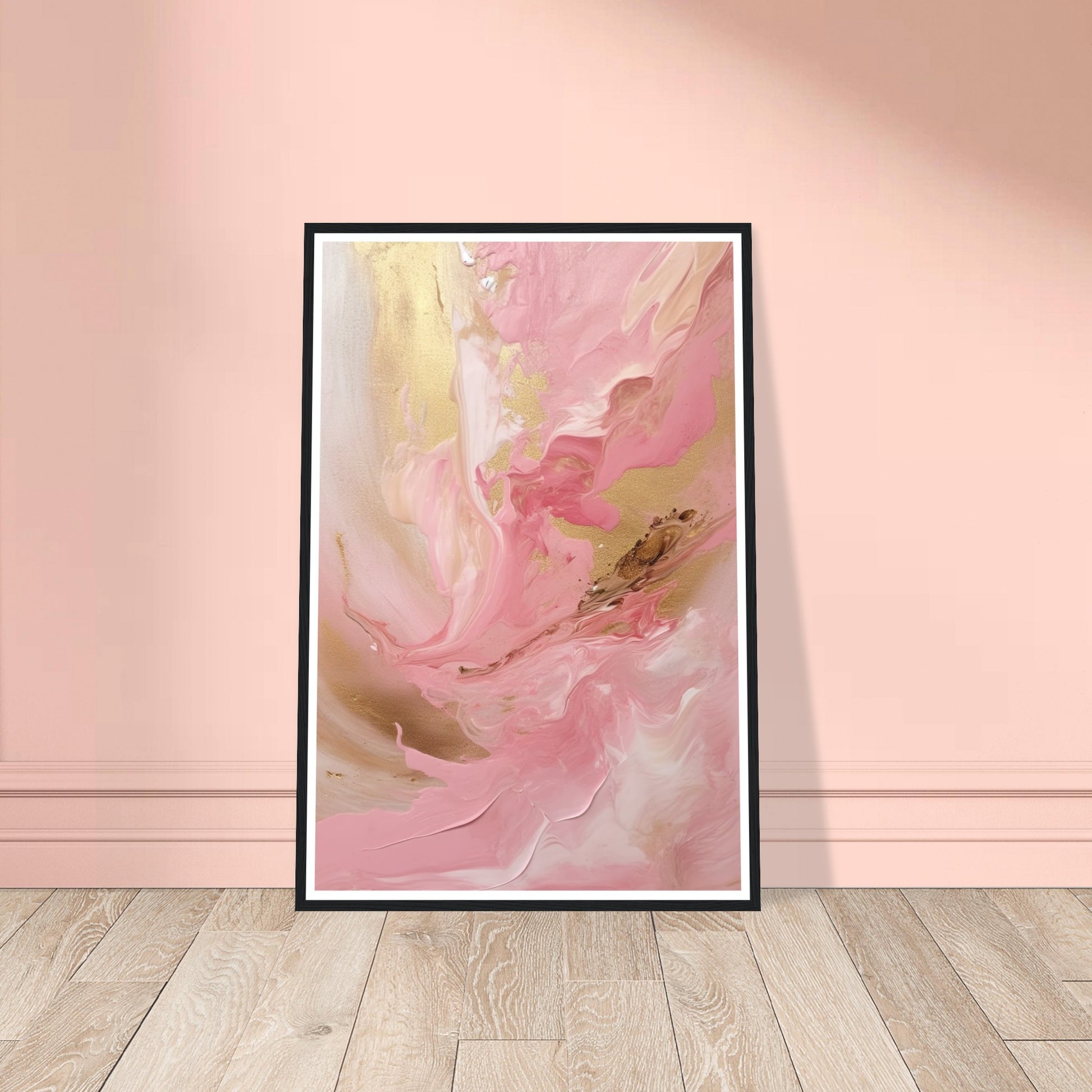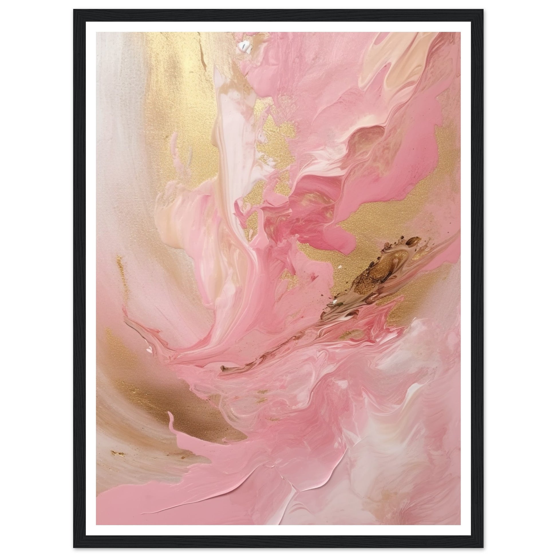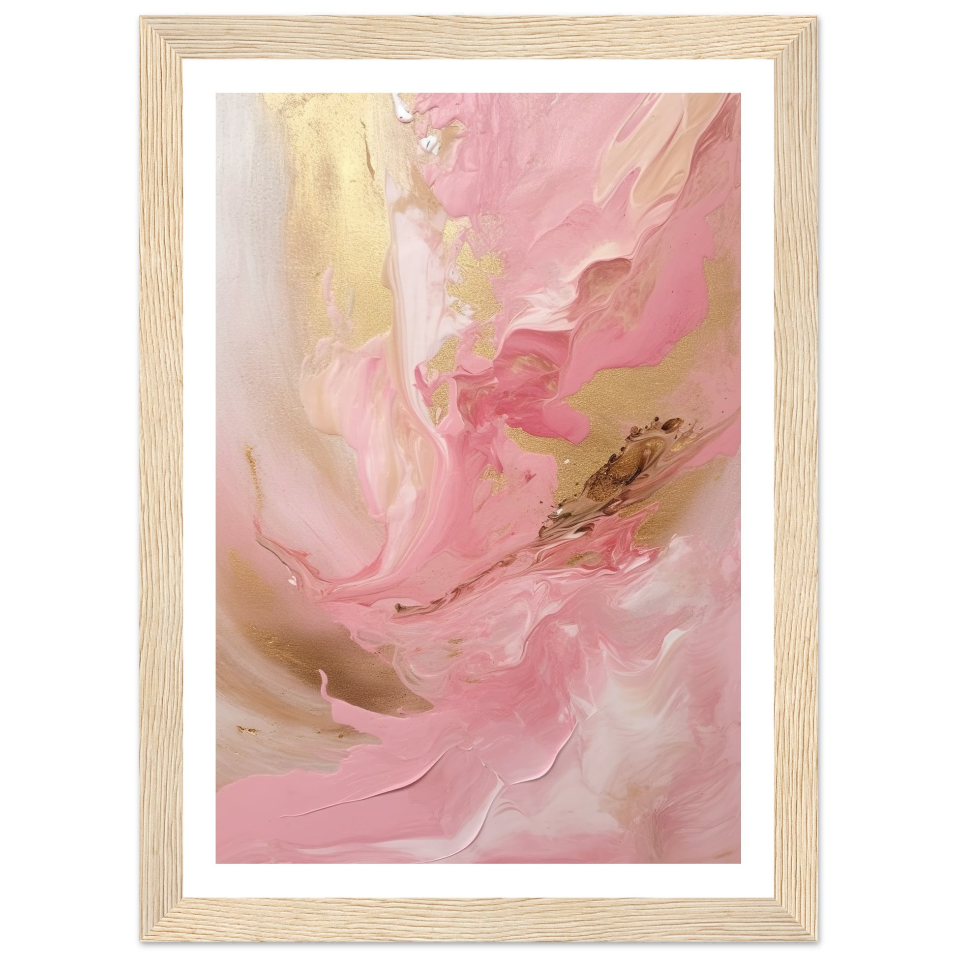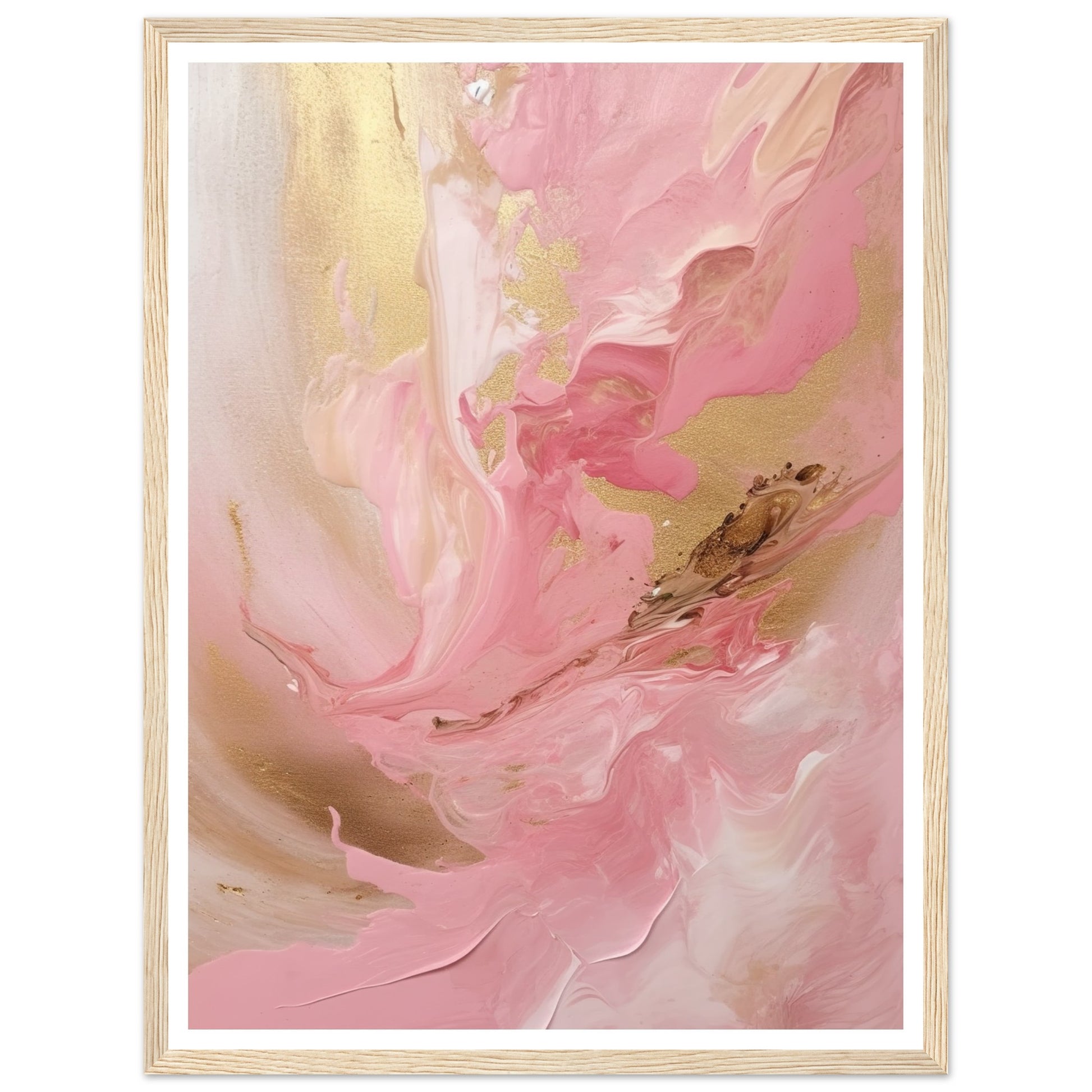 Melting Waves of Pink and Gold Abstract Painting Wall Art Print