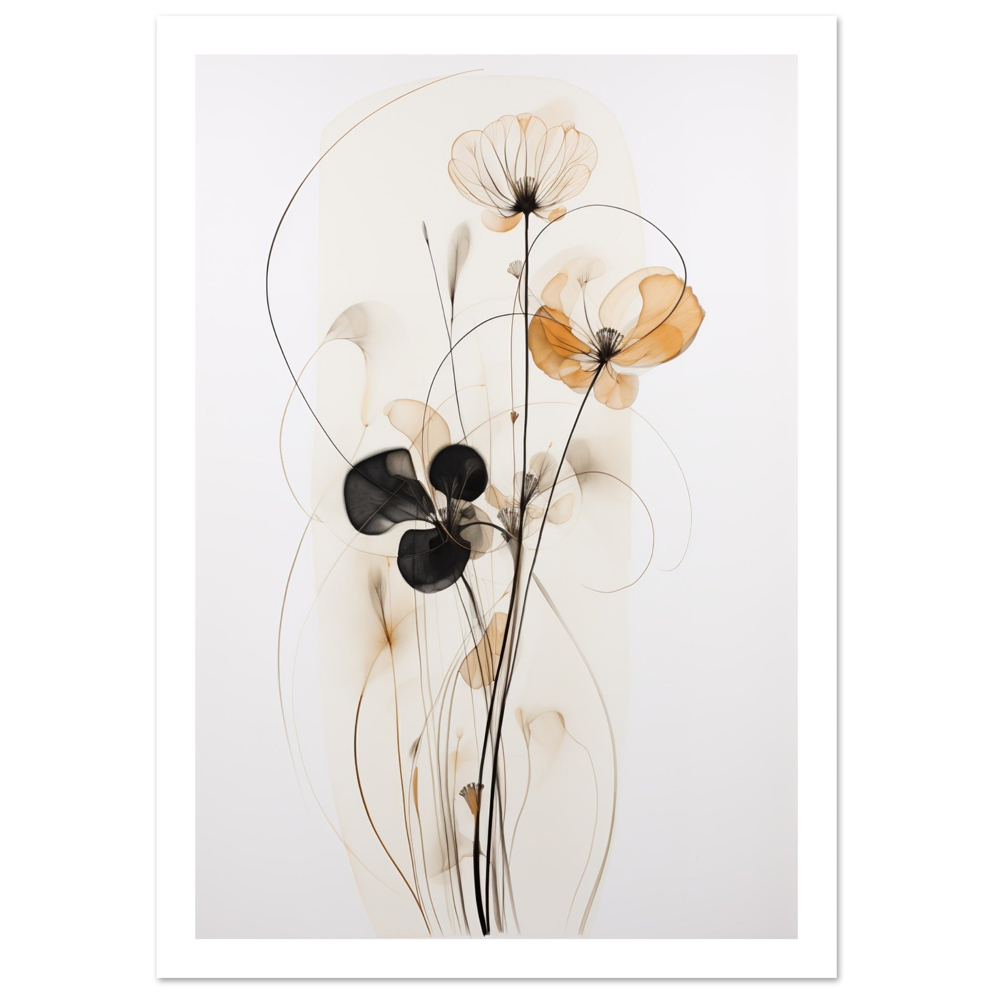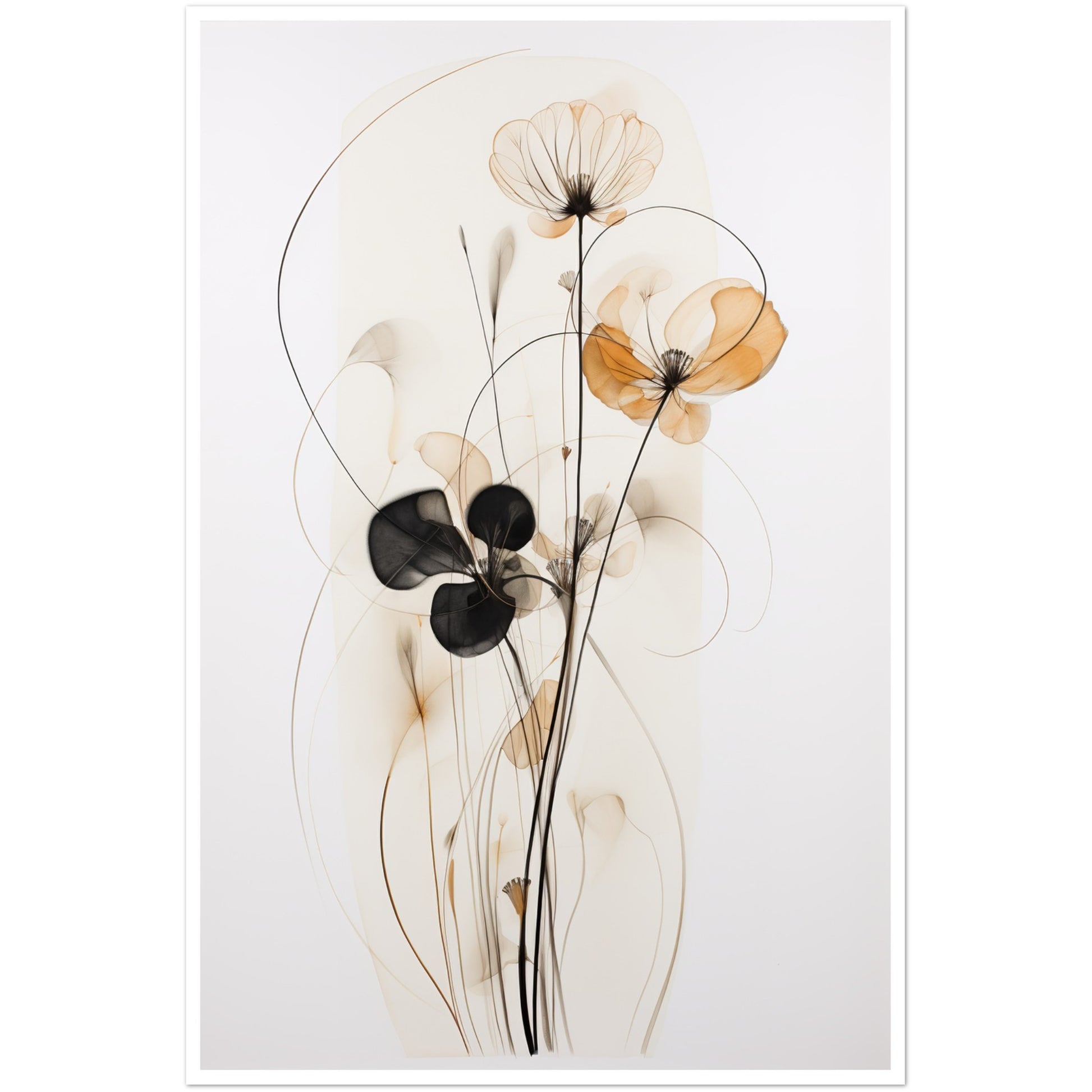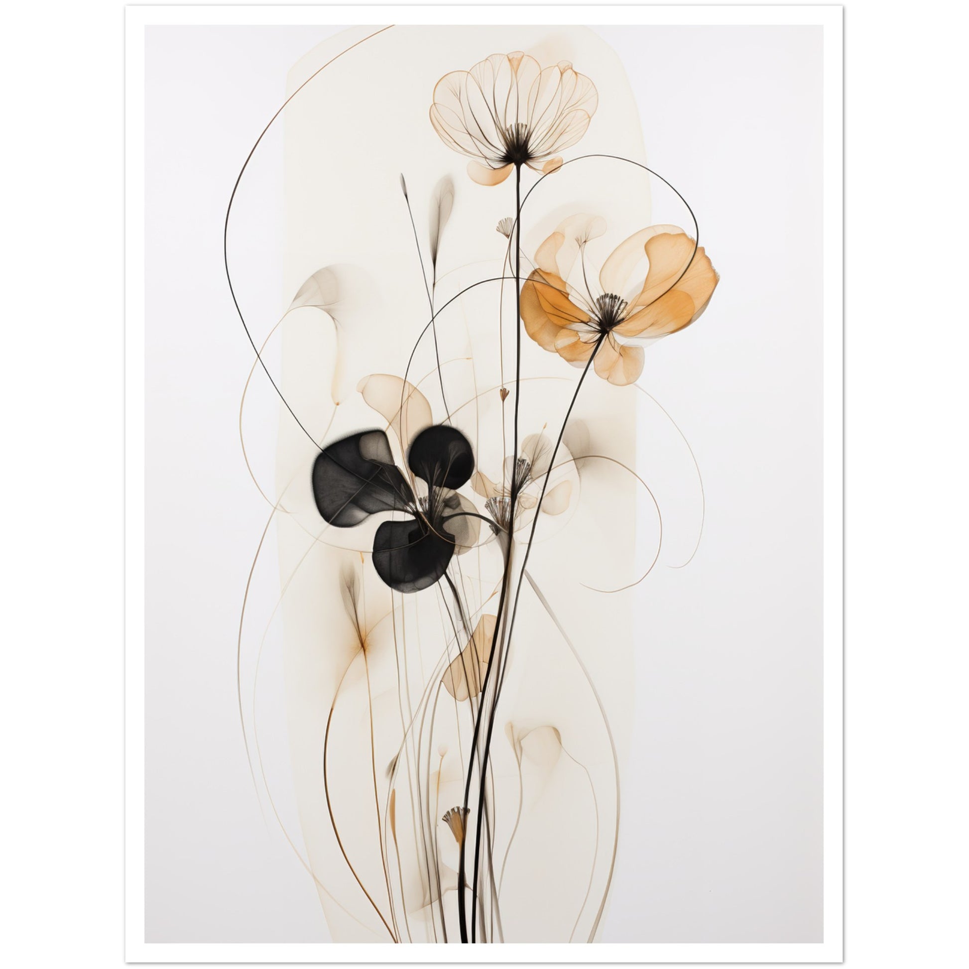 The muted brown and beige palette creates a calming effect, allowing the intricate details of the wire-like structure and watercolour petals to stand out. "Subtle Petal Whimsy" is a perfect embodiment of delicate floral artistry within the realm of minimalist expression. Elevate your space with the understated beauty of "Subtle Petal Whimsy," where each element is thoughtfully curated to evoke a sense of tranquillity and artistic simplicity. This minimalist abstract artwork invites you to appreciate the grace found in the quiet details of nature.