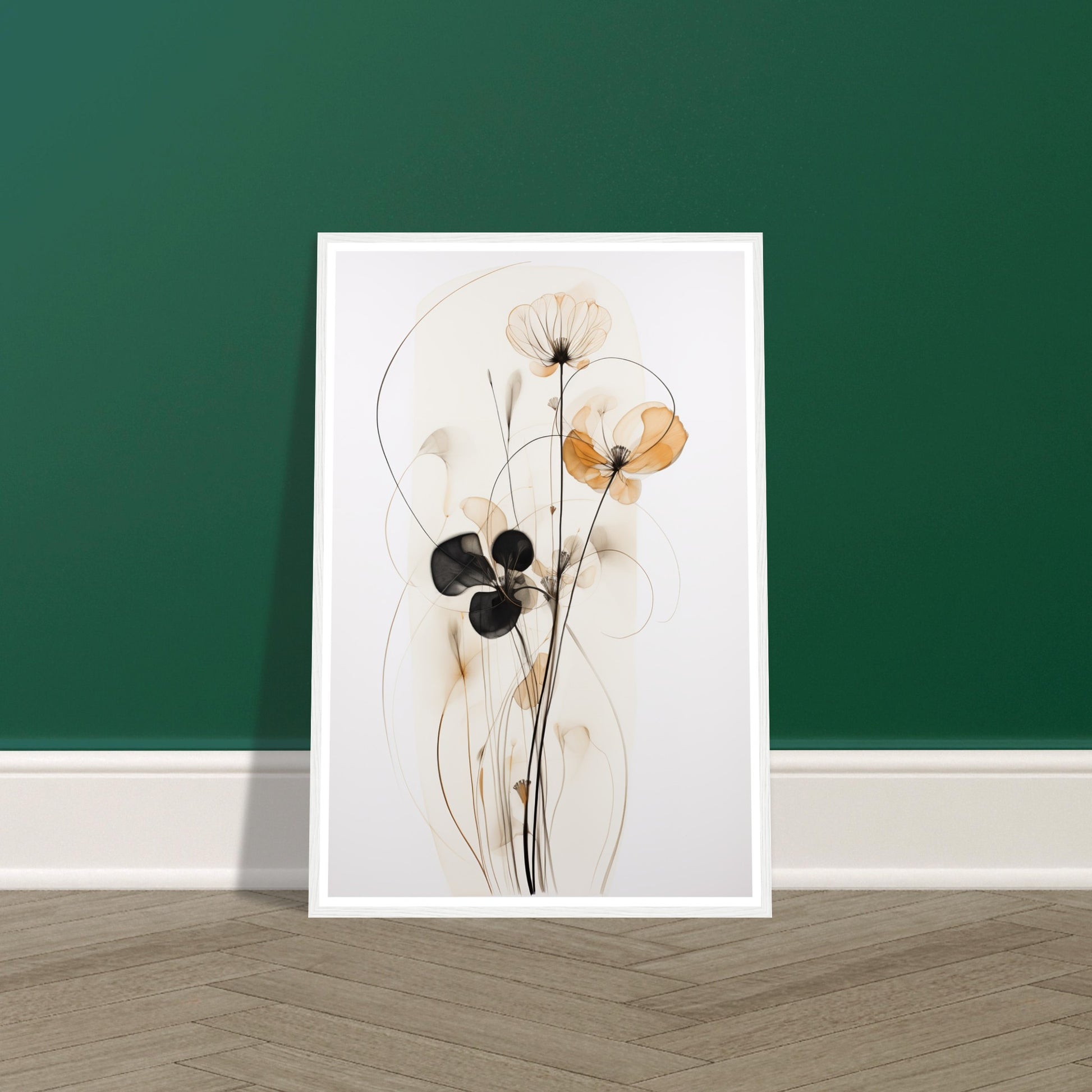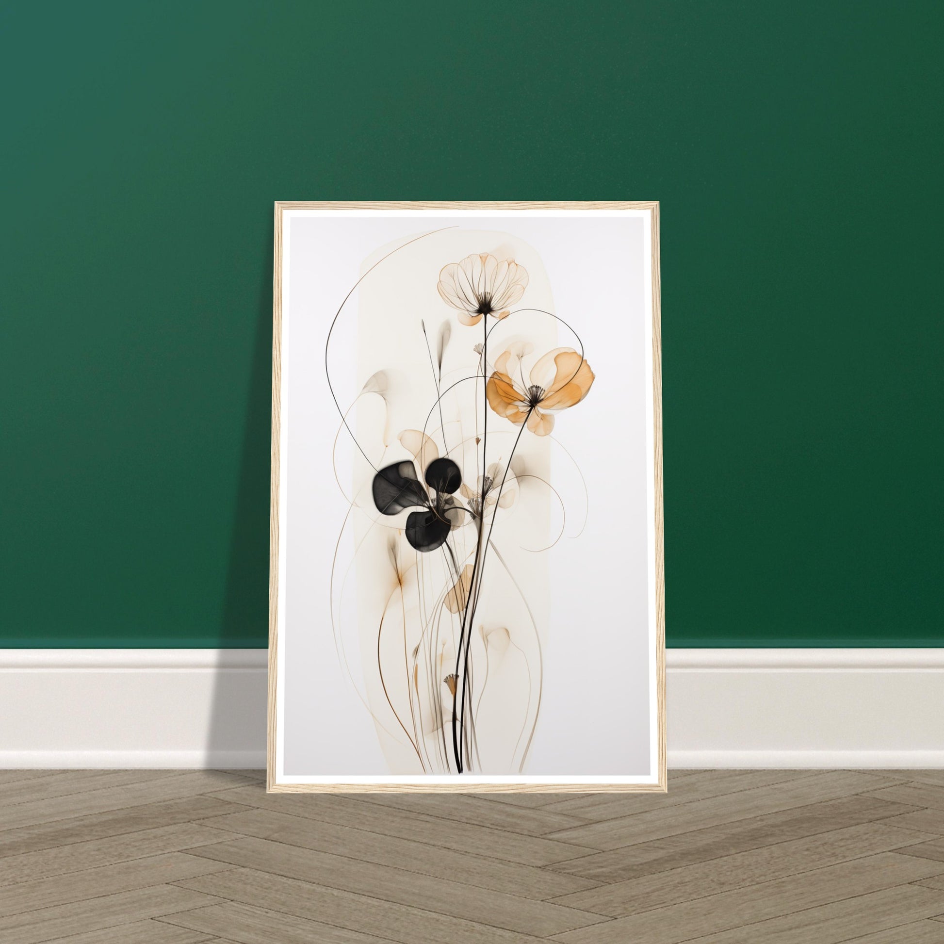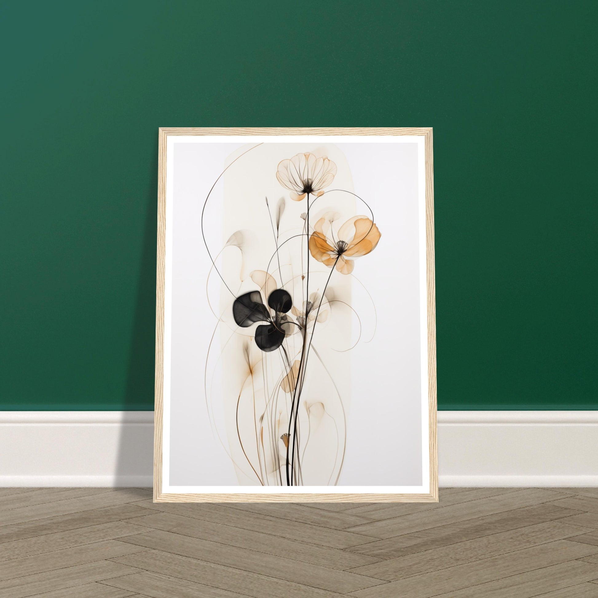 The muted brown and beige palette creates a calming effect, allowing the intricate details of the wire-like structure and watercolour petals to stand out. "Subtle Petal Whimsy" is a perfect embodiment of delicate floral artistry within the realm of minimalist expression. Elevate your space with the understated beauty of "Subtle Petal Whimsy," where each element is thoughtfully curated to evoke a sense of tranquillity and artistic simplicity. This minimalist abstract artwork invites you to appreciate the grace found in the quiet details of nature.
