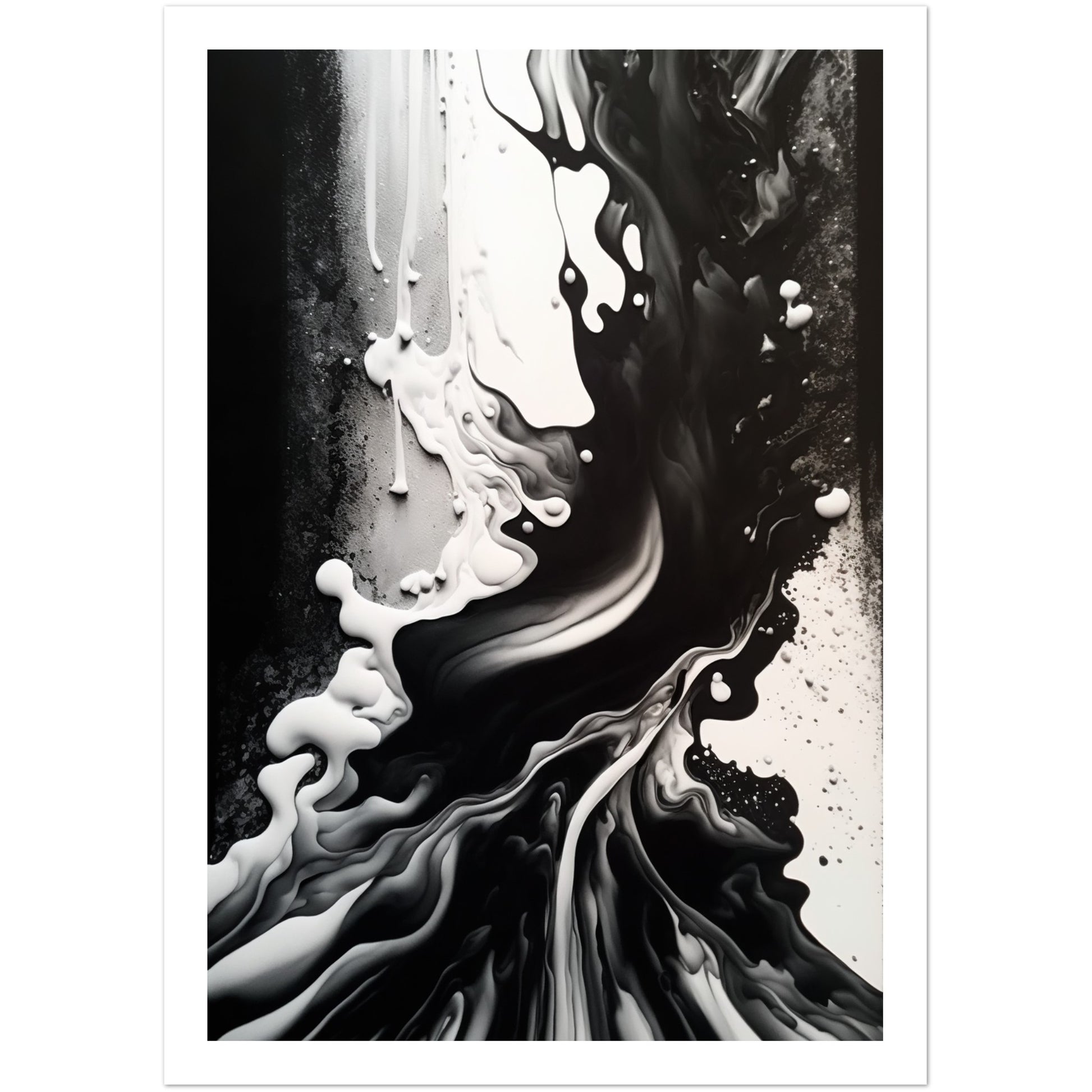 Organic Depths: Black & White Melt Painting Wall Art Print