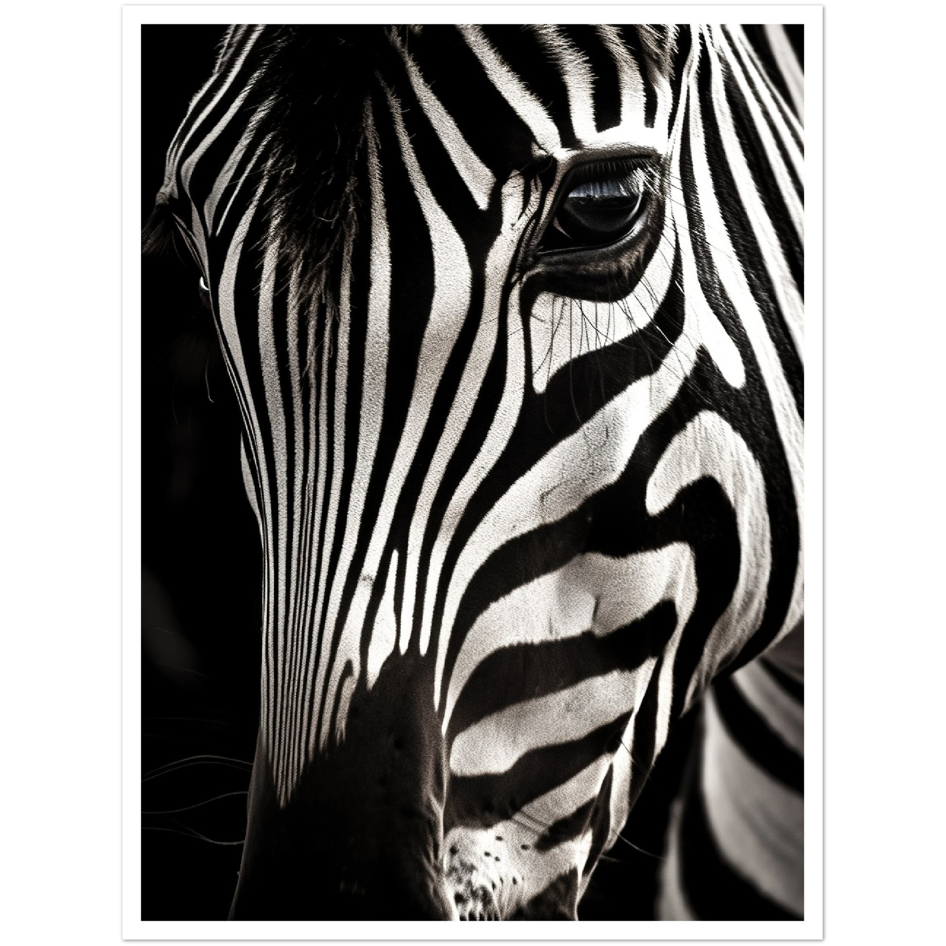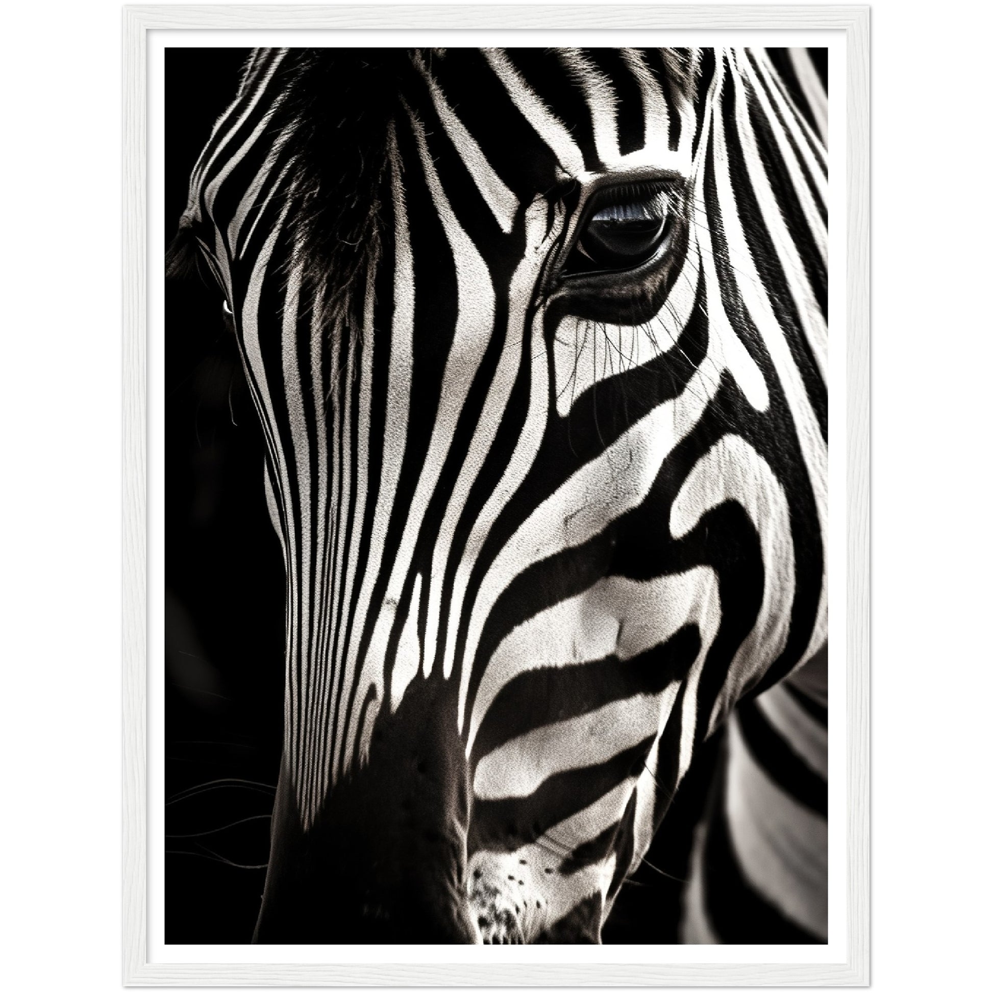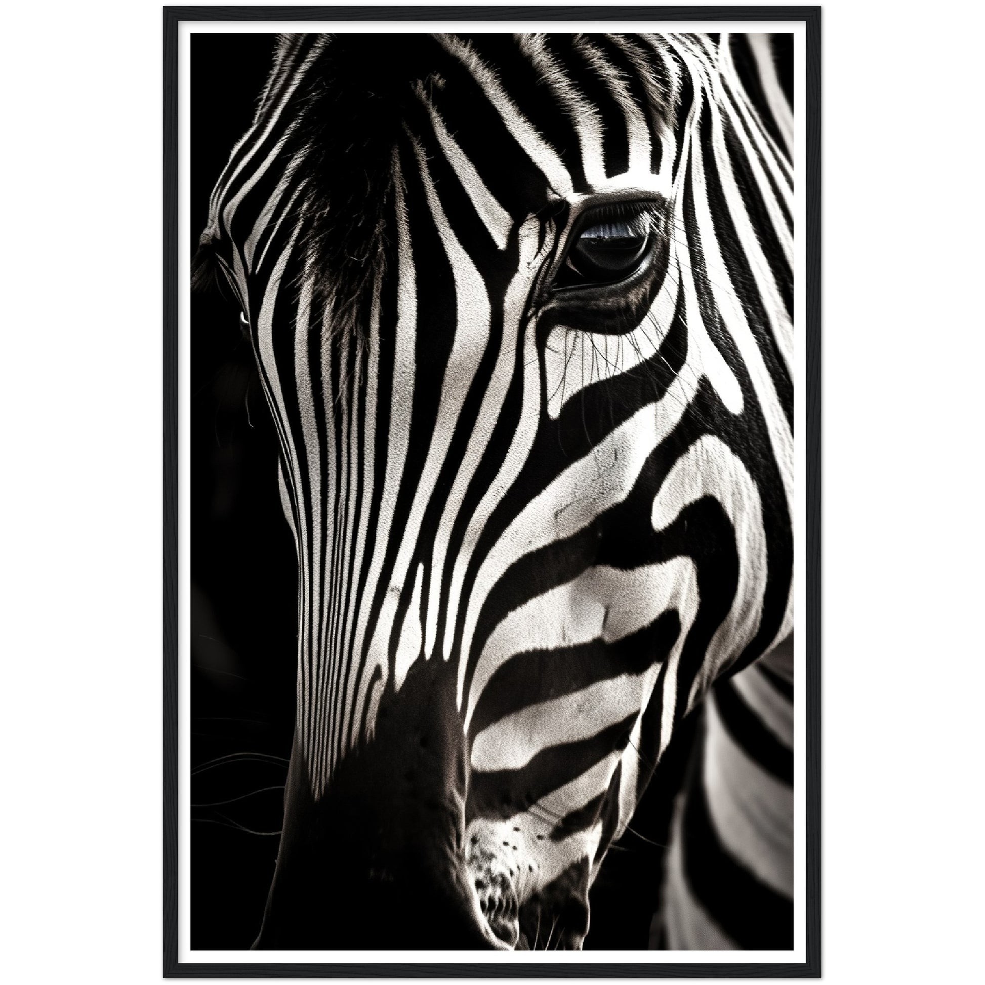This stunning black and white photograph captures the essence of the majestic zebra. The close-up crop of the zebra's face showcases its unique stripes and intricate facial features. The contrast between the black and white tones creates a striking image that will add a touch of sophistication to any room. This piece of art is perfect for animal lovers, nature enthusiasts, or anyone who appreciates the beauty of black and white photography. Hang it in your living room, bedroom, or office to add a touch of elegance to your decor. This zebra photograph is a timeless piece that will never go out of style.
