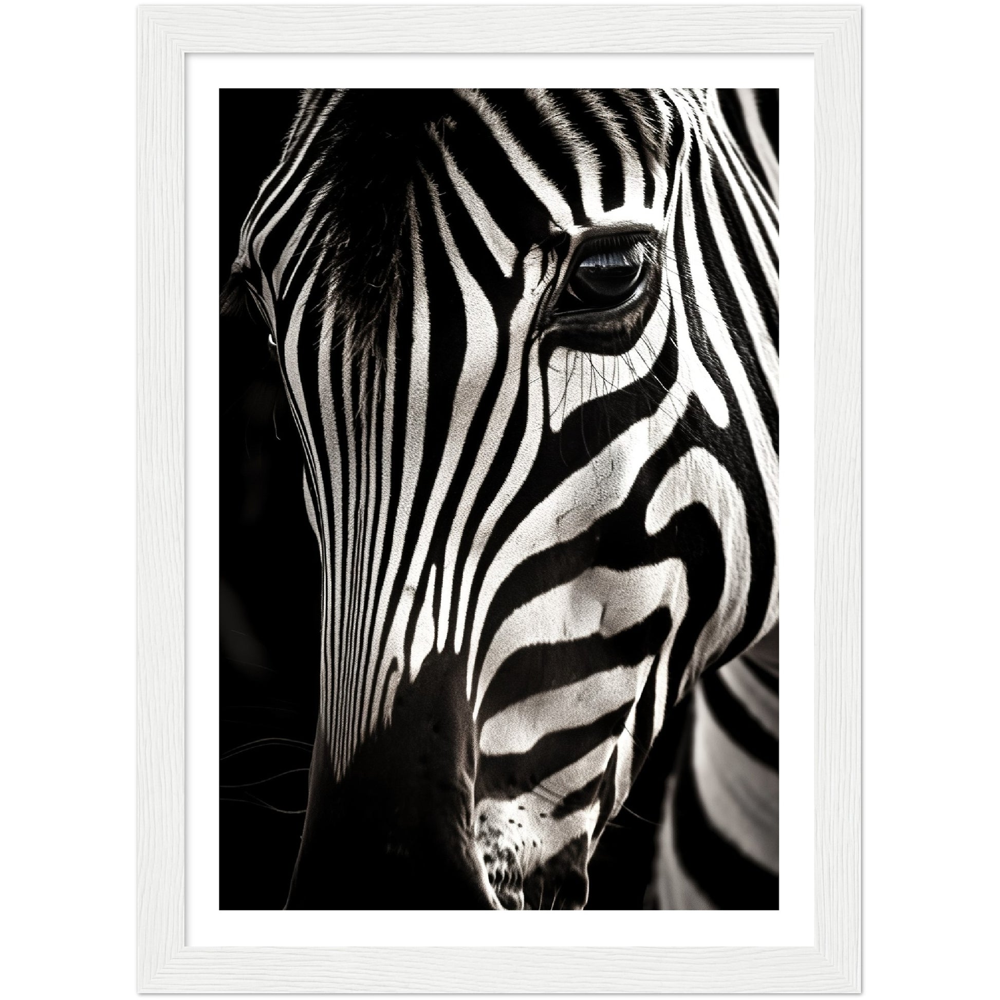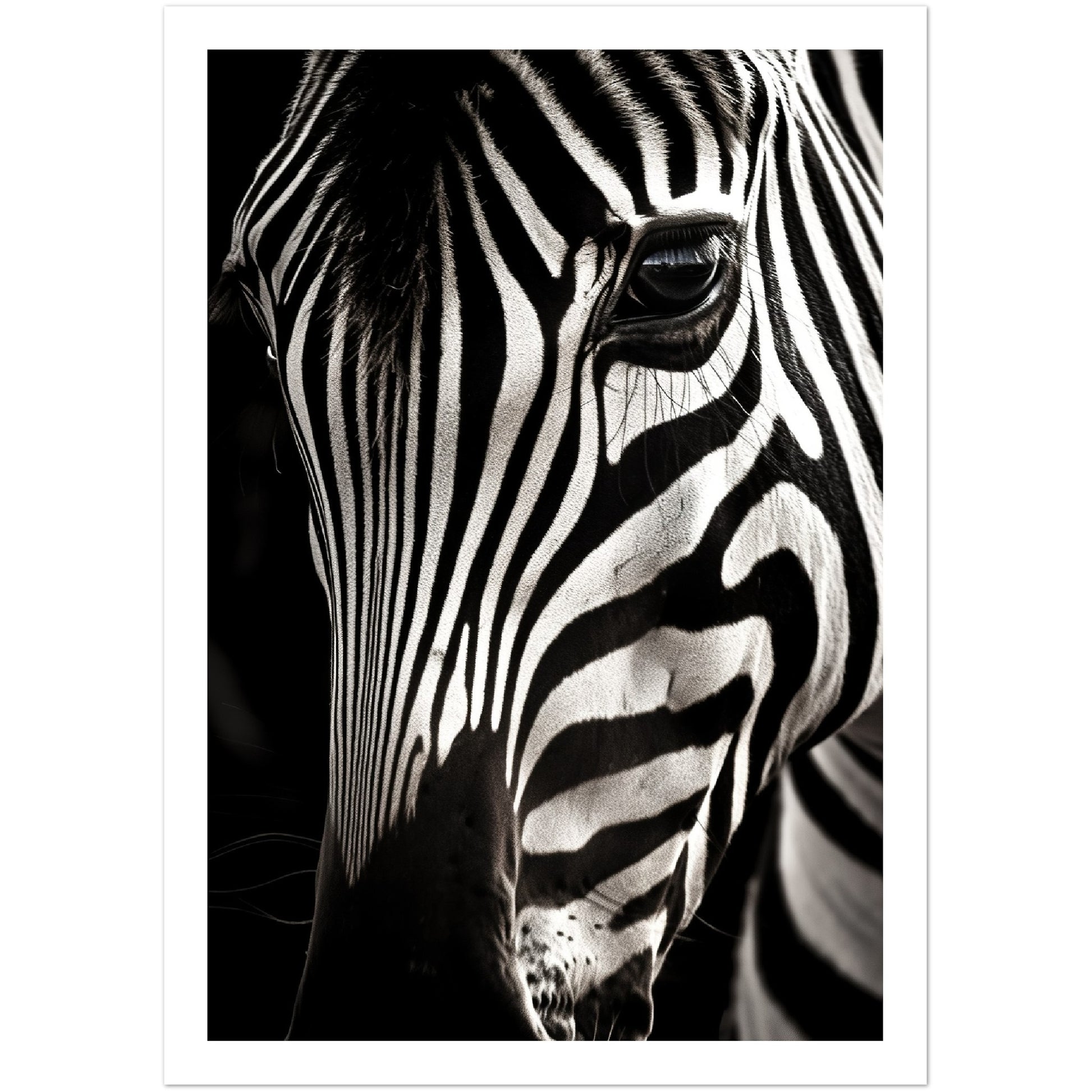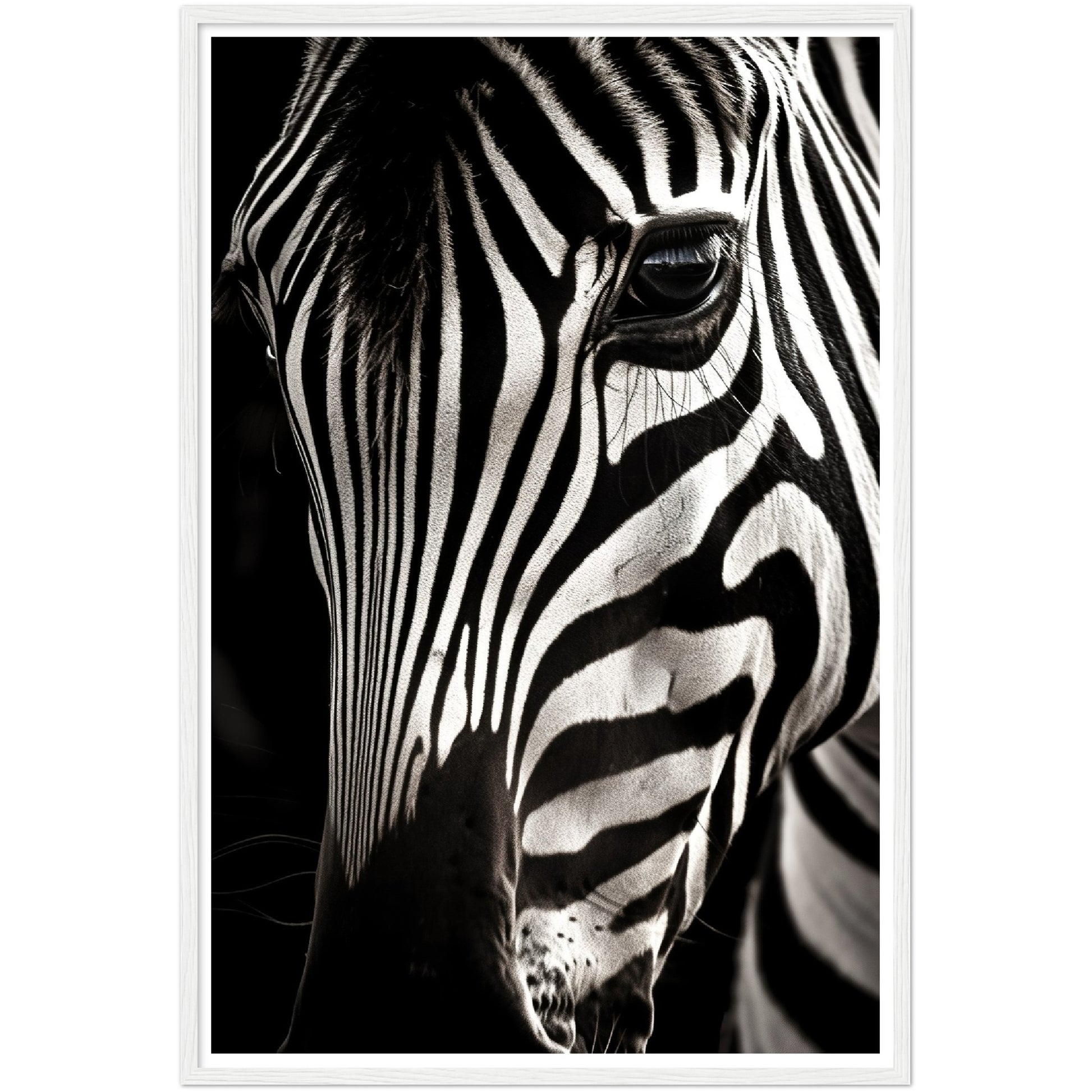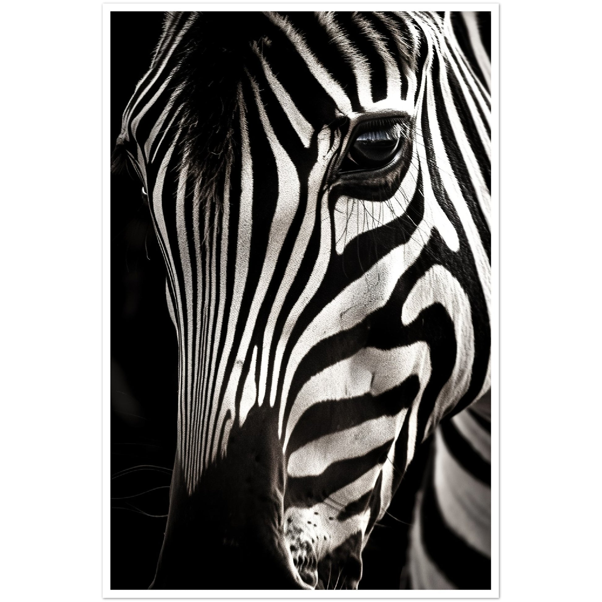 This stunning black and white photograph captures the essence of the majestic zebra. The close-up crop of the zebra's face showcases its unique stripes and intricate facial features. The contrast between the black and white tones creates a striking image that will add a touch of sophistication to any room. This piece of art is perfect for animal lovers, nature enthusiasts, or anyone who appreciates the beauty of black and white photography. Hang it in your living room, bedroom, or office to add a touch of elegance to your decor. This zebra photograph is a timeless piece that will never go out of style.