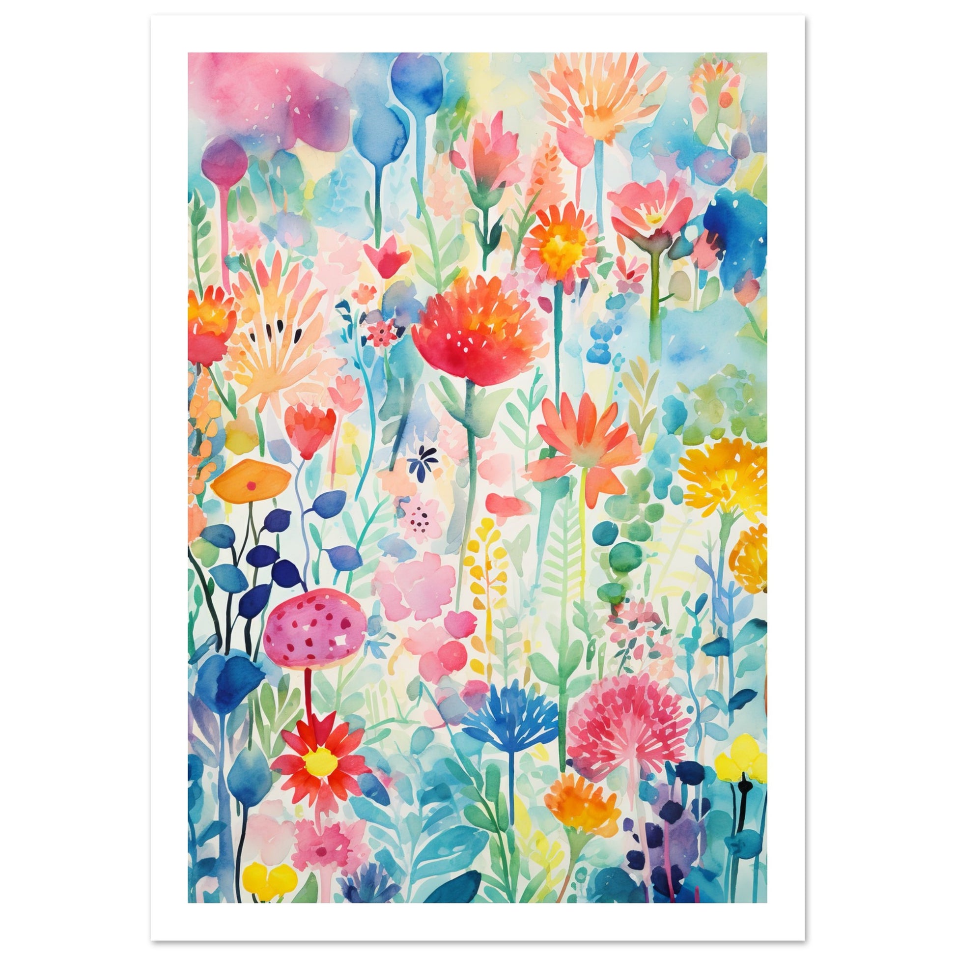 The dreamy feel is accentuated by the use of translucent watercolours, creating a sense of lightness and enchantment. This artwork adds a touch of joy and dreaminess to any space, inviting you to immerse yourself in the beauty of nature's vibrant palette.
