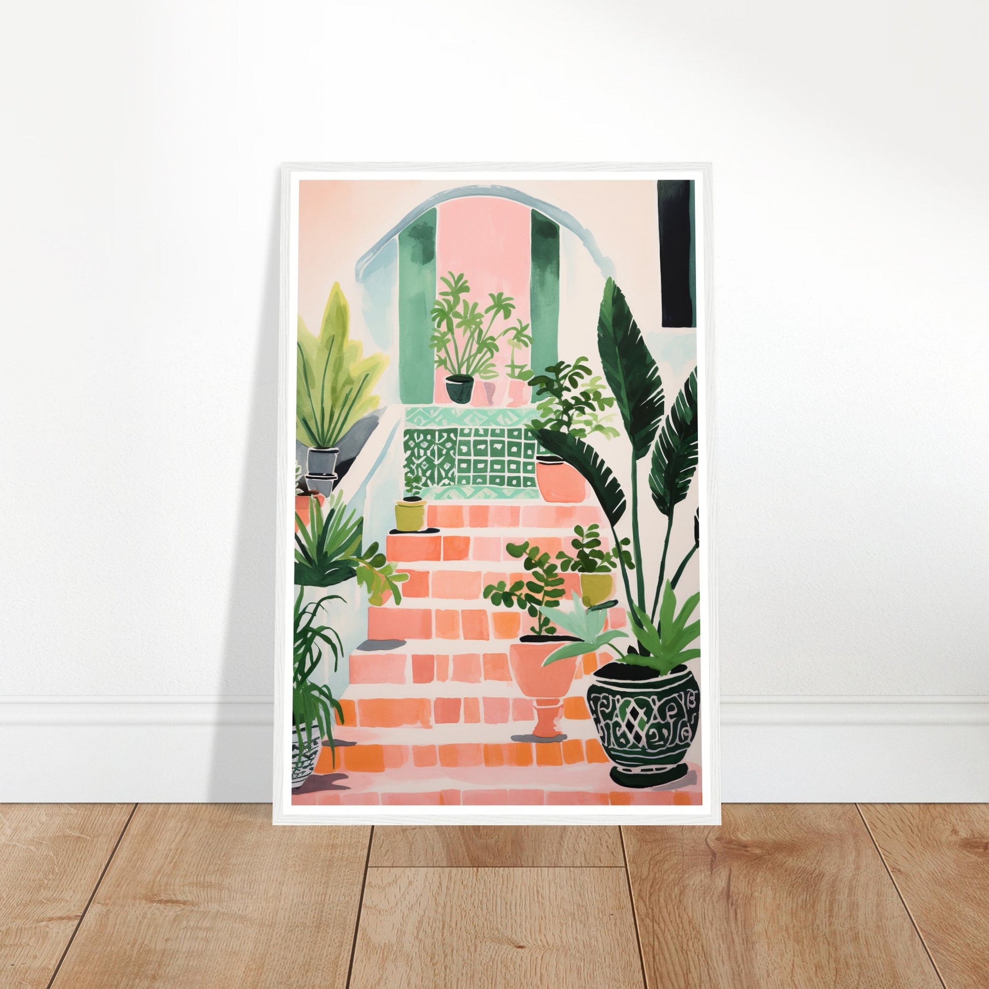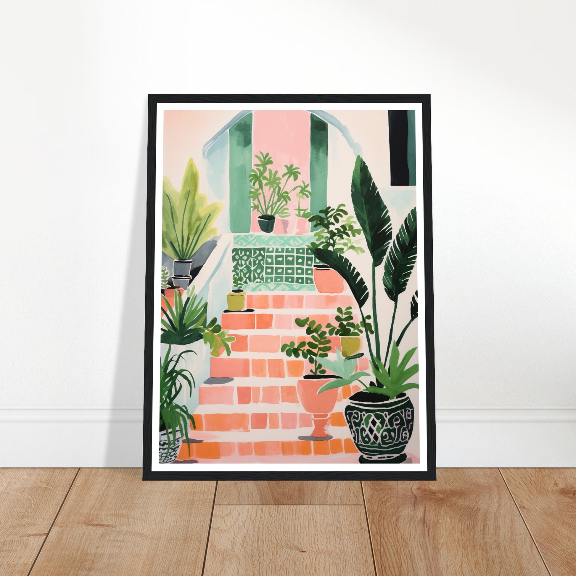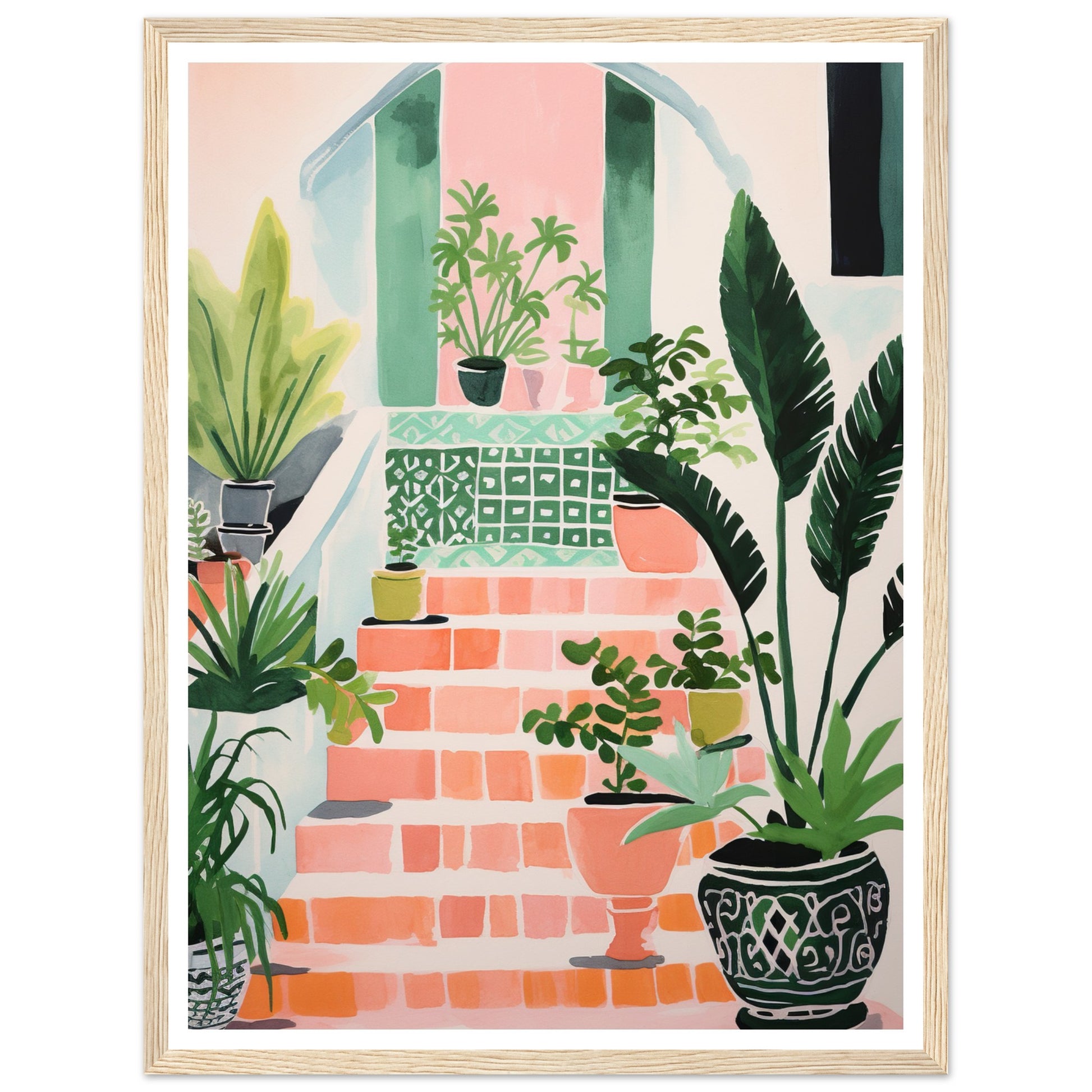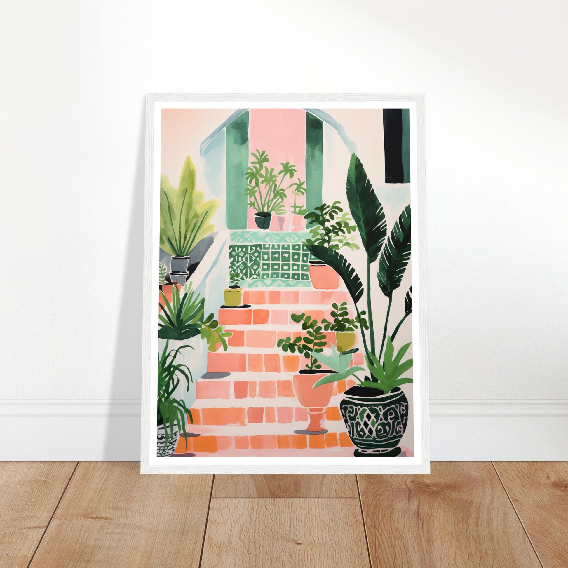 Mediterranean Stairs and Vibrant Potted Plants Wall Art Print