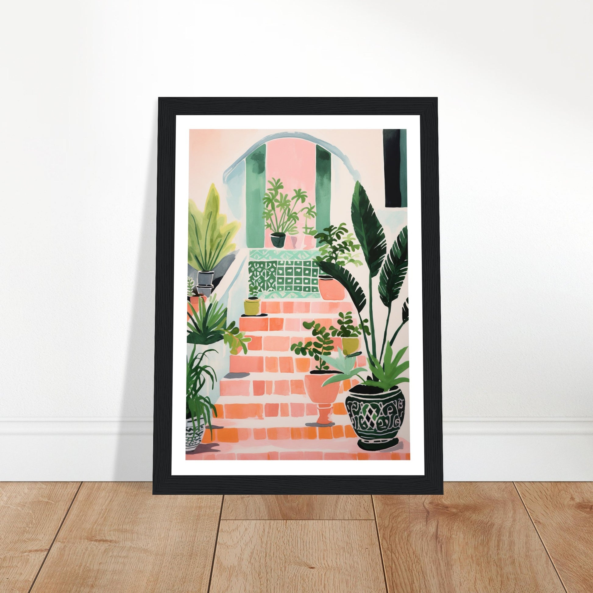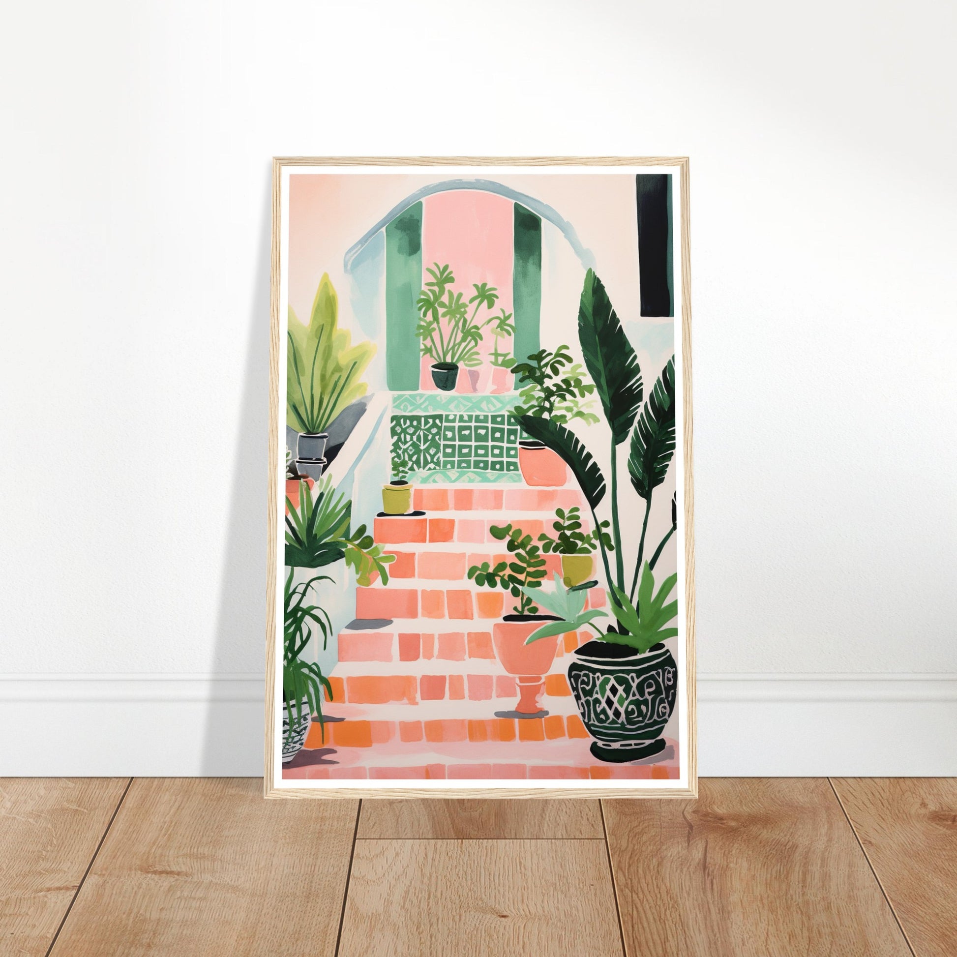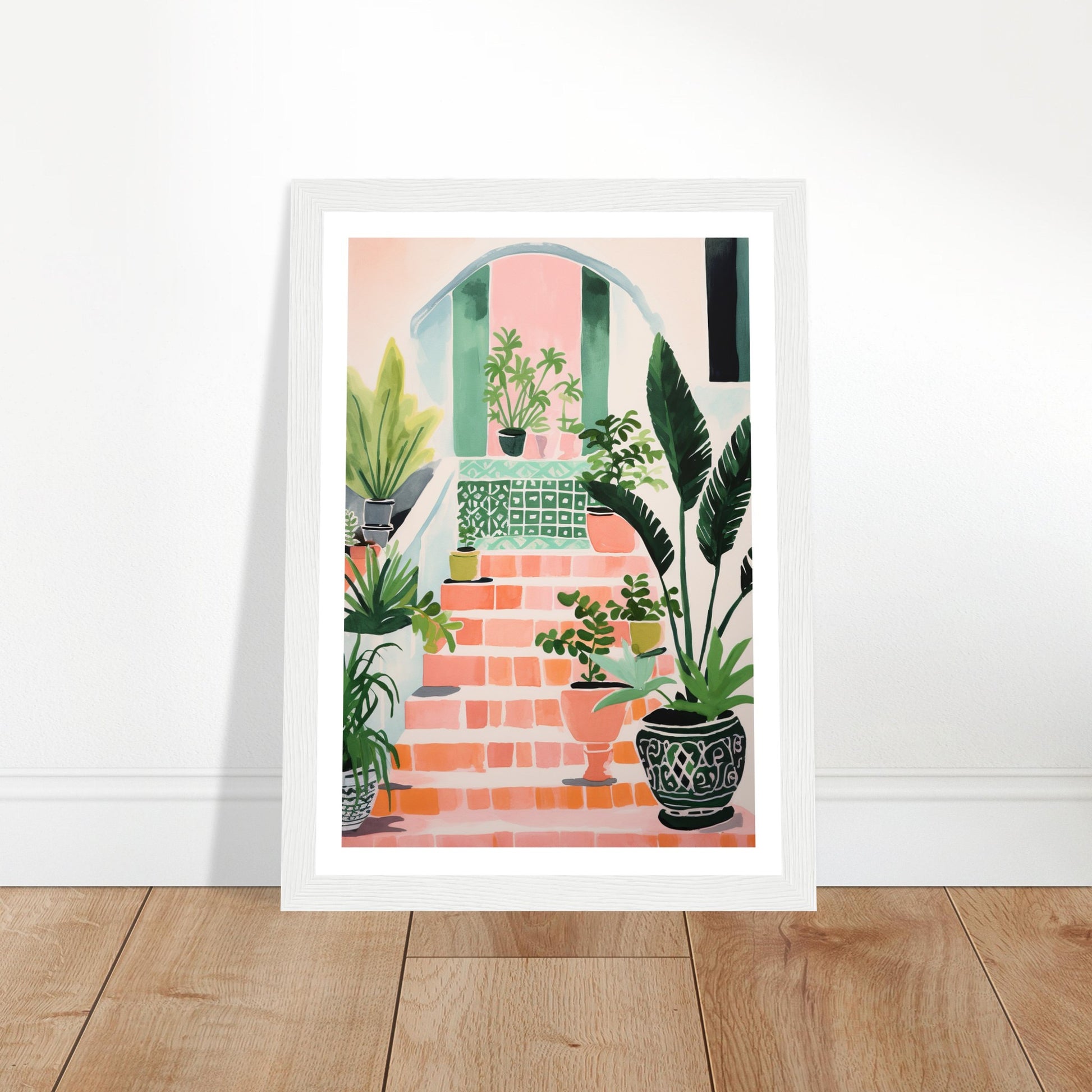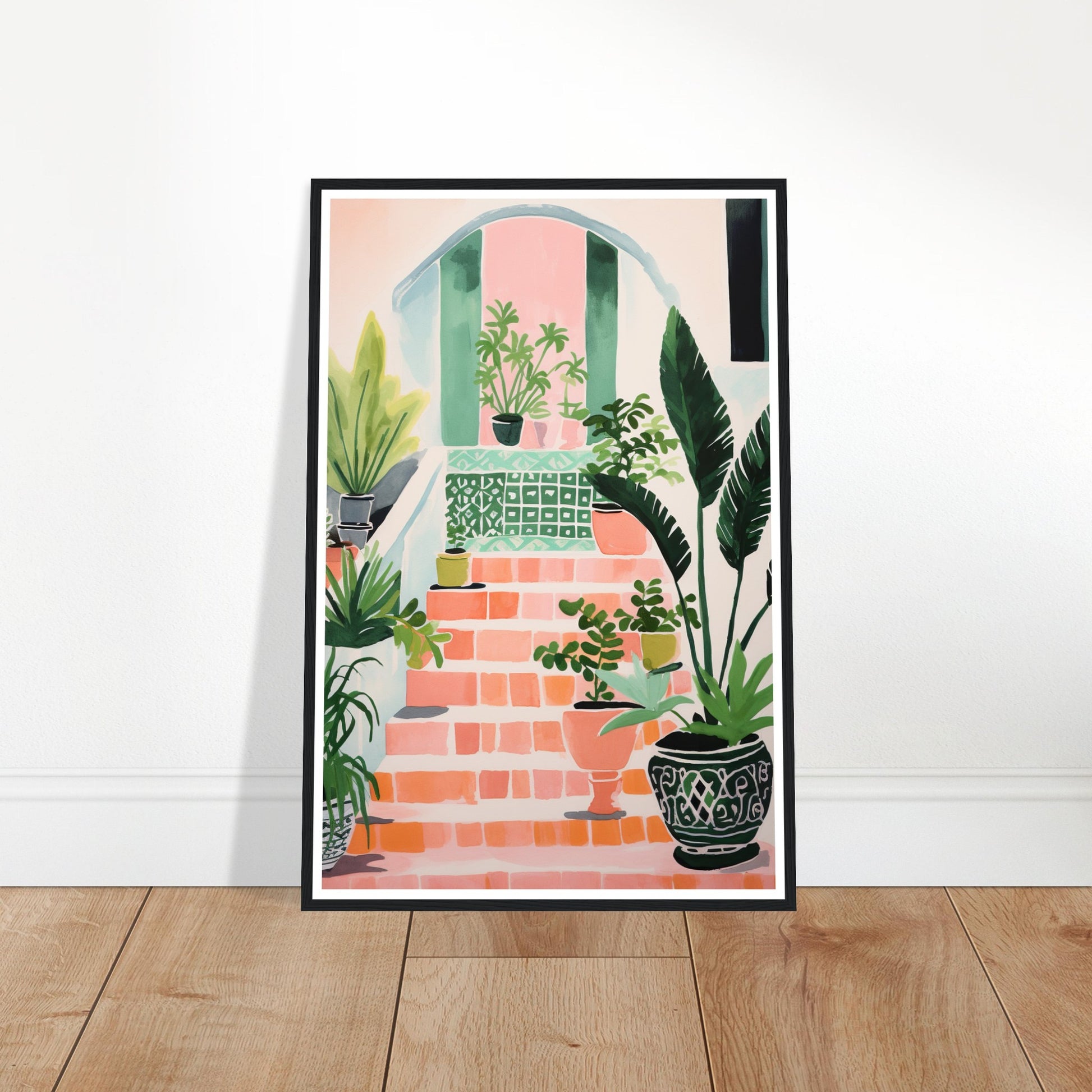 Mediterranean Stairs and Vibrant Potted Plants Wall Art Print