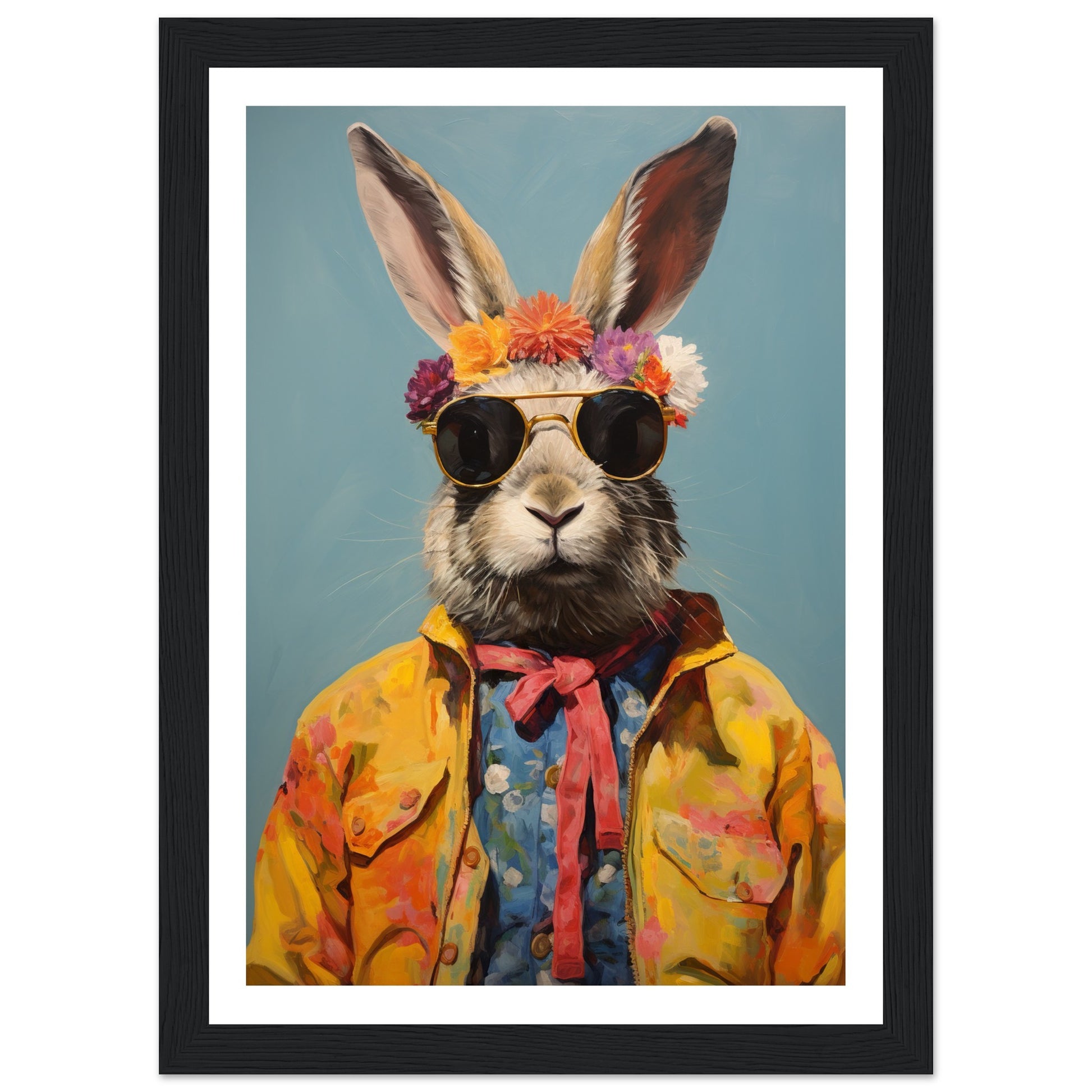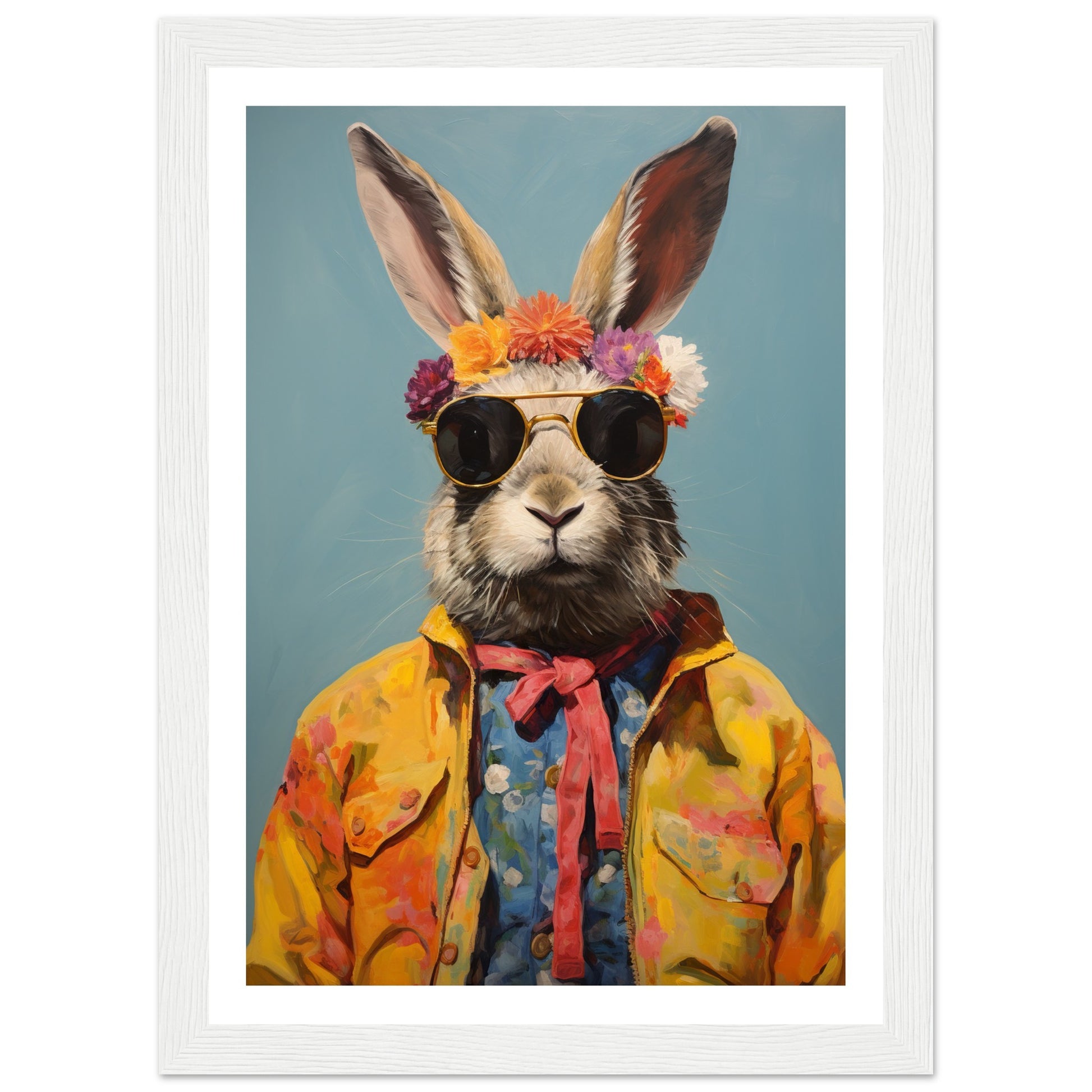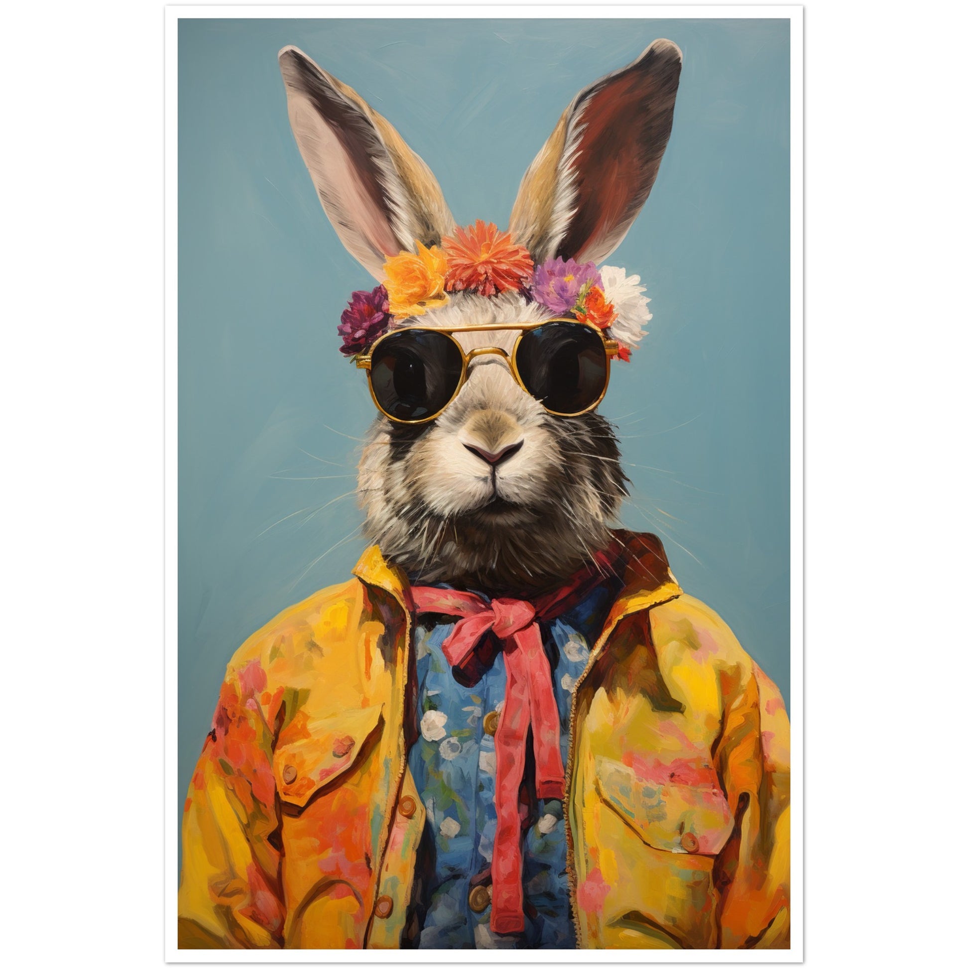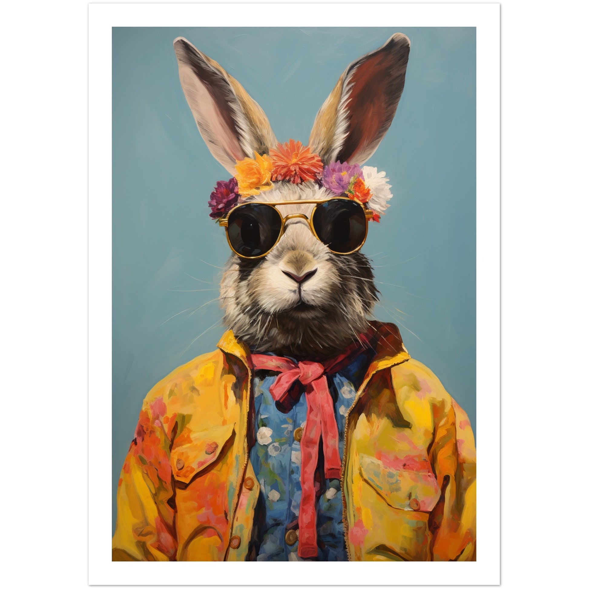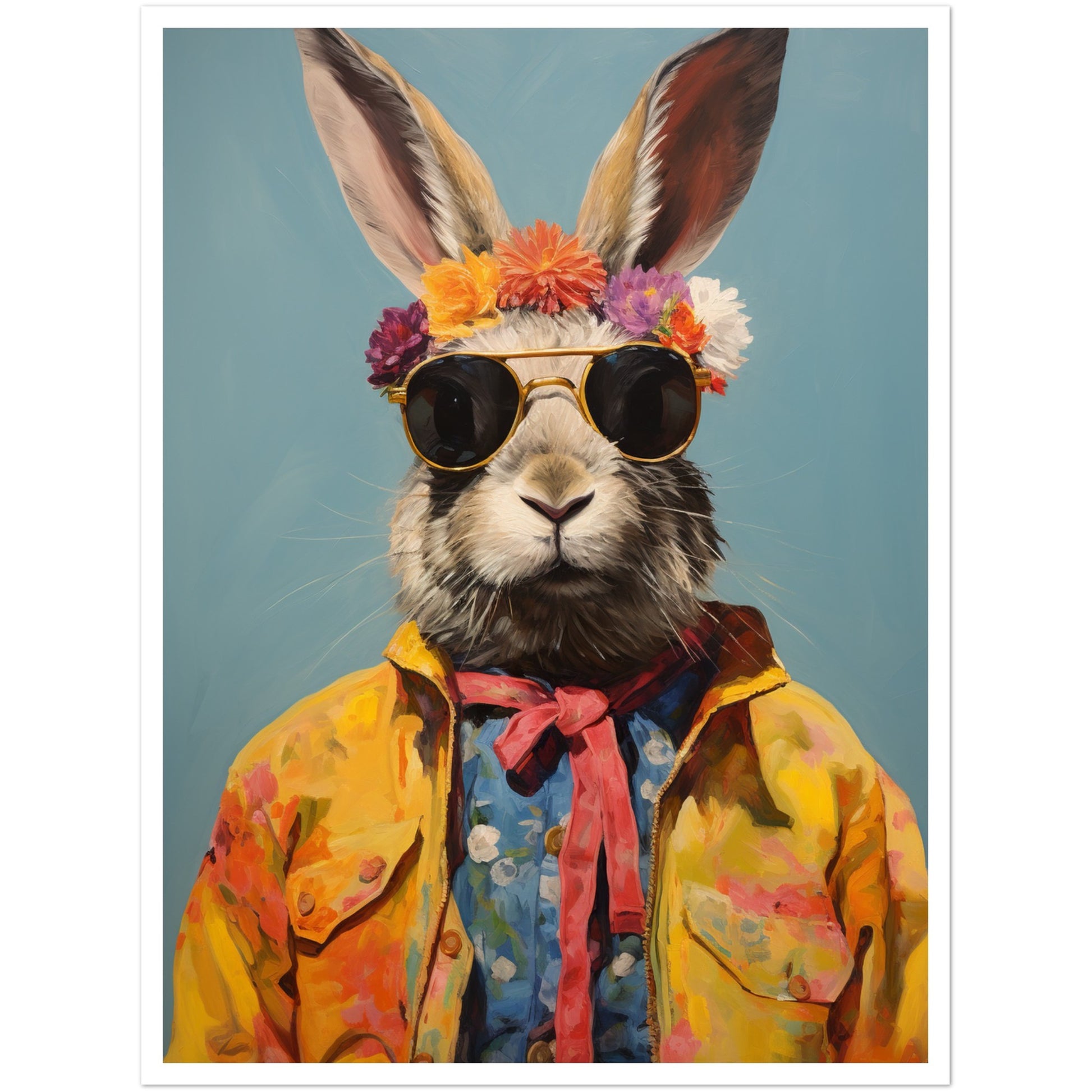 The Hippy Rabbit art print isn't just a conversation starter; it's a unique gift idea for your fellow art-loving friends and a charming addition to your home, office, or creative space. With various sizes available, you can choose the perfect fit for your style and surroundings.