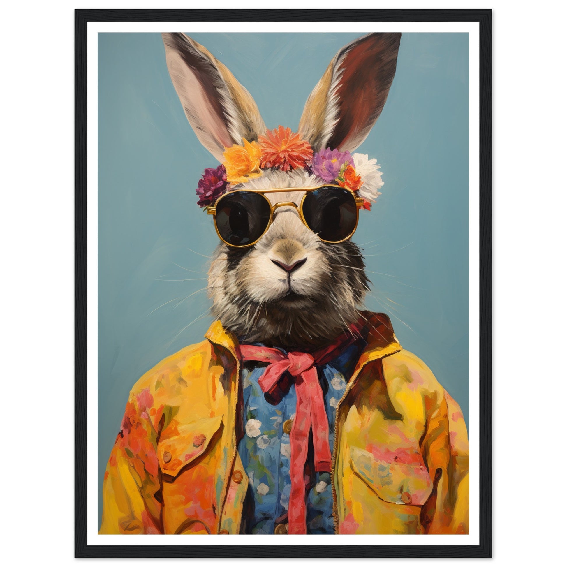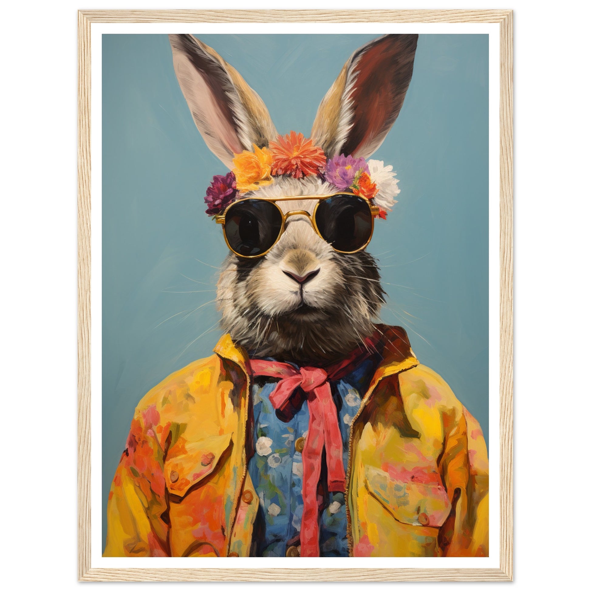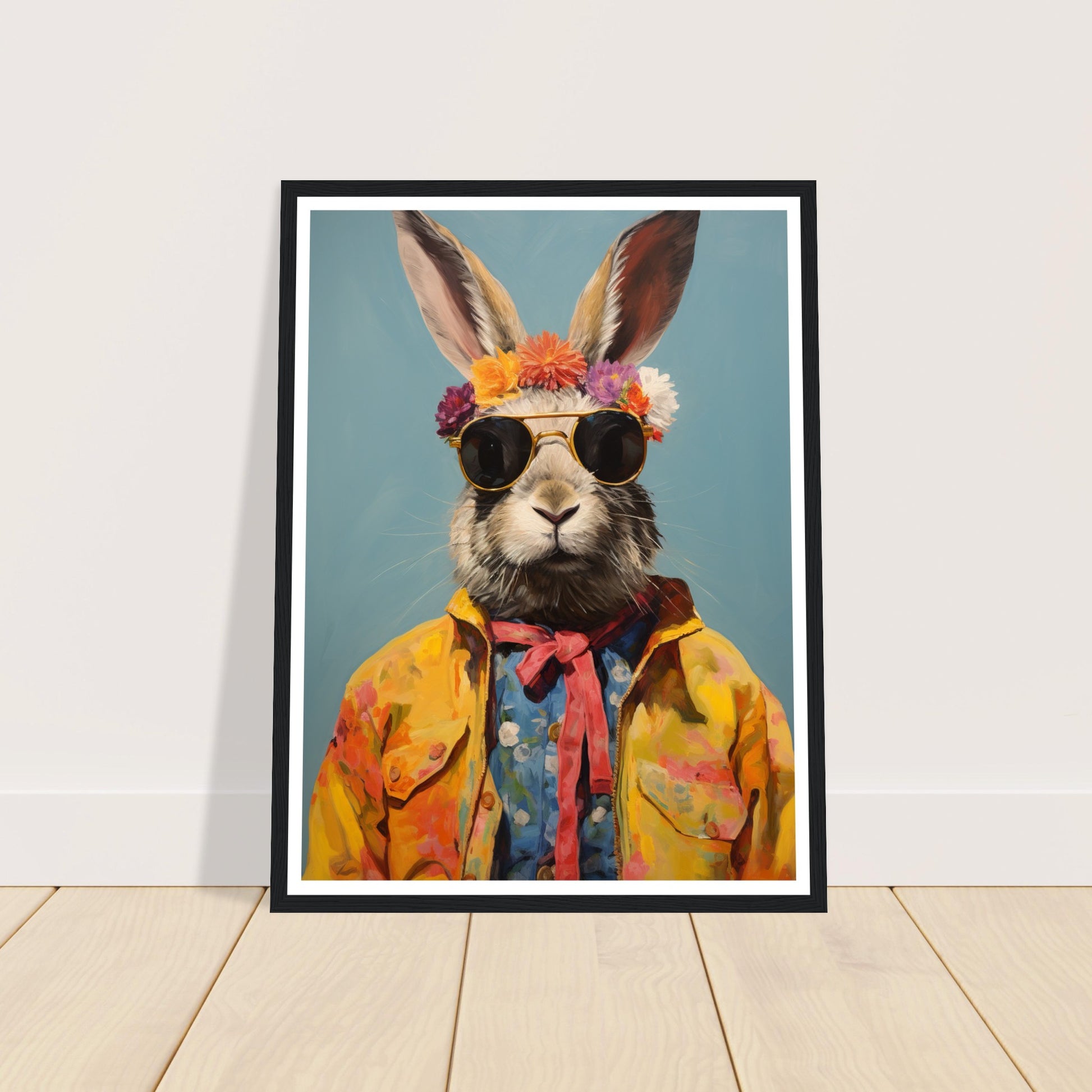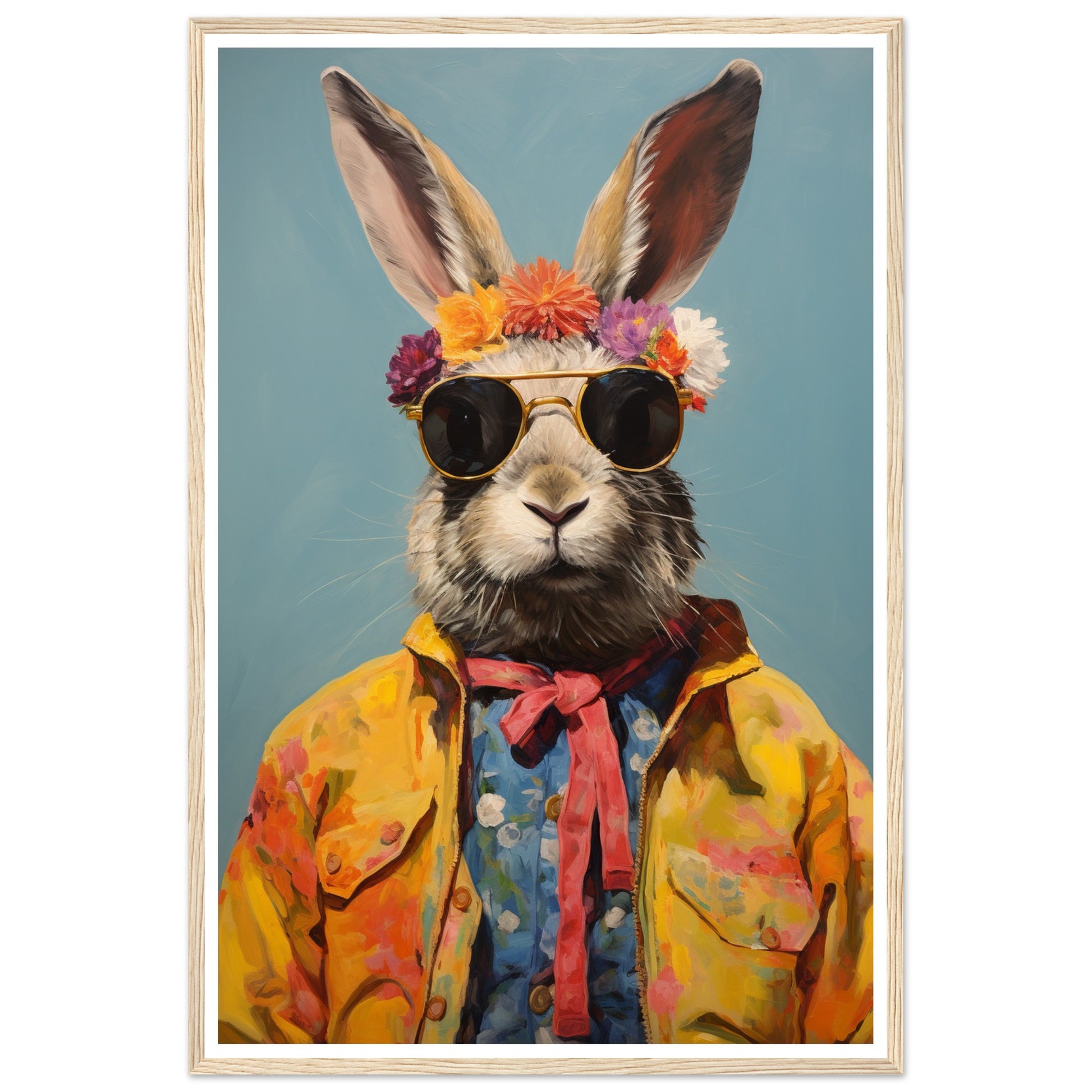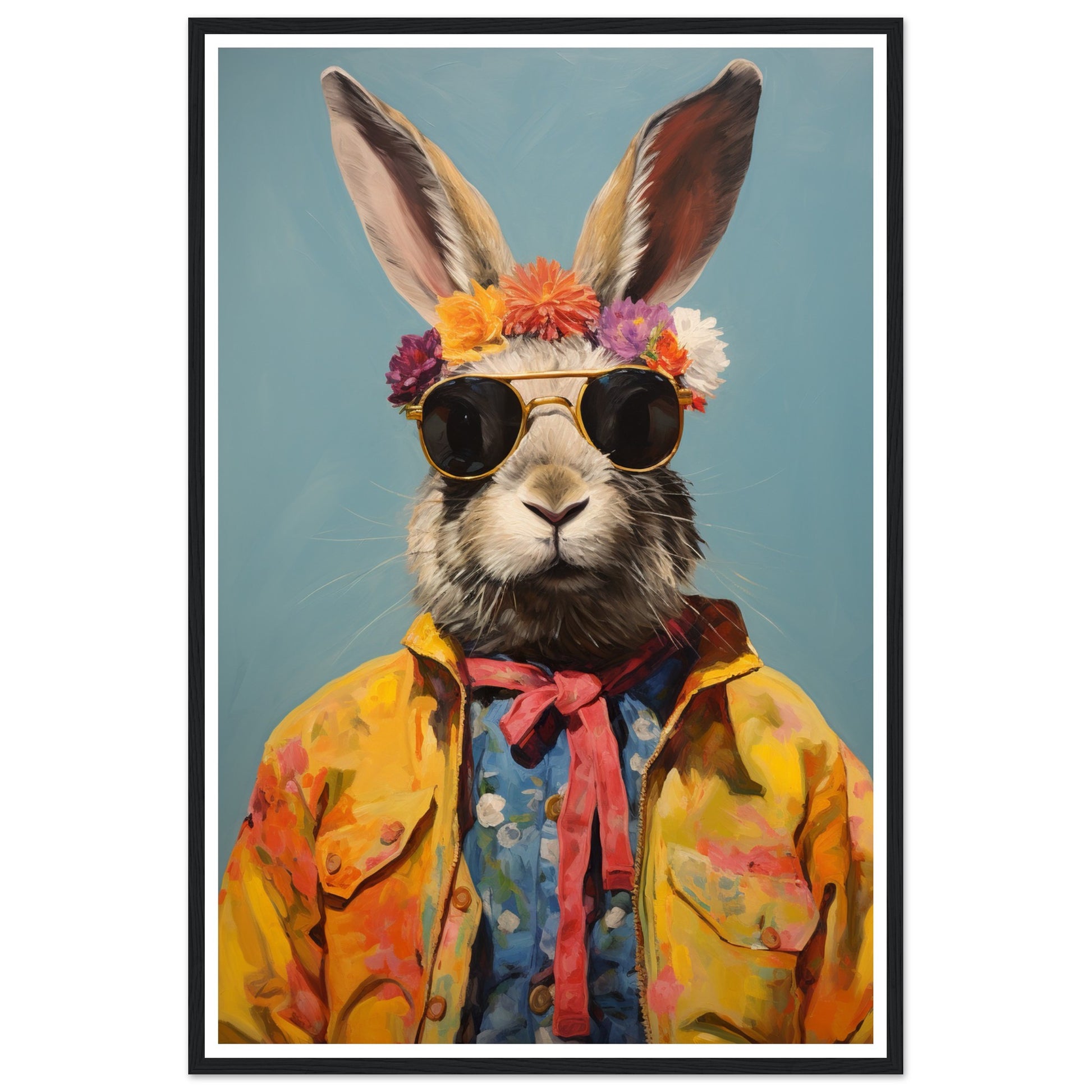 The Hippy Rabbit art print isn't just a conversation starter; it's a unique gift idea for your fellow art-loving friends and a charming addition to your home, office, or creative space. With various sizes available, you can choose the perfect fit for your style and surroundings.