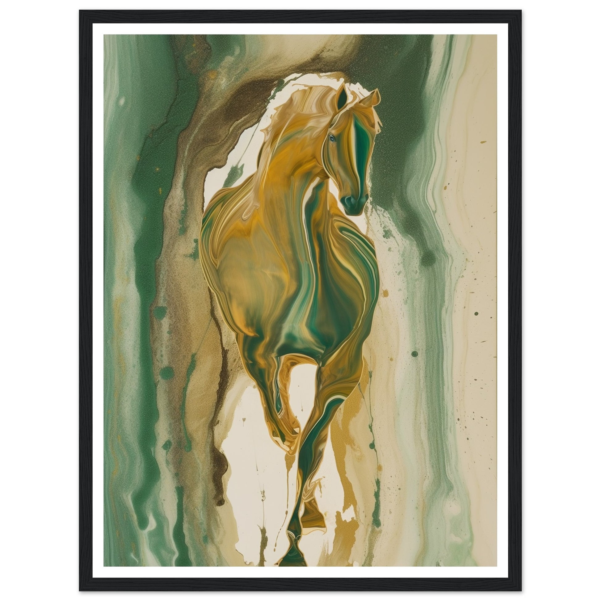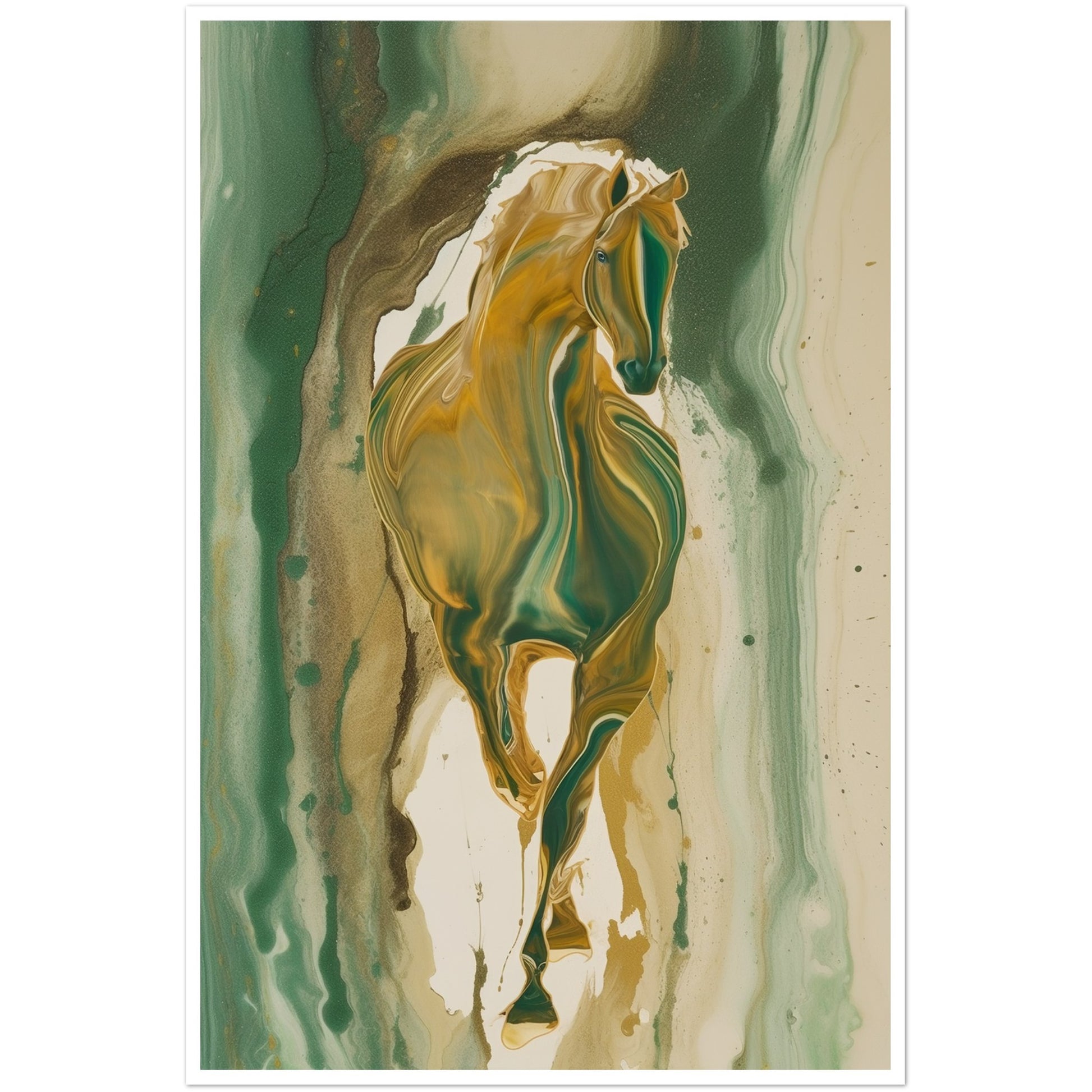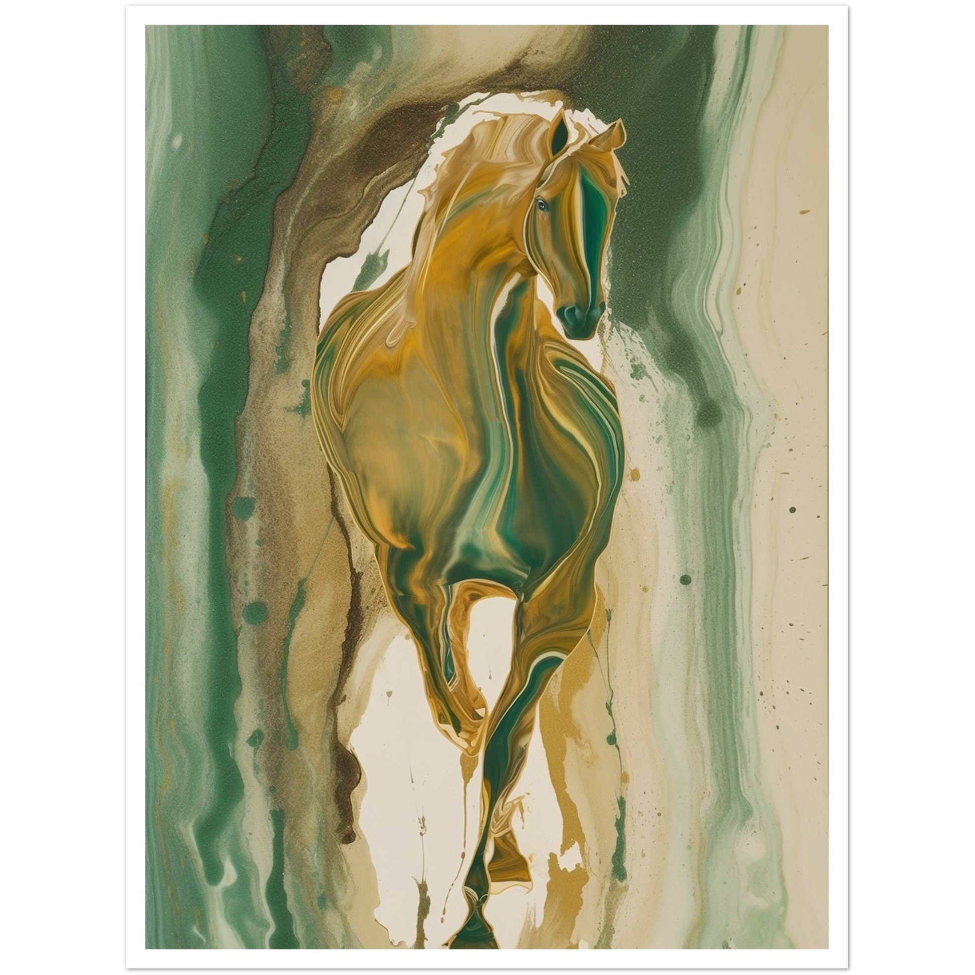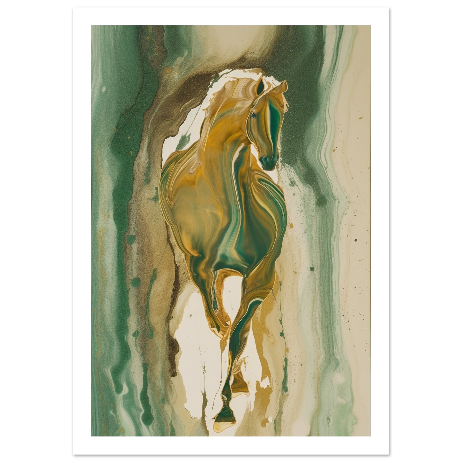 Golden Gallop - Fluid Green and Gold Horse Wall Art Print