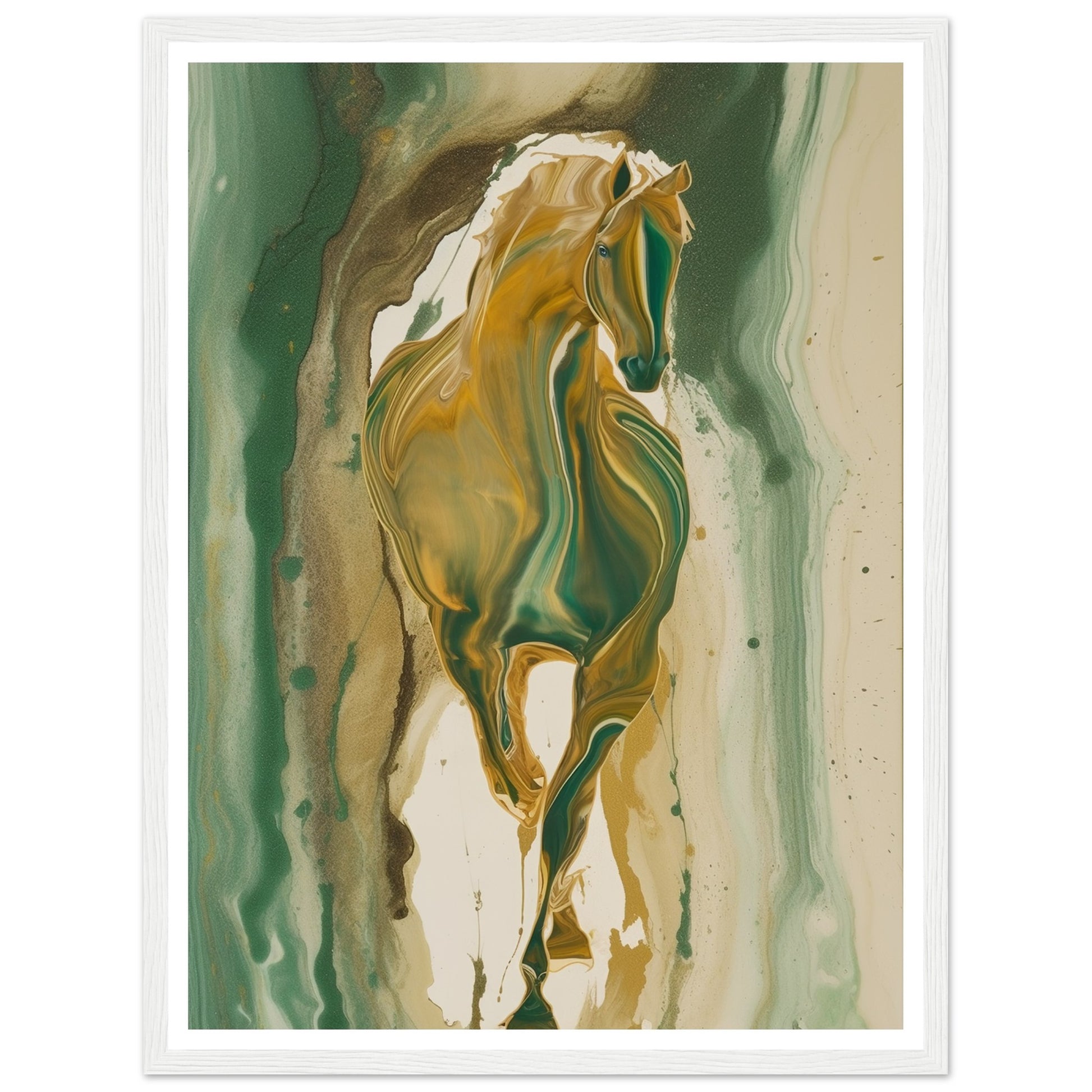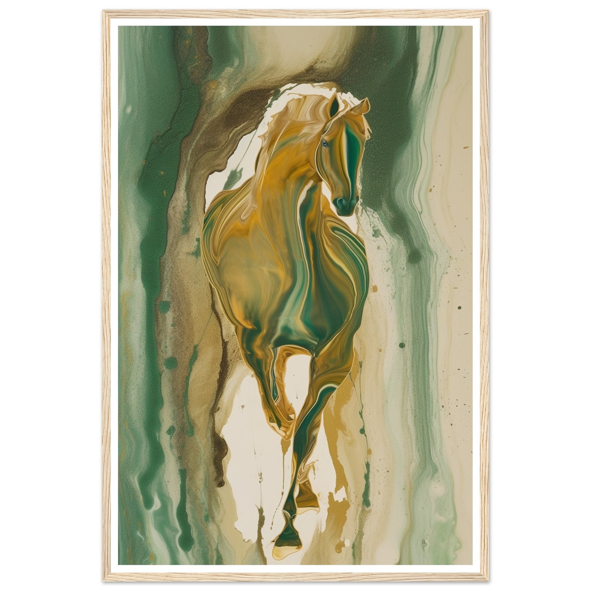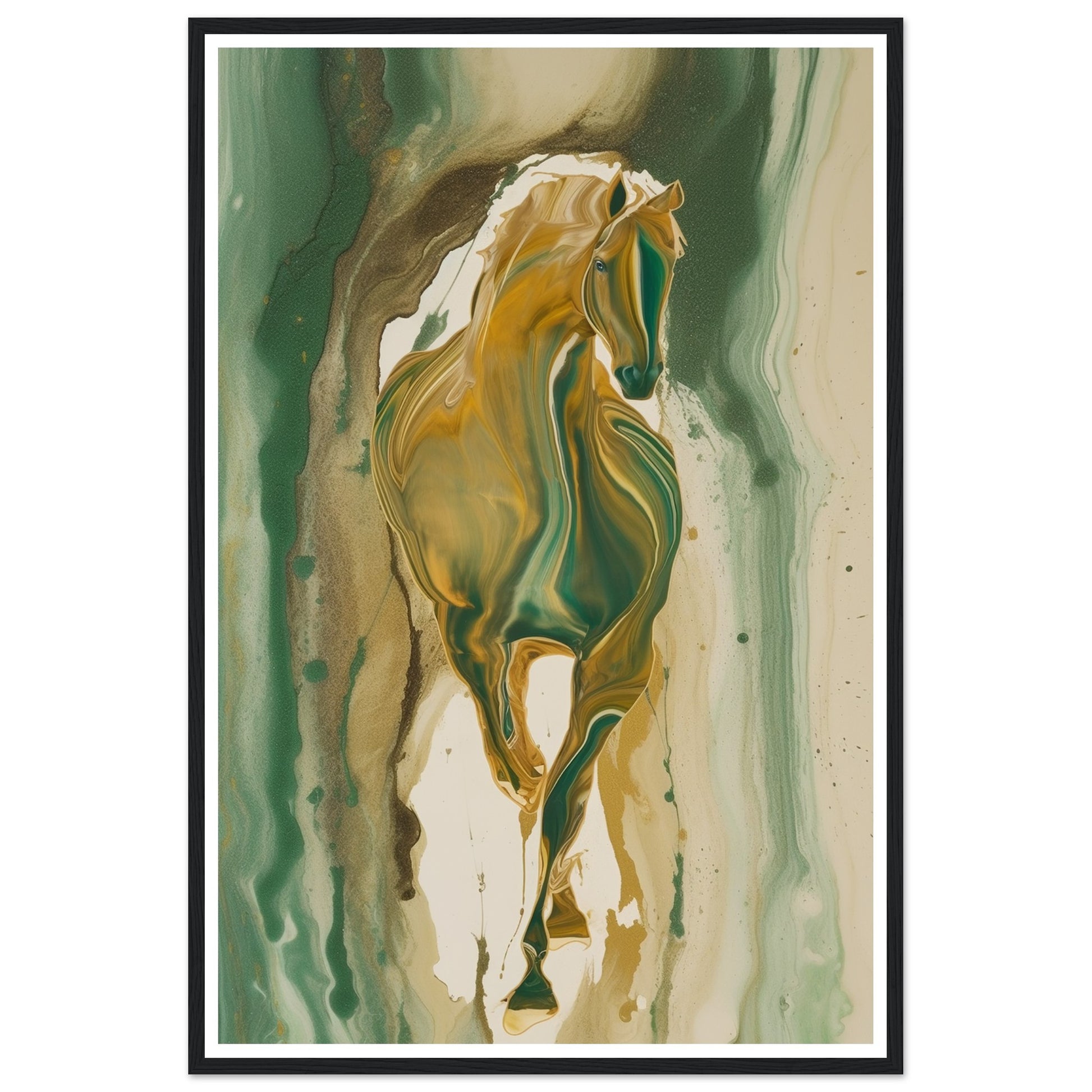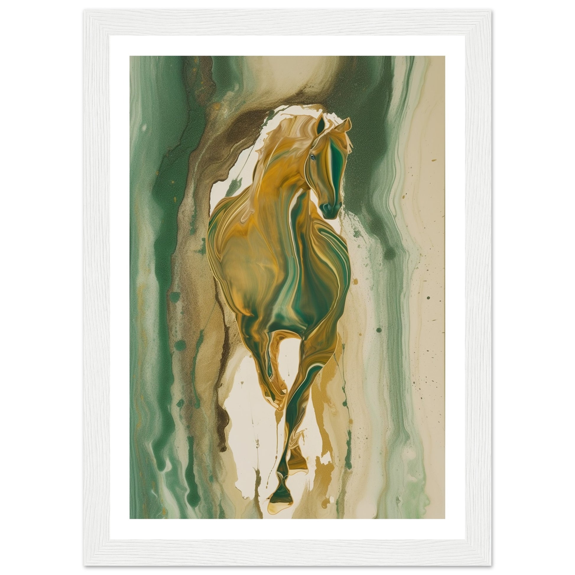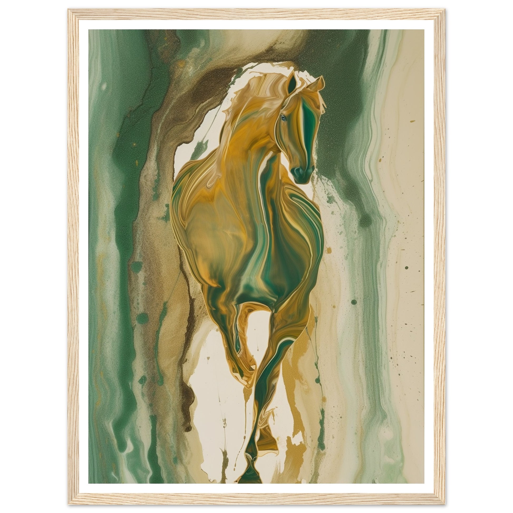 Golden Gallop - Fluid Green and Gold Horse Wall Art Print