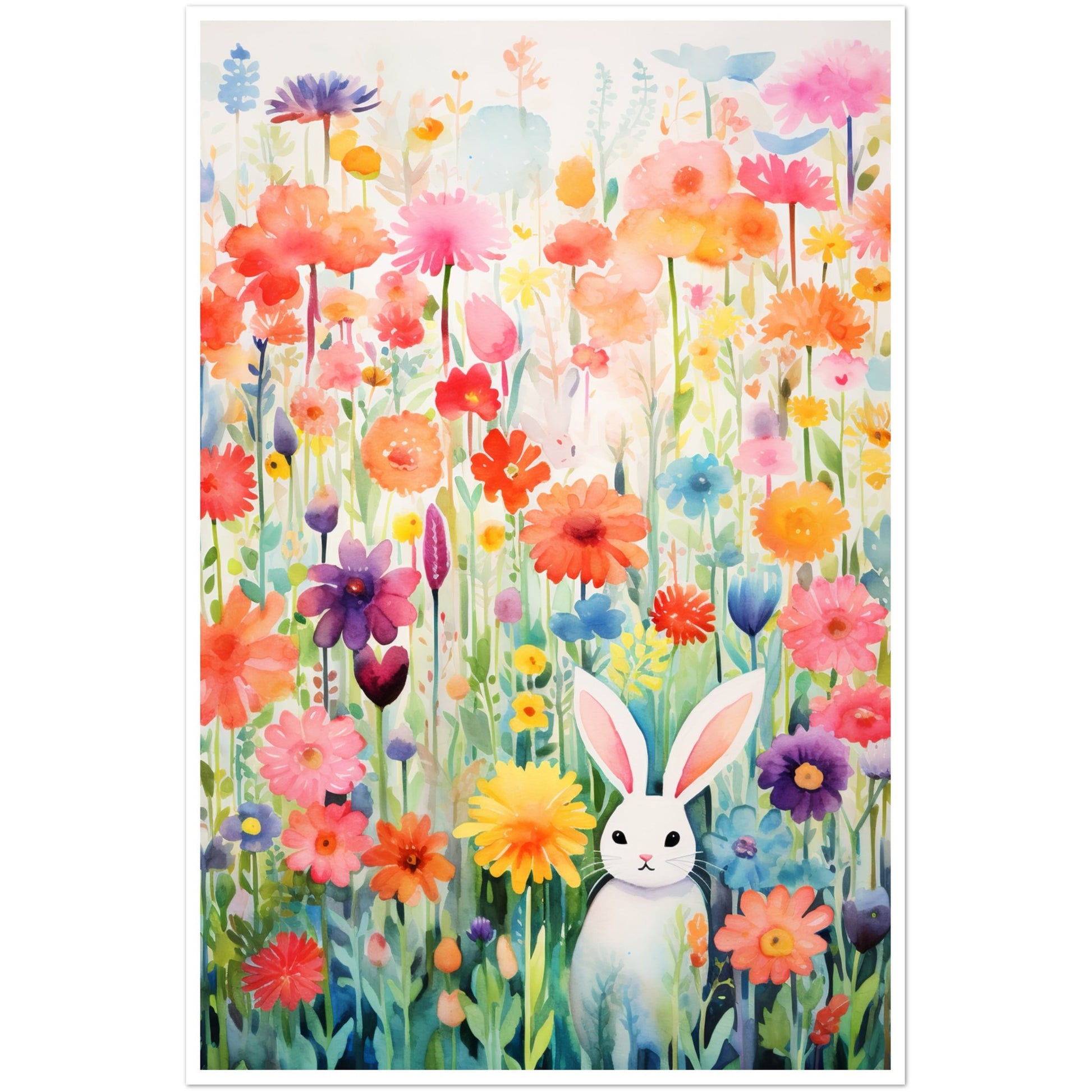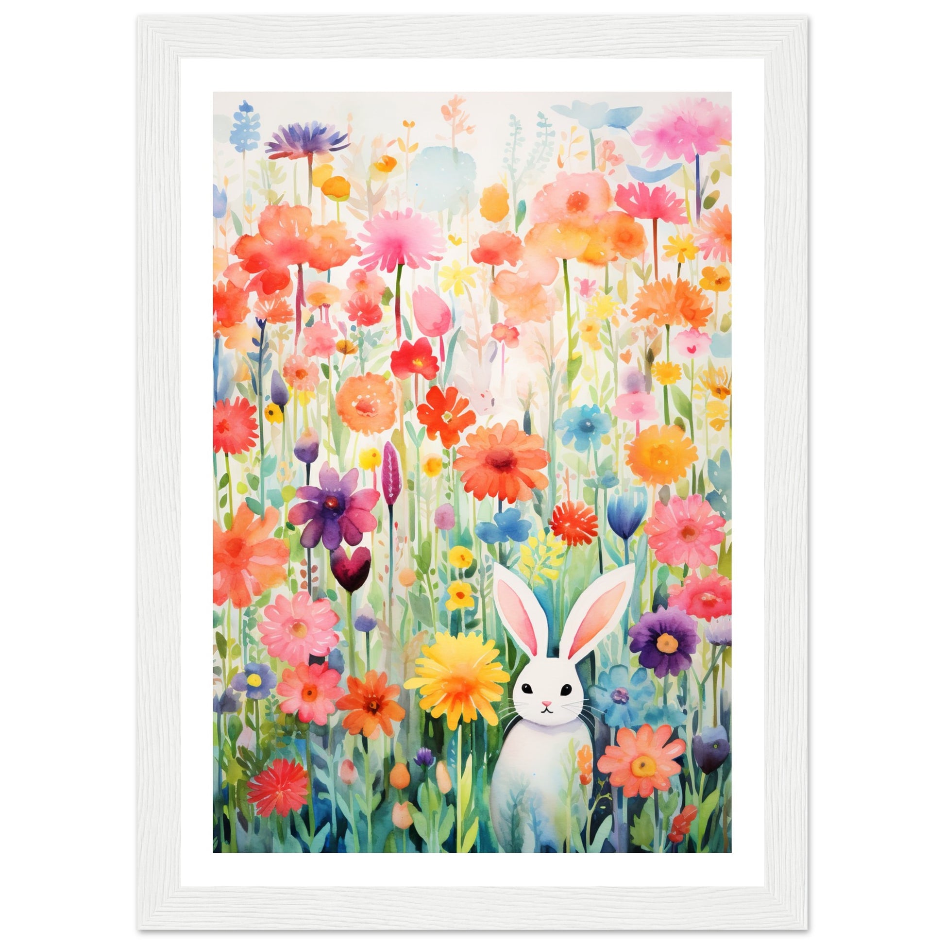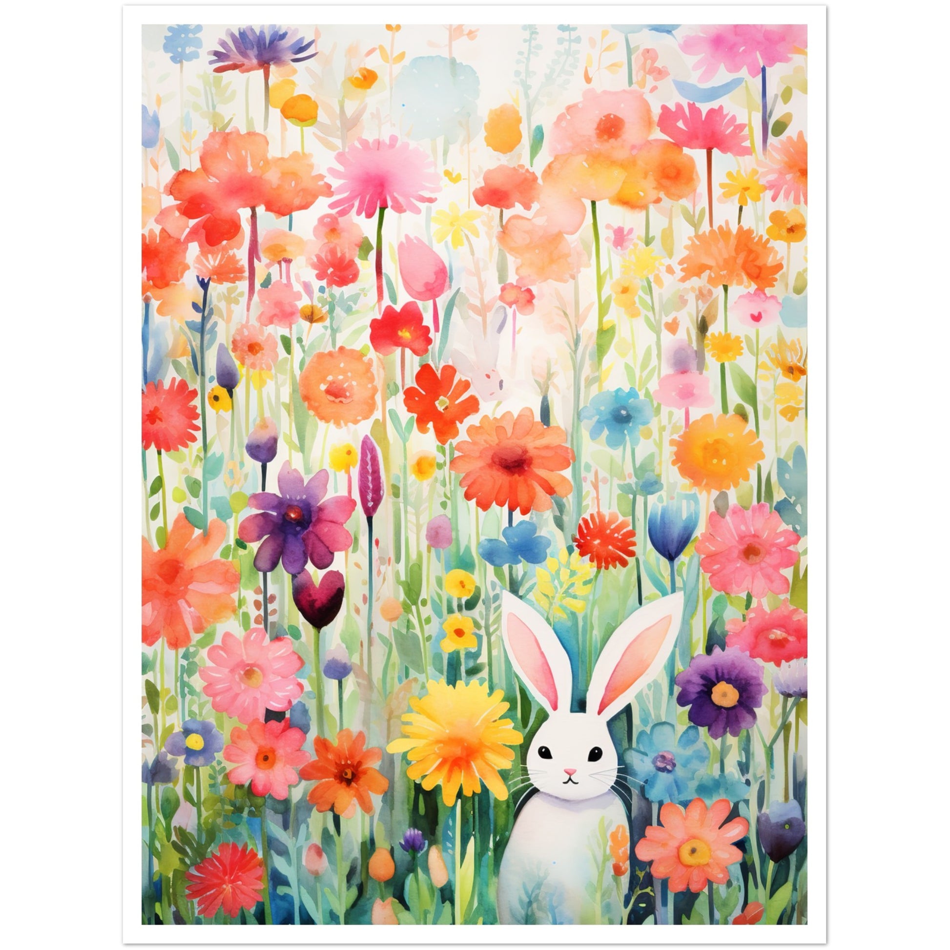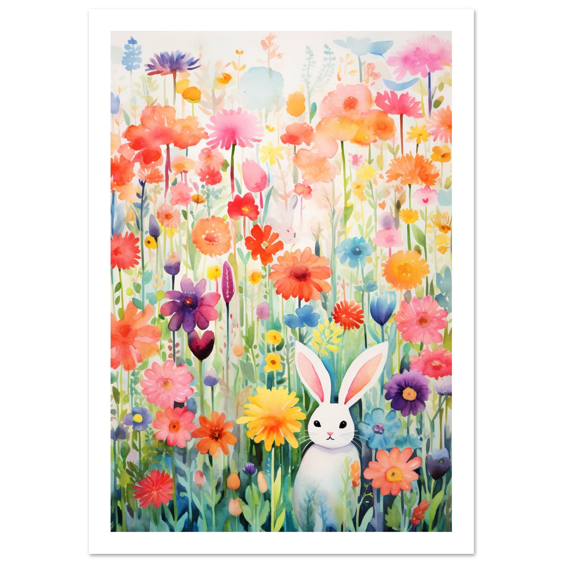 Perfect for those who appreciate the joyous chaos of vibrant flowers and the delightful surprise of a hidden rabbit, this watercolour painting adds a touch of magic to any space.