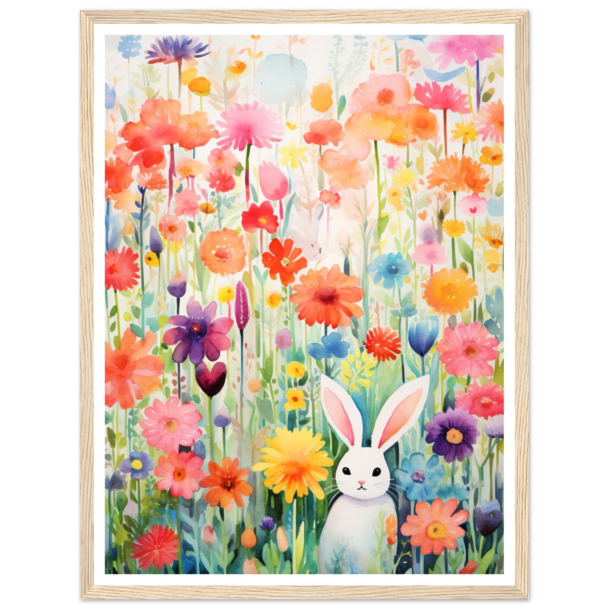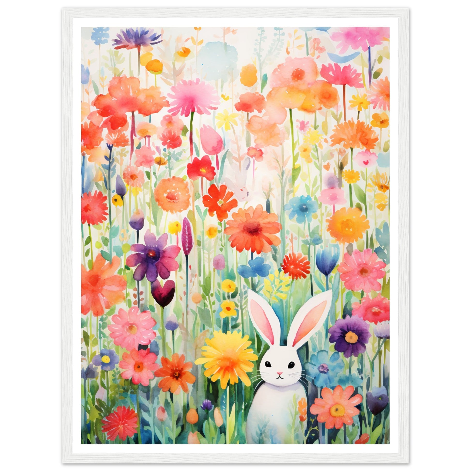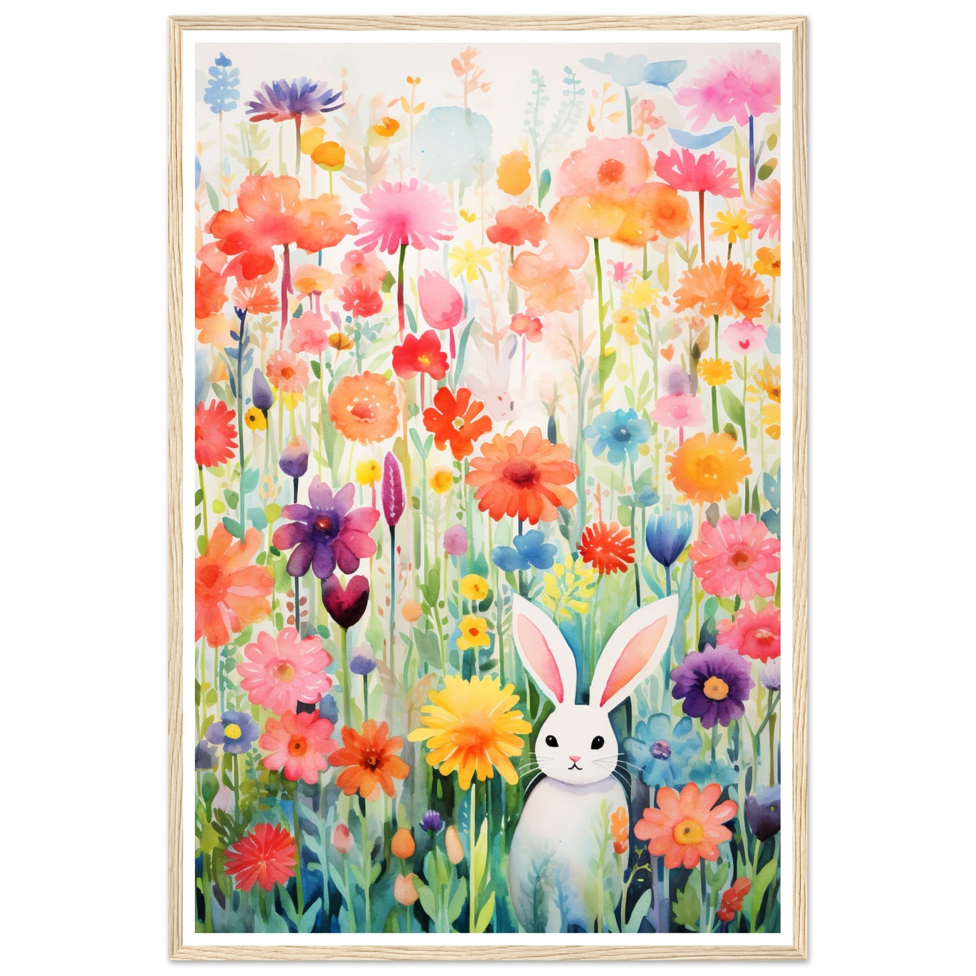 Perfect for those who appreciate the joyous chaos of vibrant flowers and the delightful surprise of a hidden rabbit, this watercolour painting adds a touch of magic to any space.