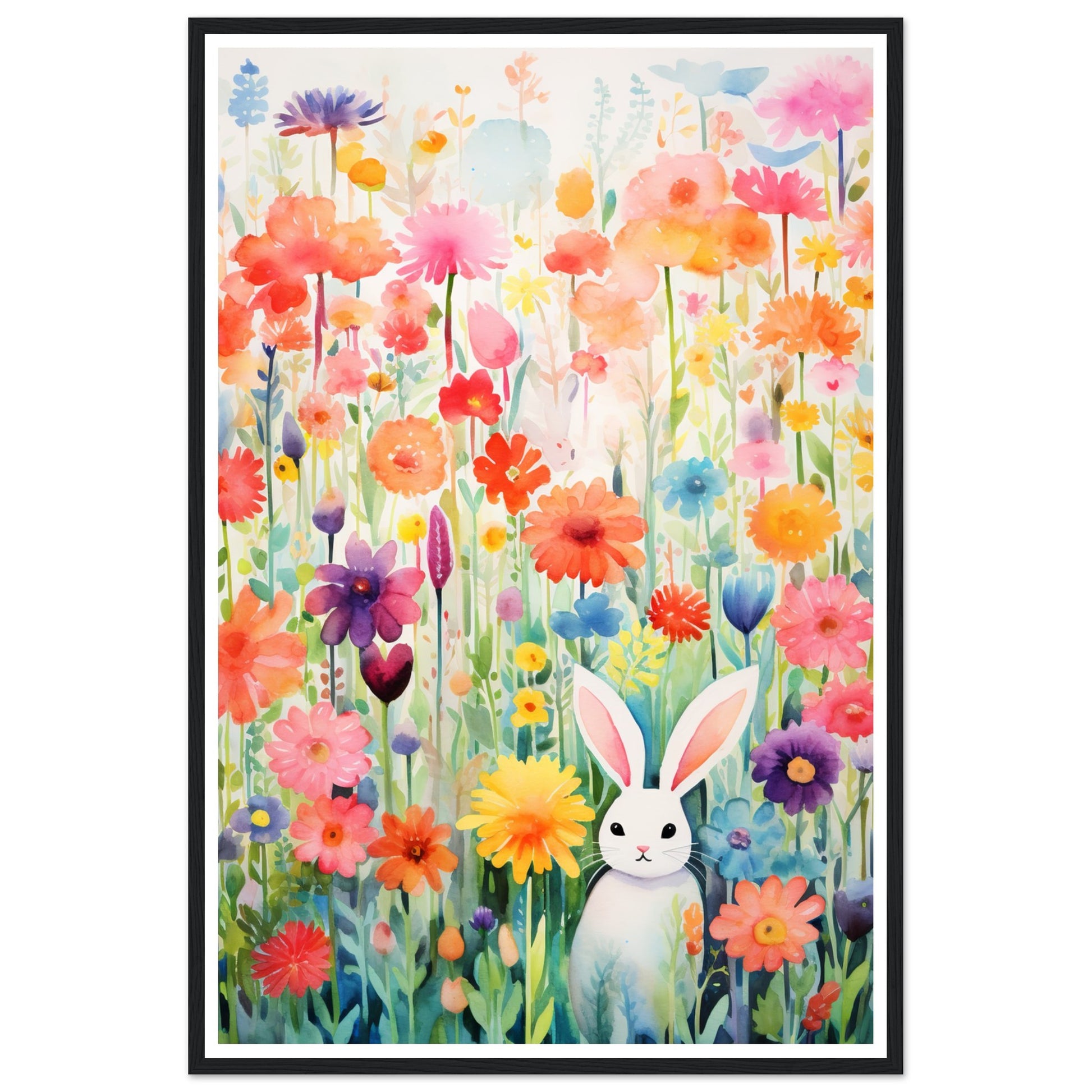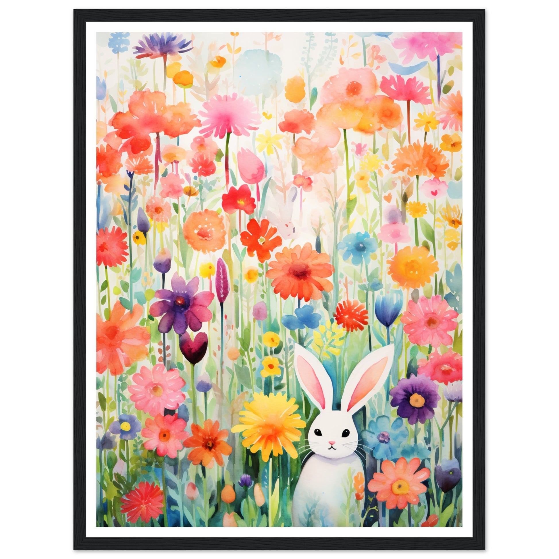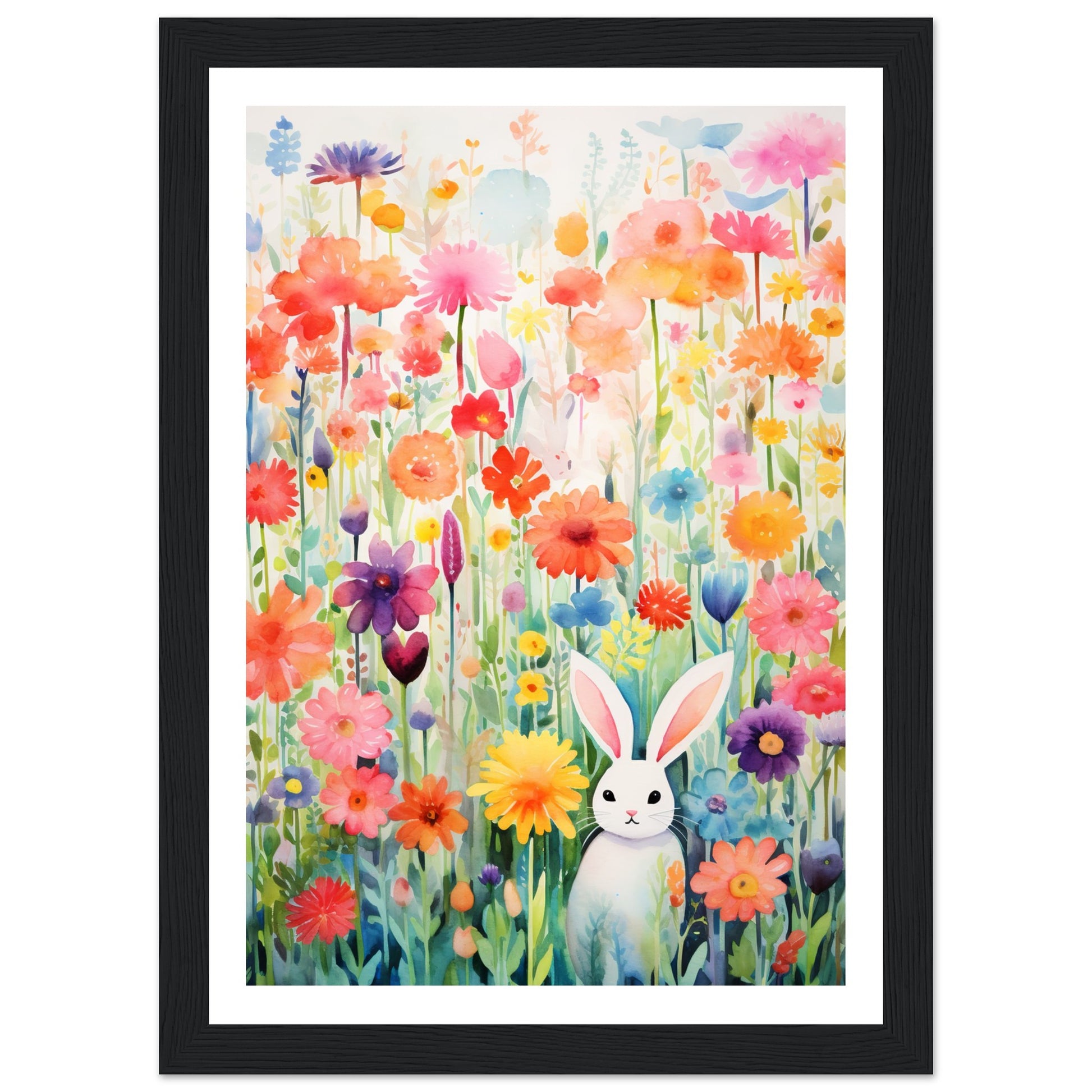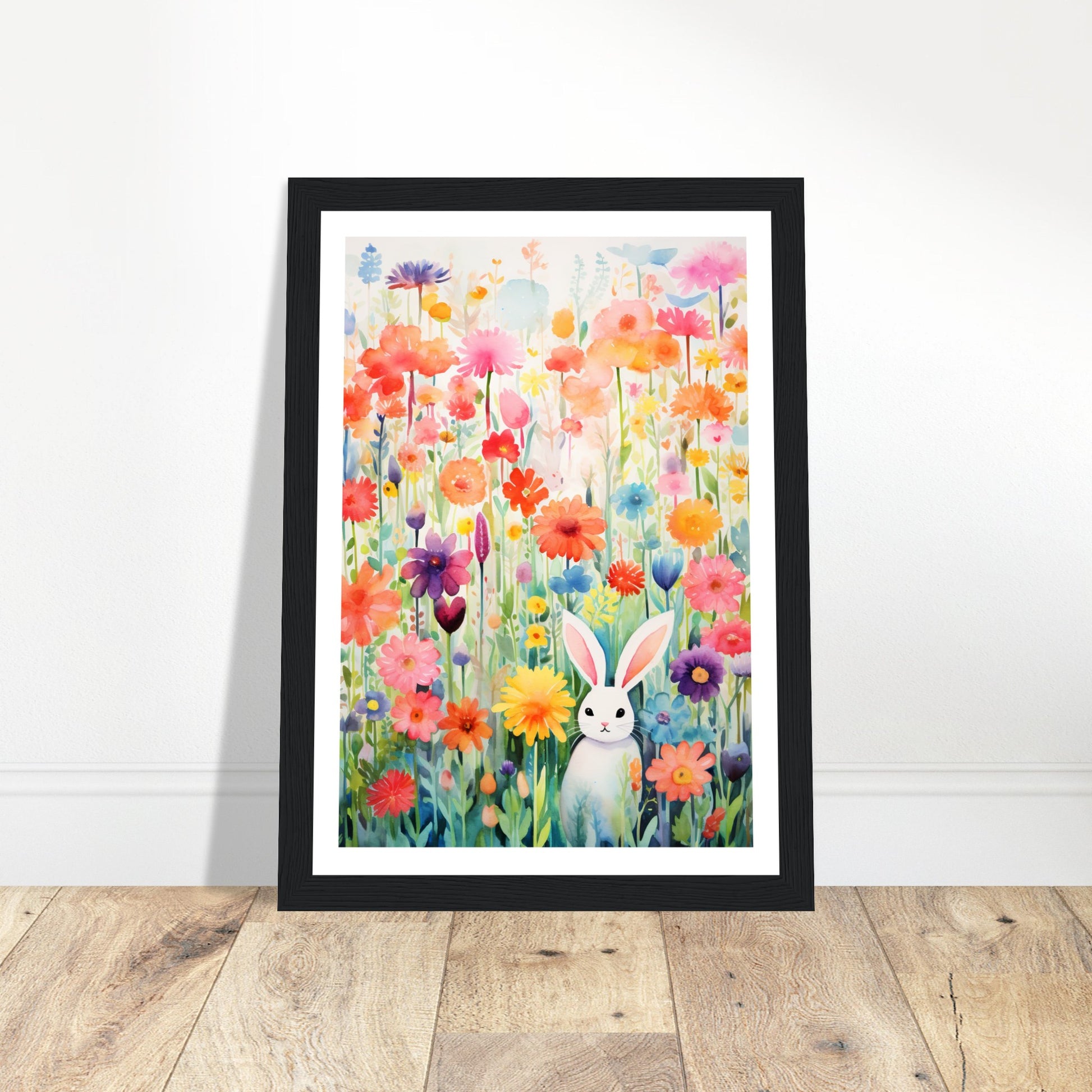 Perfect for those who appreciate the joyous chaos of vibrant flowers and the delightful surprise of a hidden rabbit, this watercolour painting adds a touch of magic to any space.