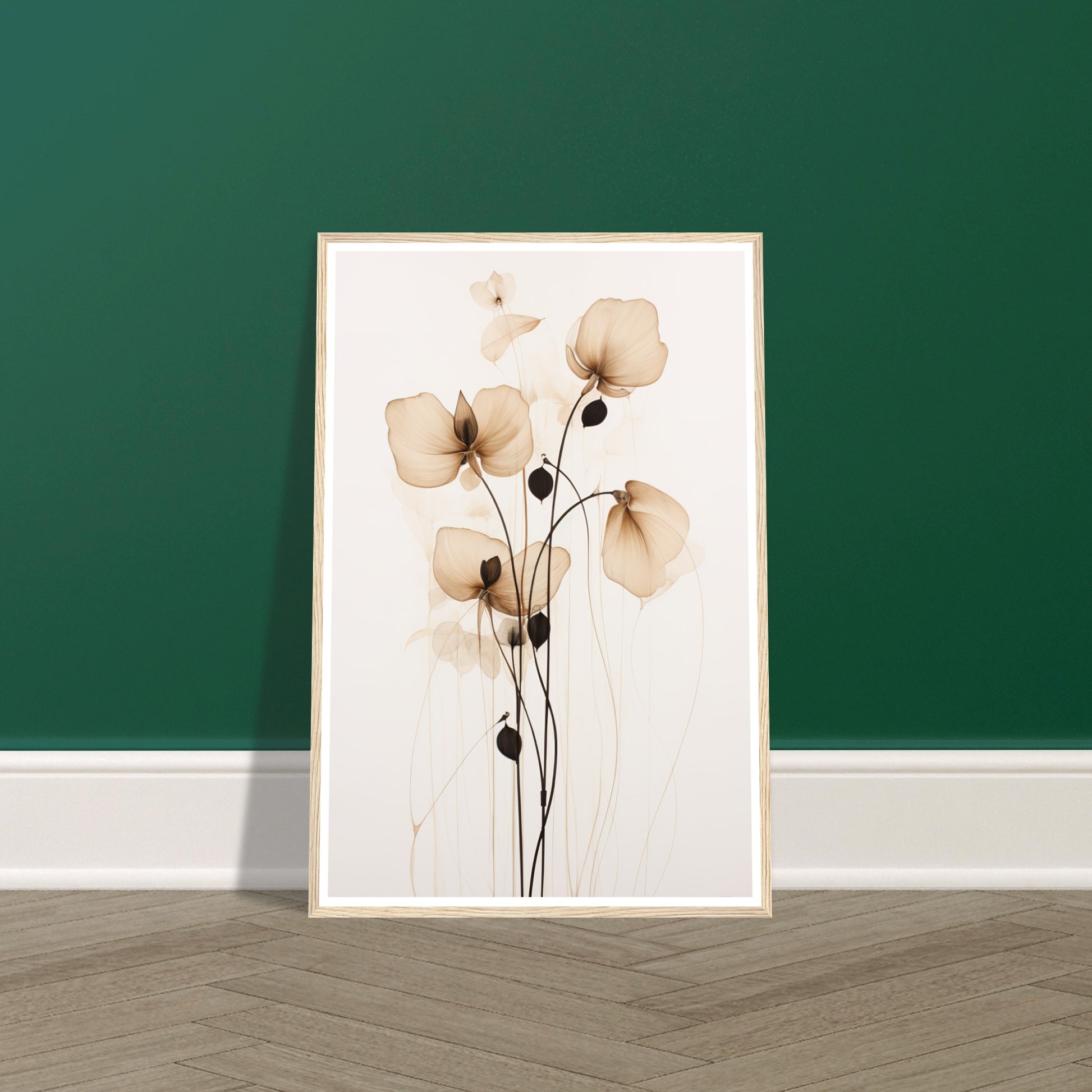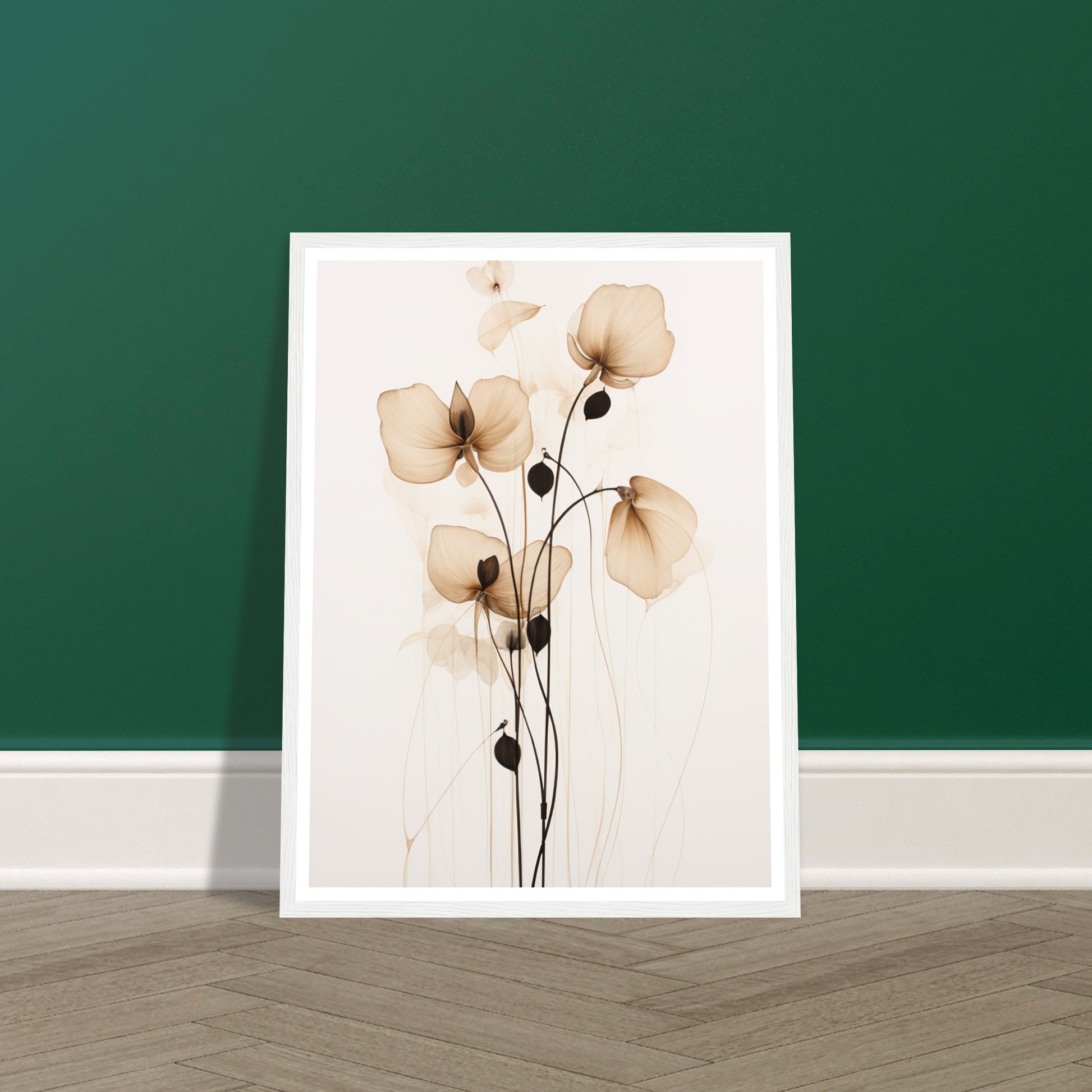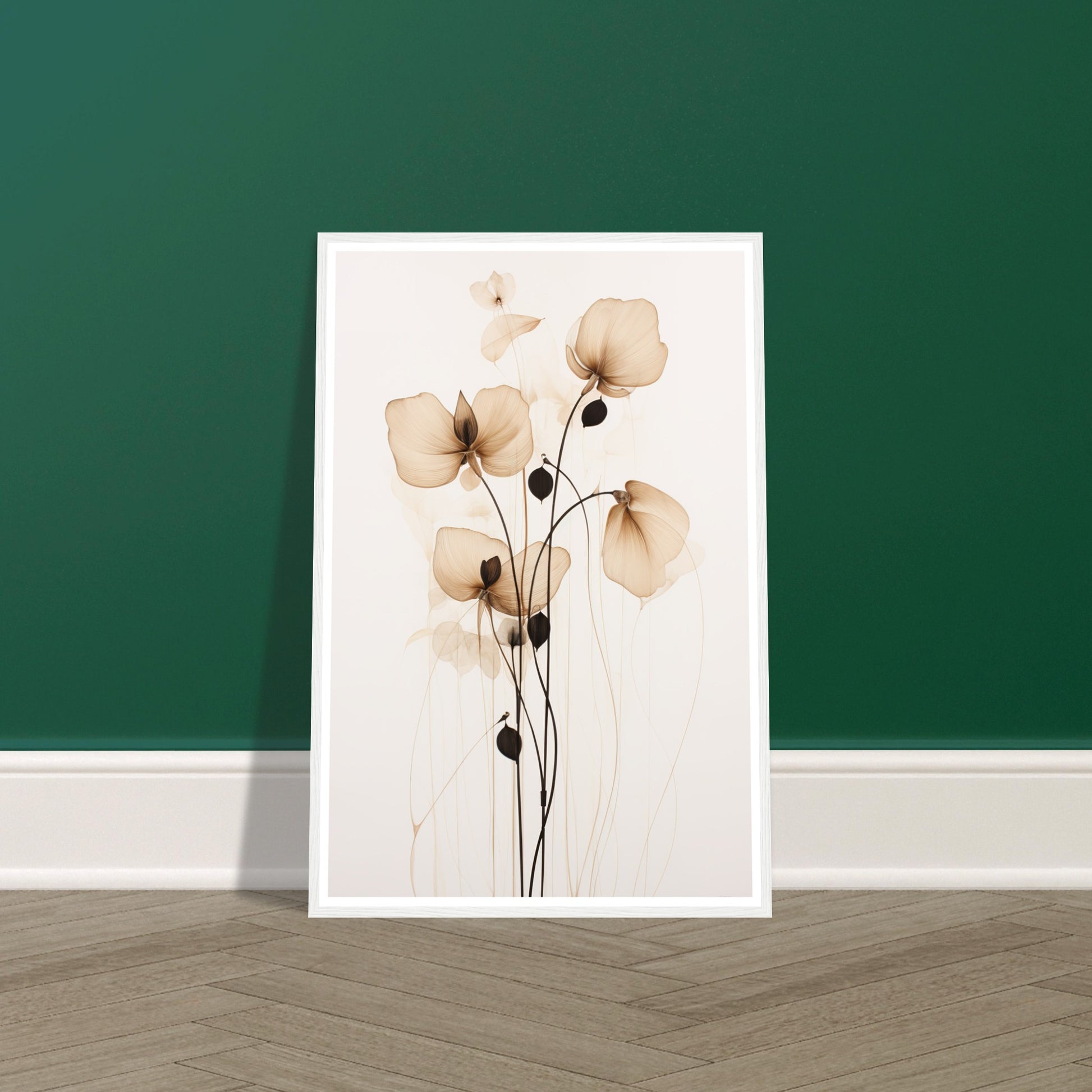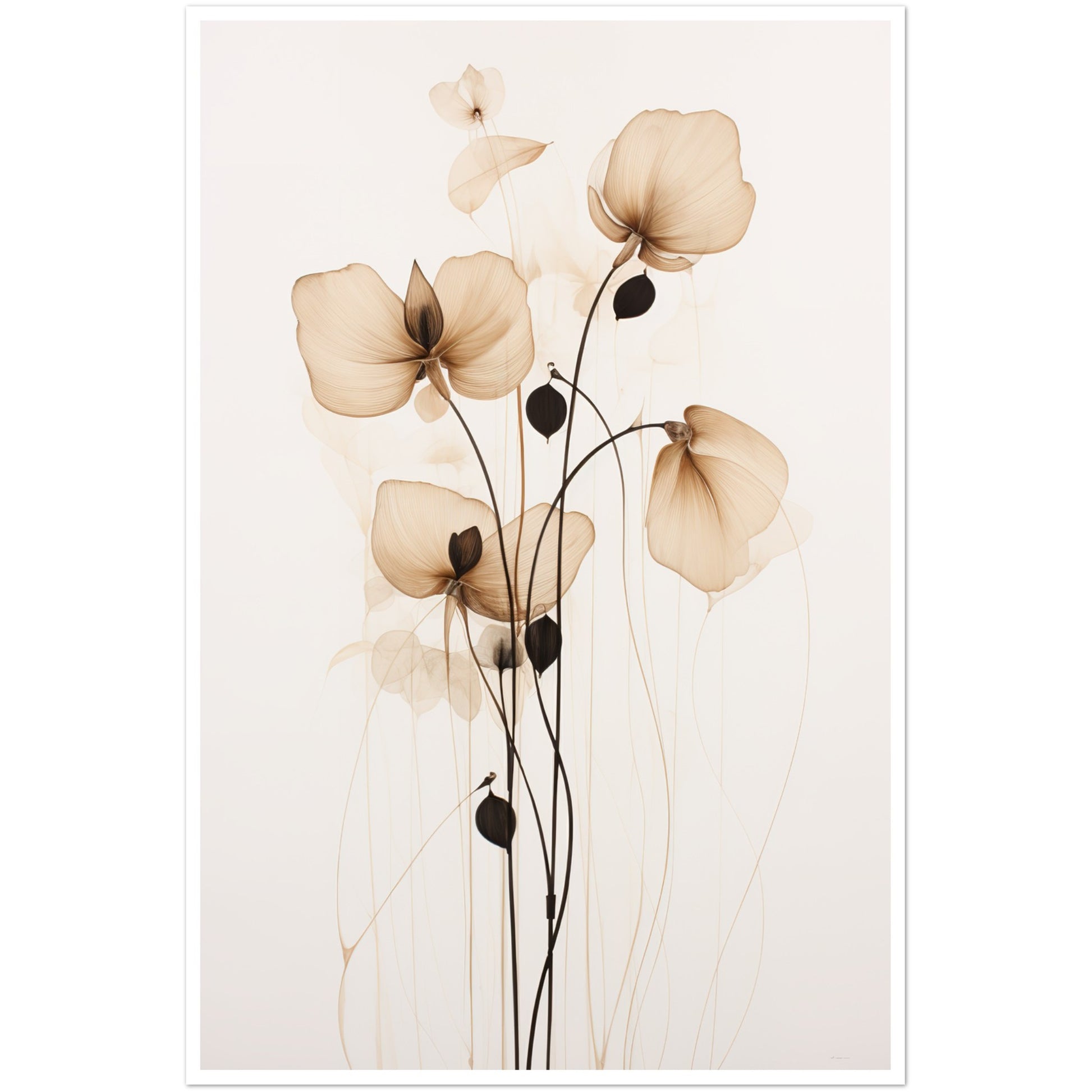 The minimalist approach allows for a delicate floral charm to emerge, where every line and watercolour stroke contributes to the overall whimsicality. The muted brown and beige tones create a sense of understated elegance, making it a perfect addition to spaces that appreciate the subtlety of artistic expression.