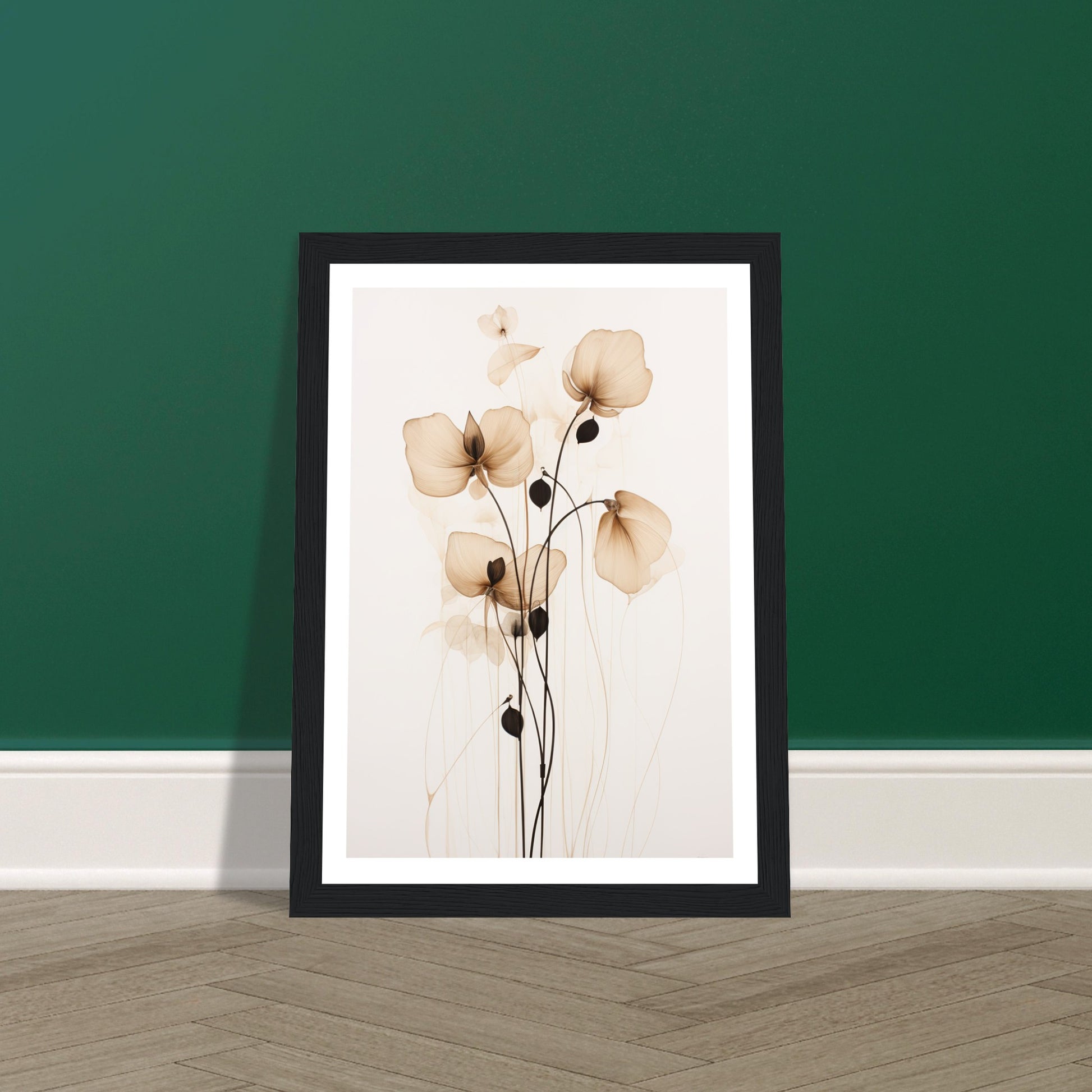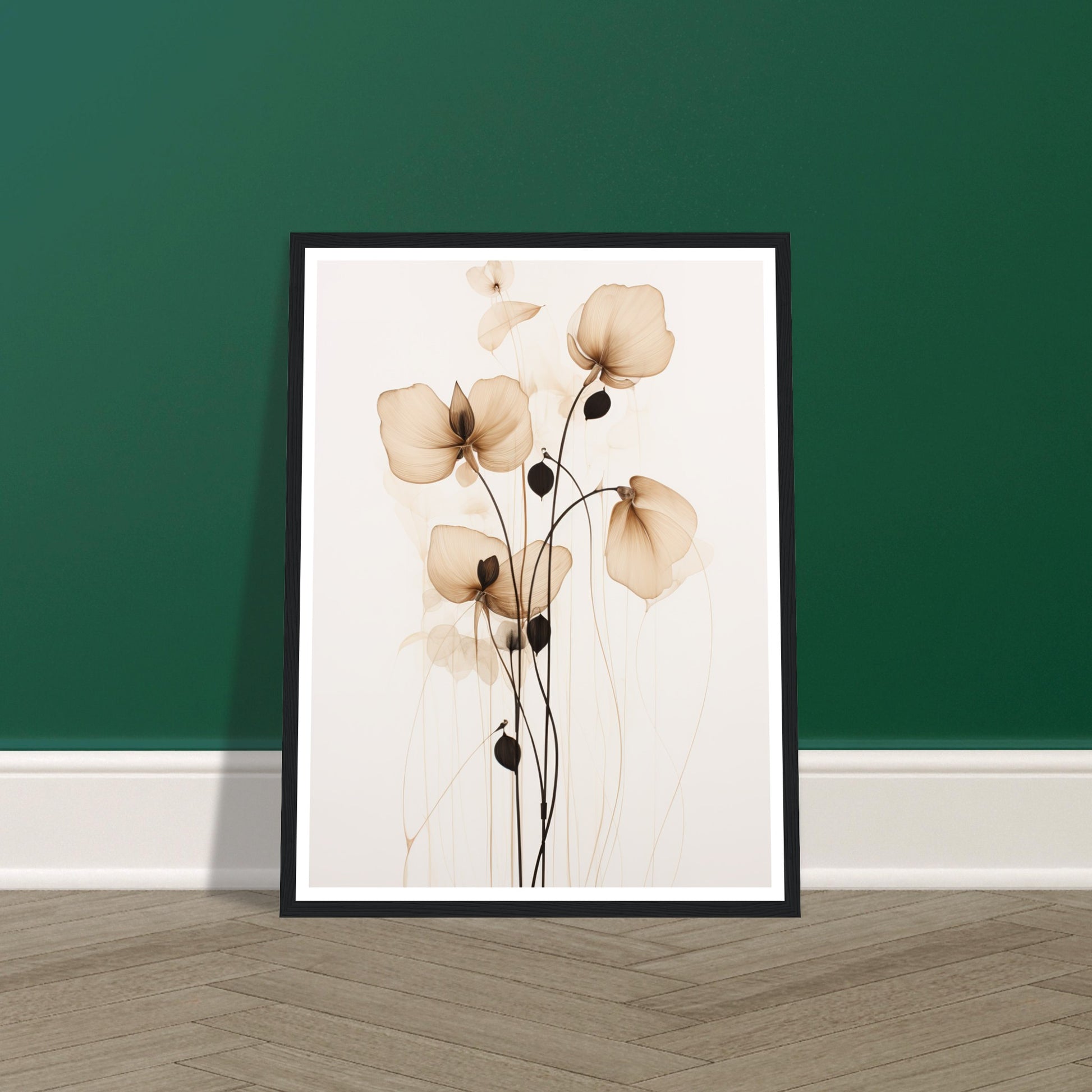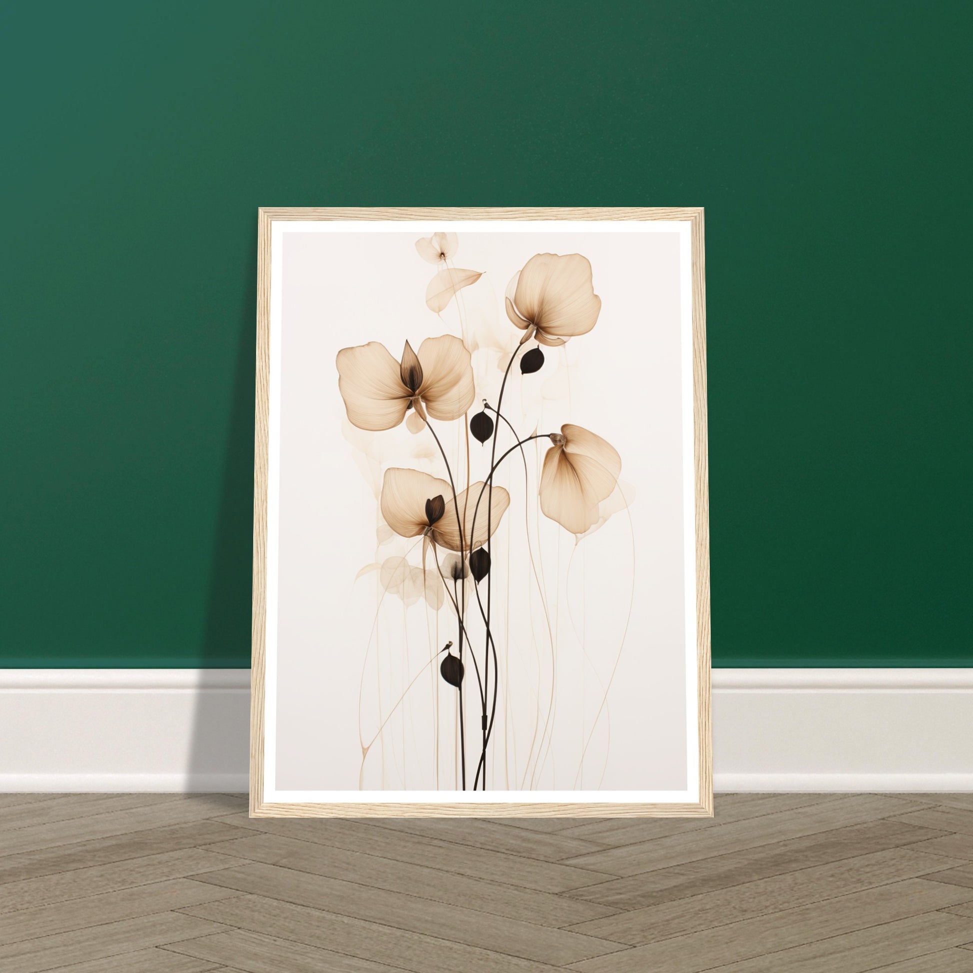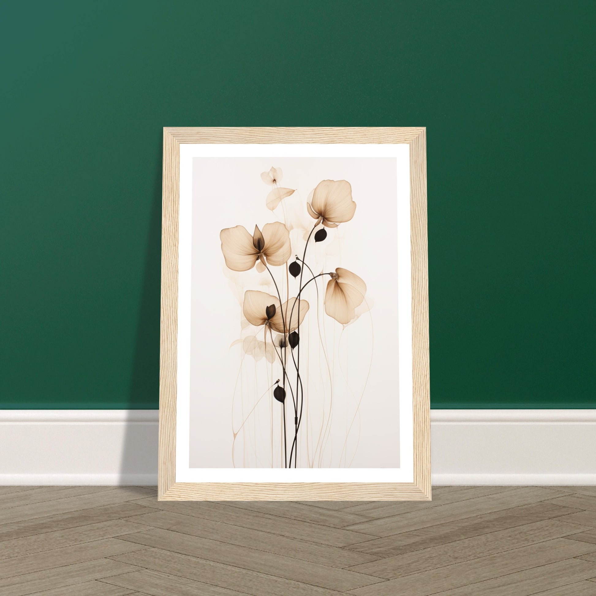 The minimalist approach allows for a delicate floral charm to emerge, where every line and watercolour stroke contributes to the overall whimsicality. The muted brown and beige tones create a sense of understated elegance, making it a perfect addition to spaces that appreciate the subtlety of artistic expression.