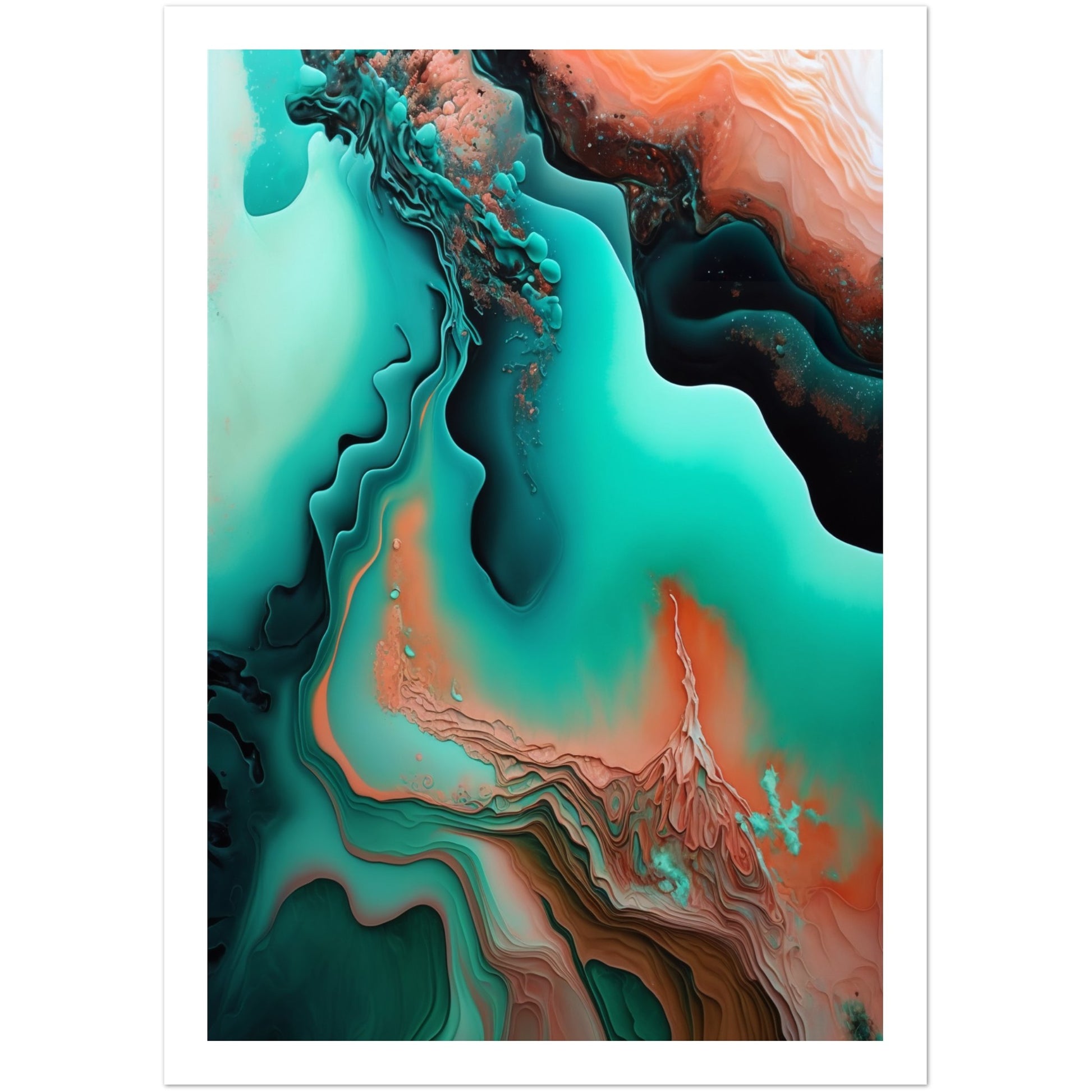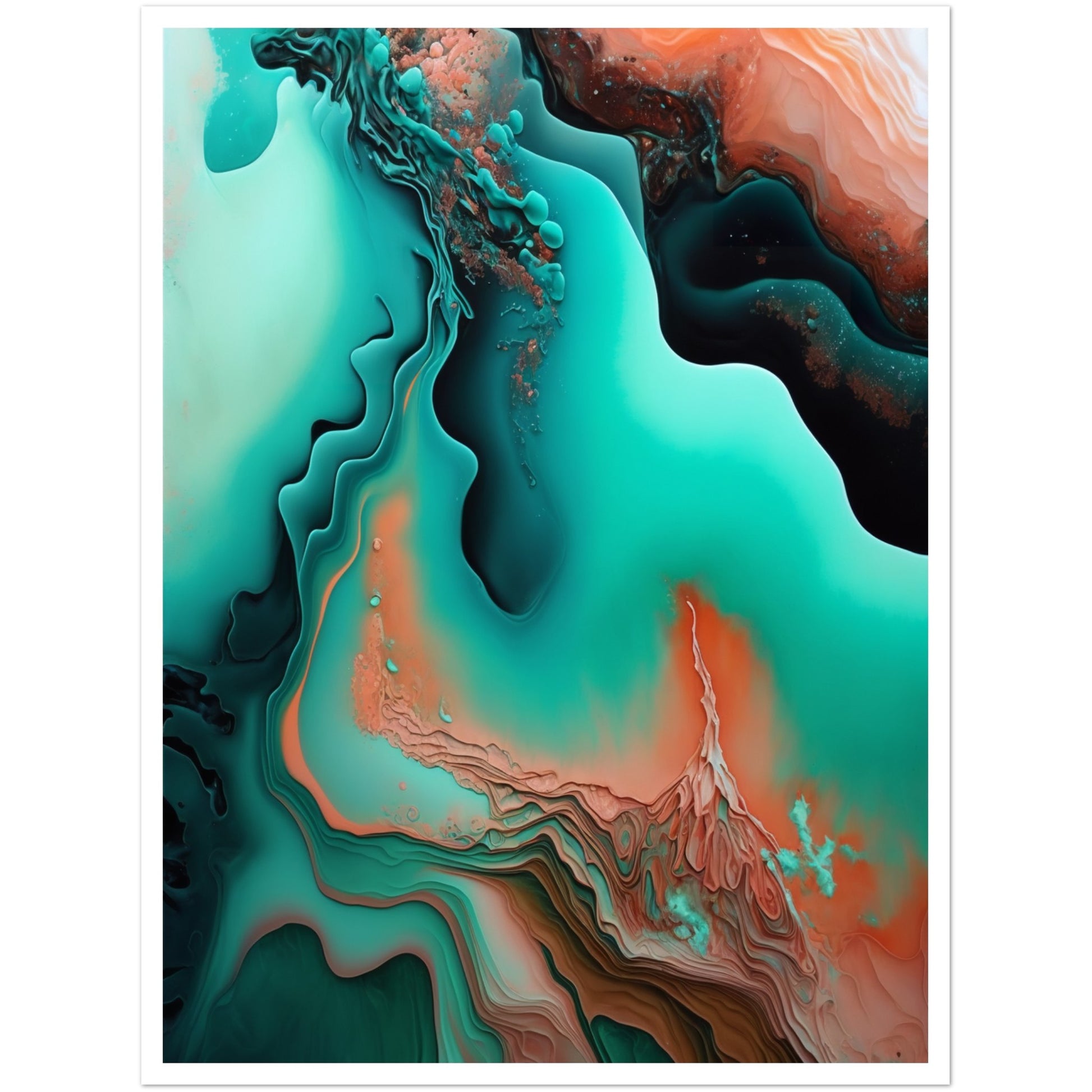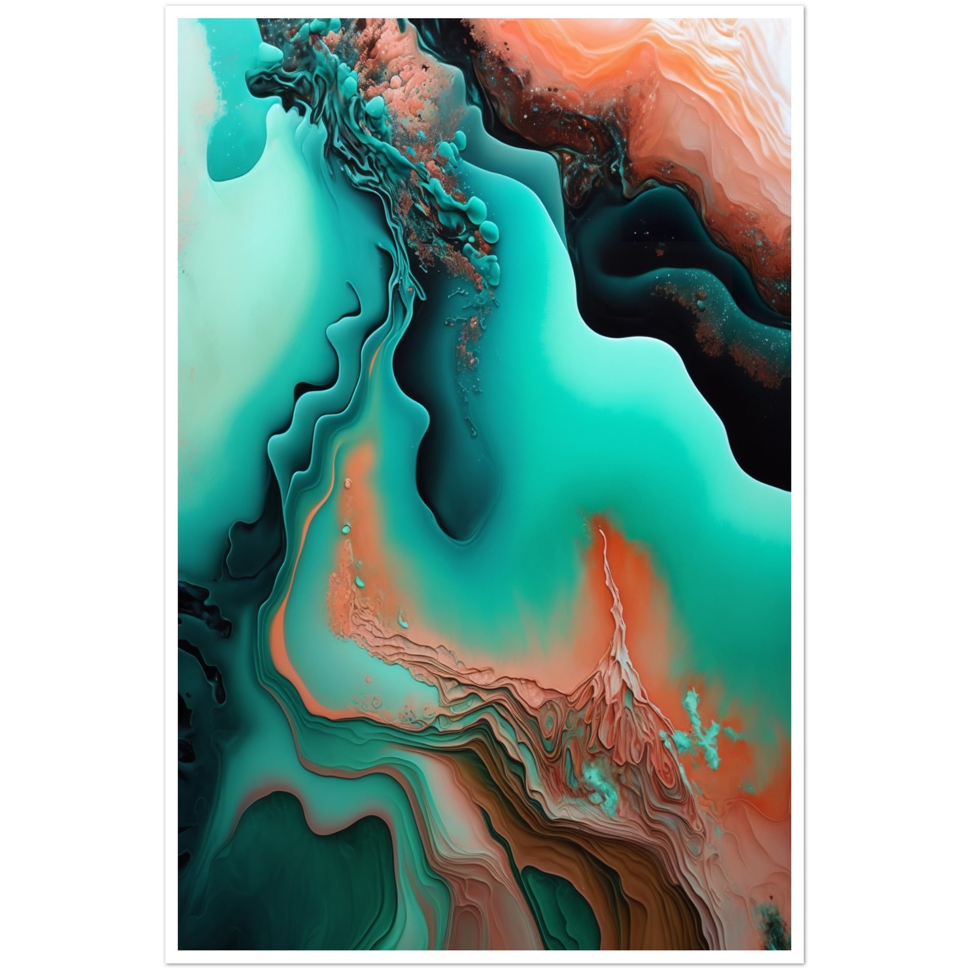 Introducing our Teal and Salmon abstract painting, a stunning piece of art that will add depth and complexity to any room. The fluid paint technique used in this piece creates a beautiful flow of colors, with a aspect ratio that is perfect for any wall. With its vibrant teal and salmon hues, this painting is sure to be a conversation starter and a focal point in any space.