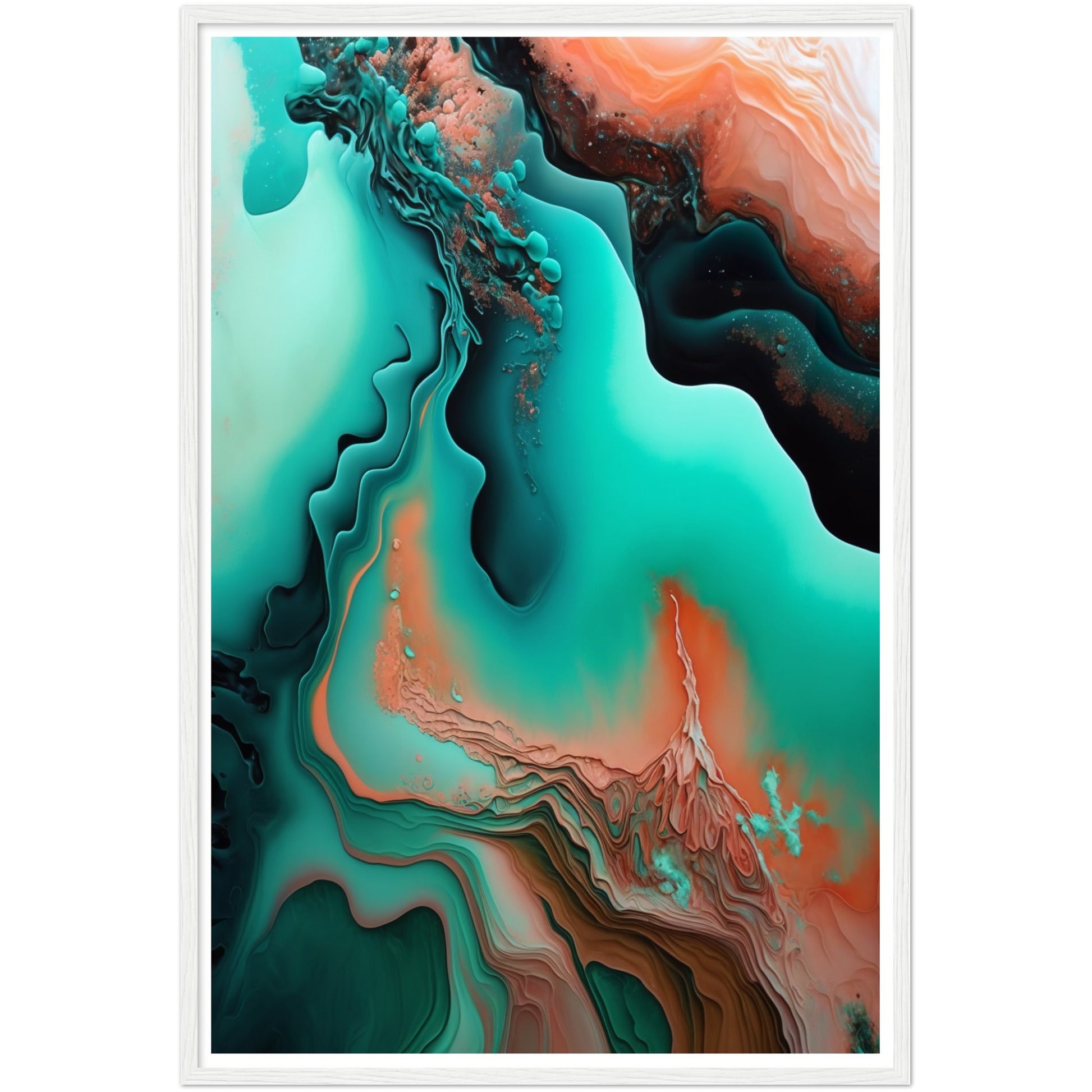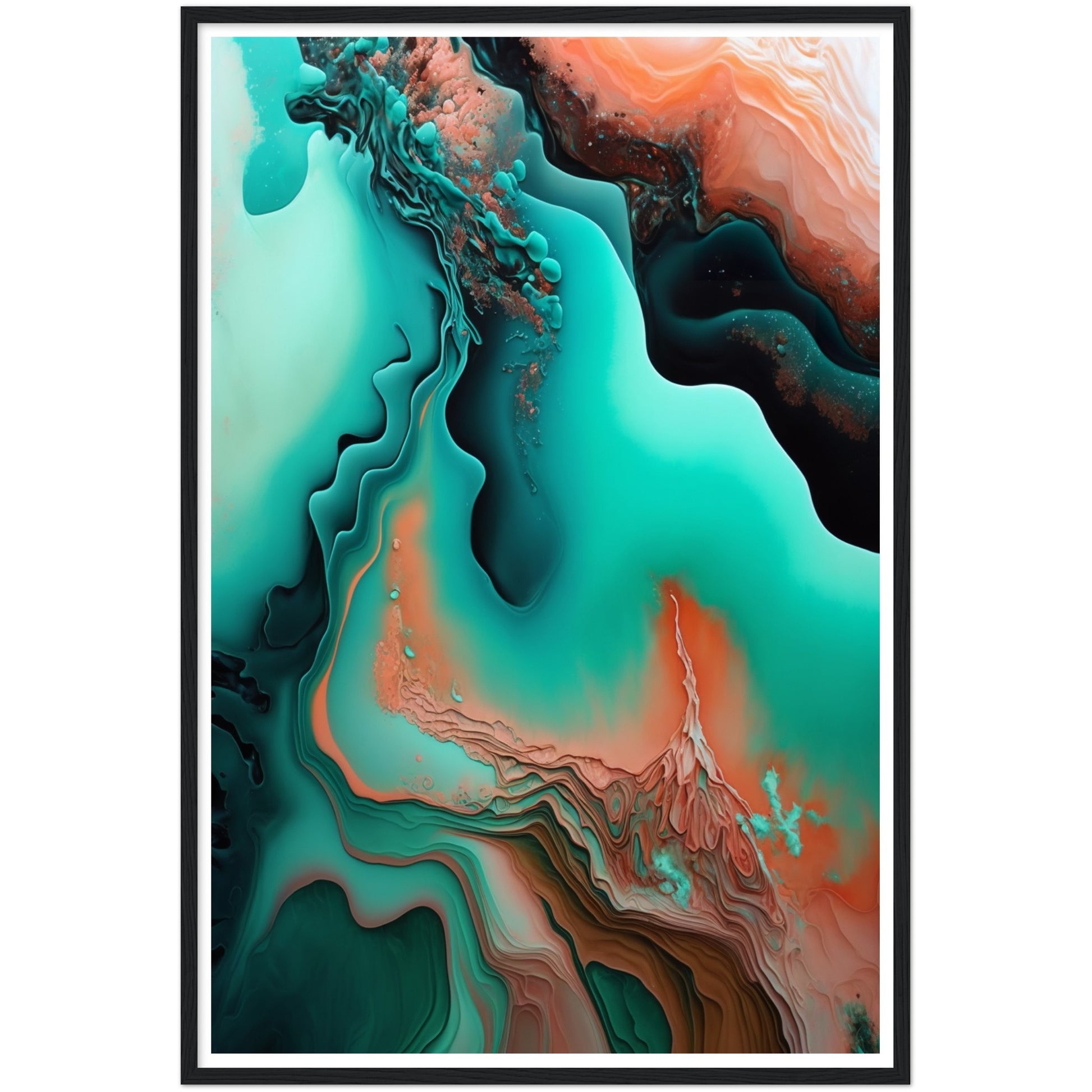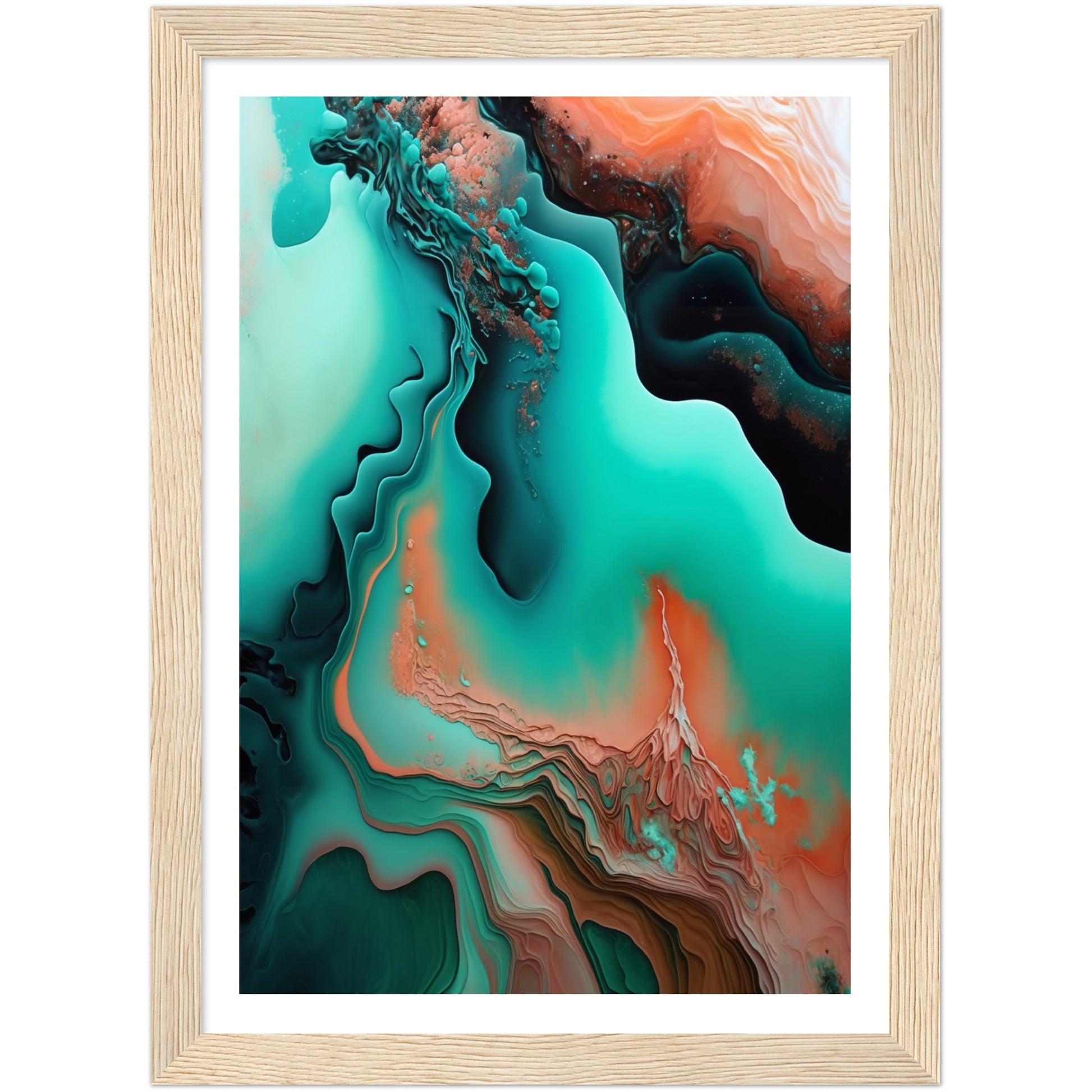 Introducing our Teal and Salmon abstract painting, a stunning piece of art that will add depth and complexity to any room. The fluid paint technique used in this piece creates a beautiful flow of colors, with a aspect ratio that is perfect for any wall. With its vibrant teal and salmon hues, this painting is sure to be a conversation starter and a focal point in any space.