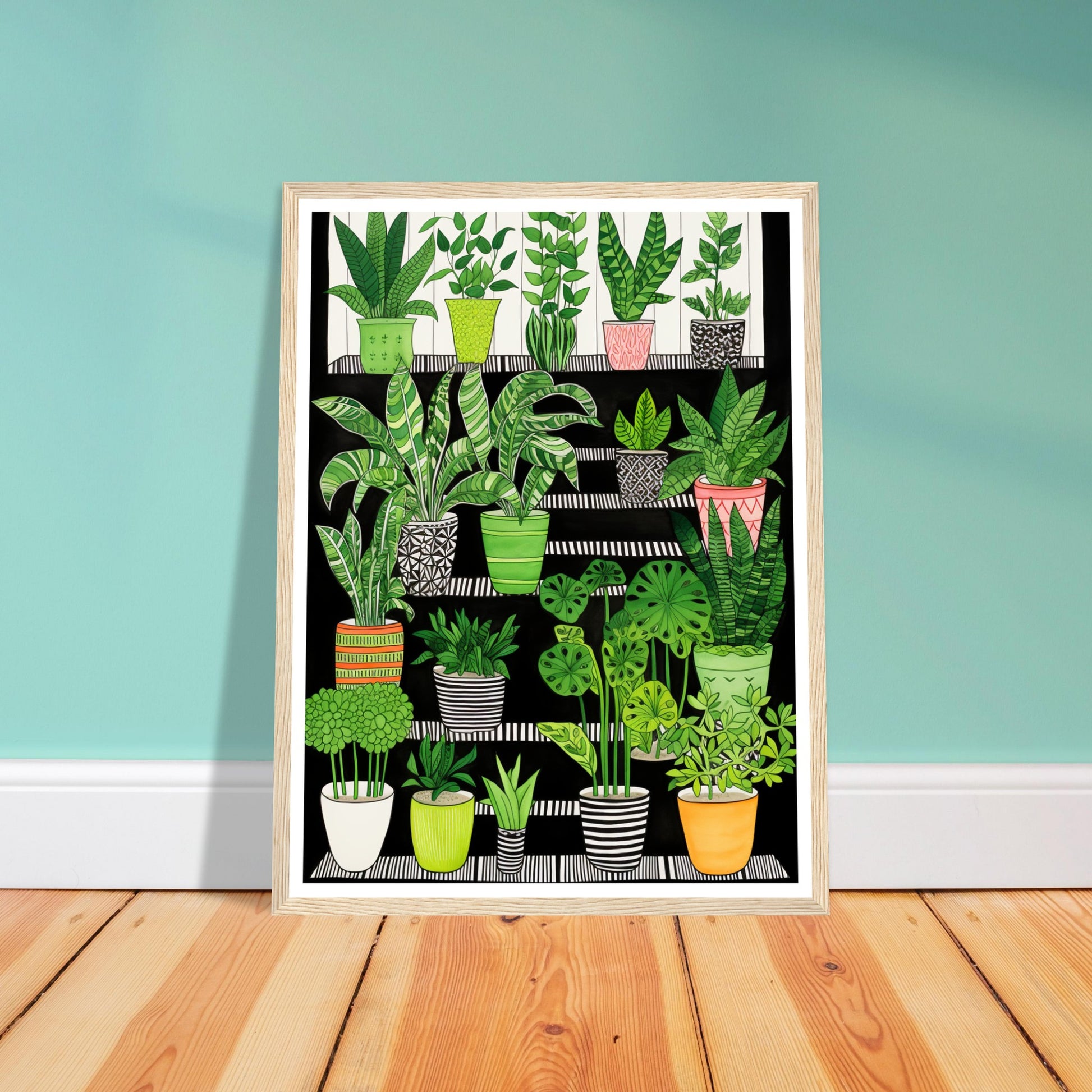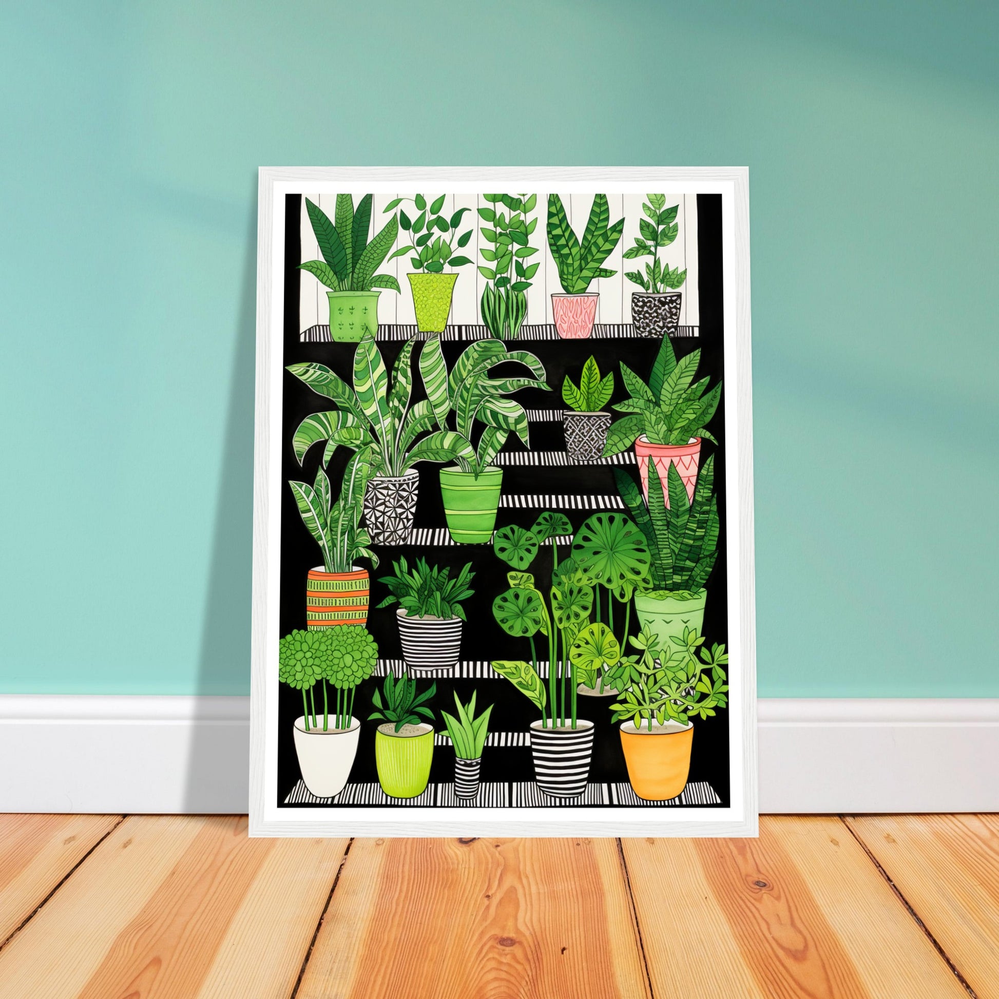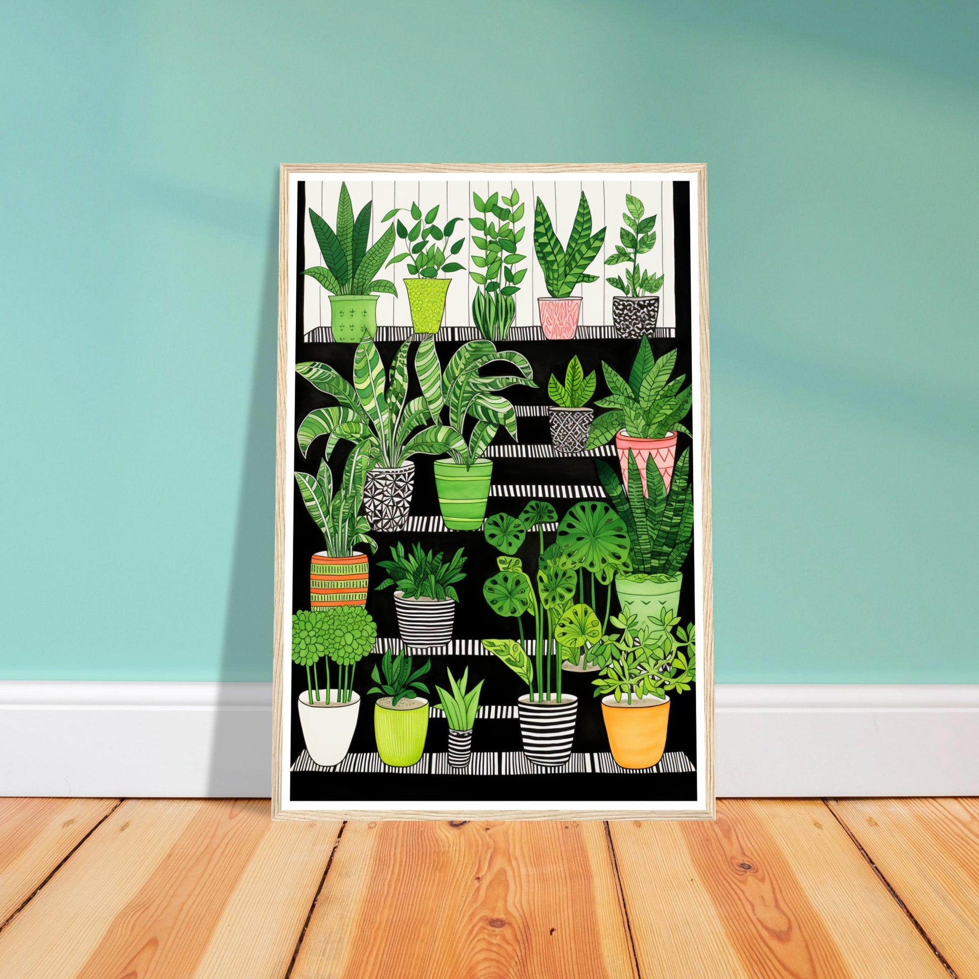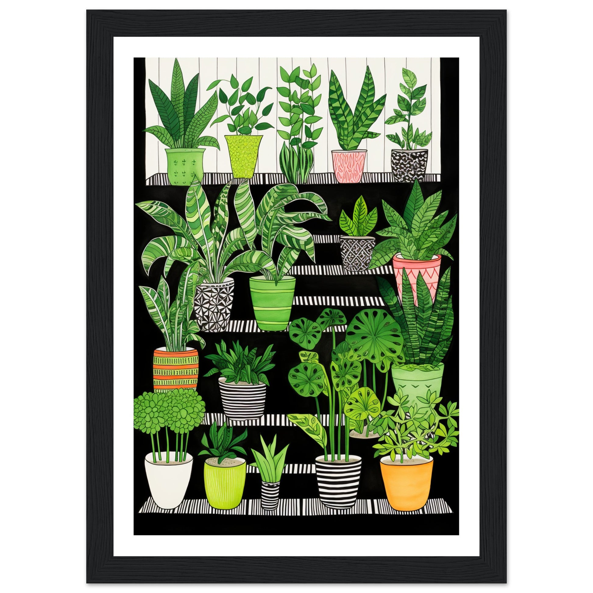 Folklore-Inspired Staircase and Potted Plants Wall Art Print