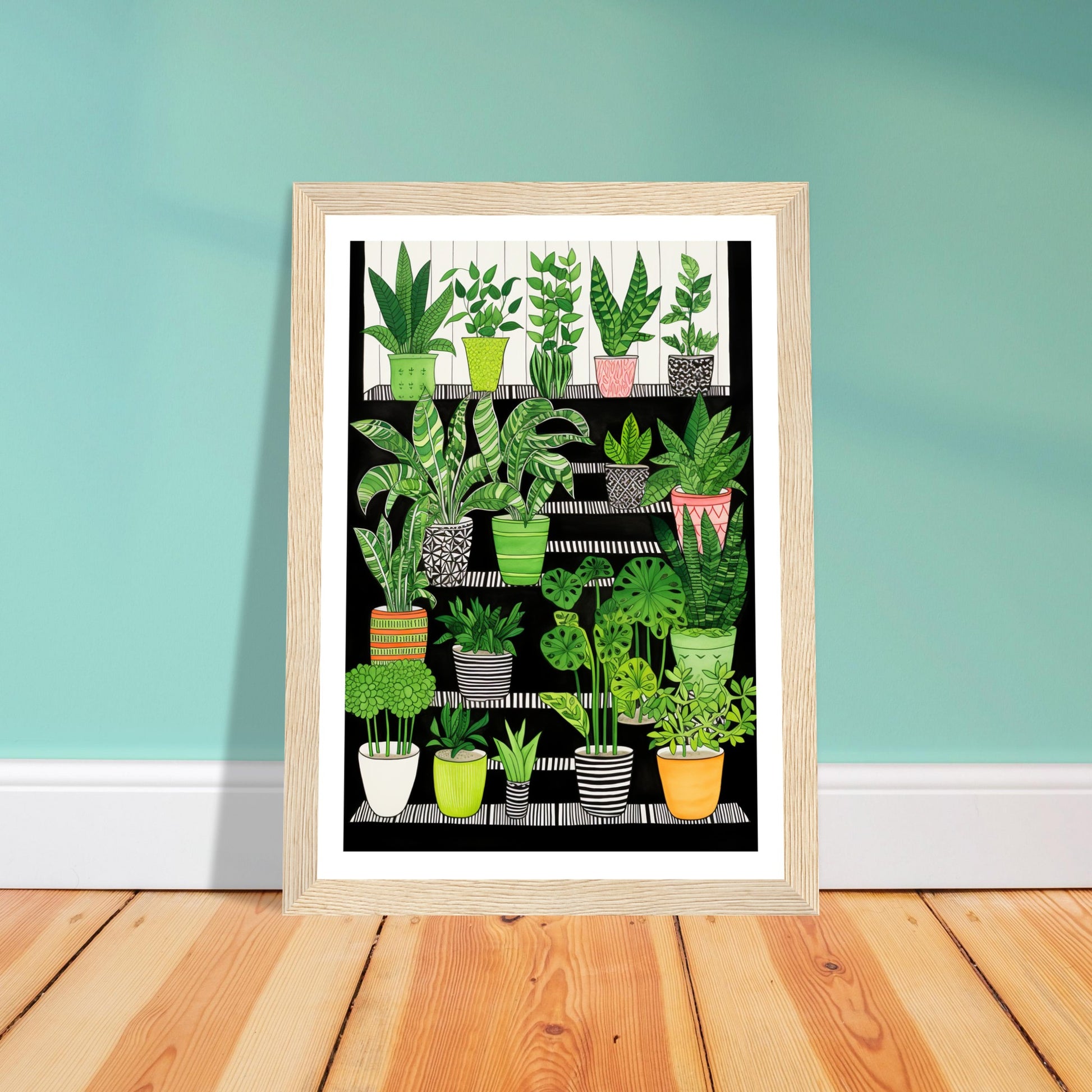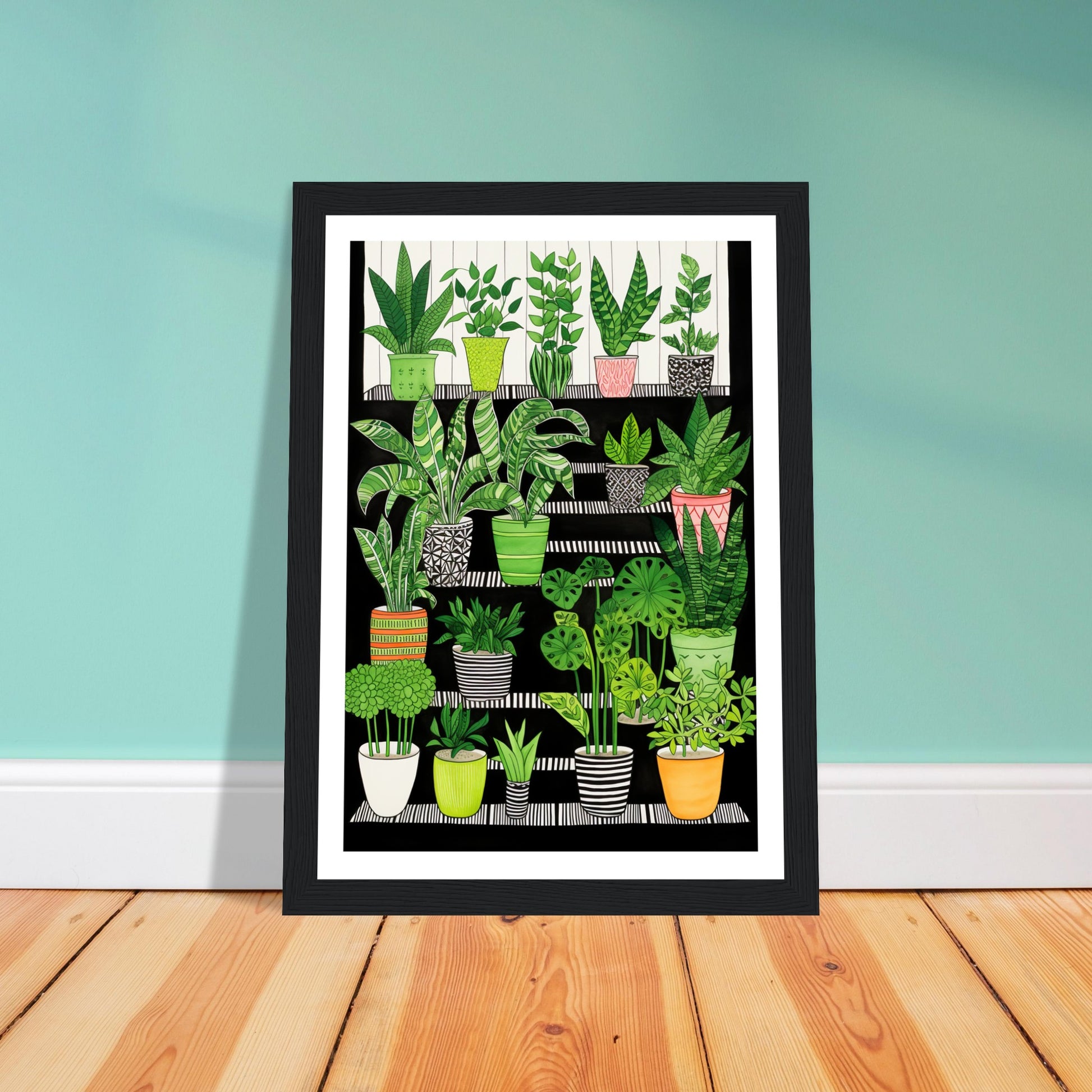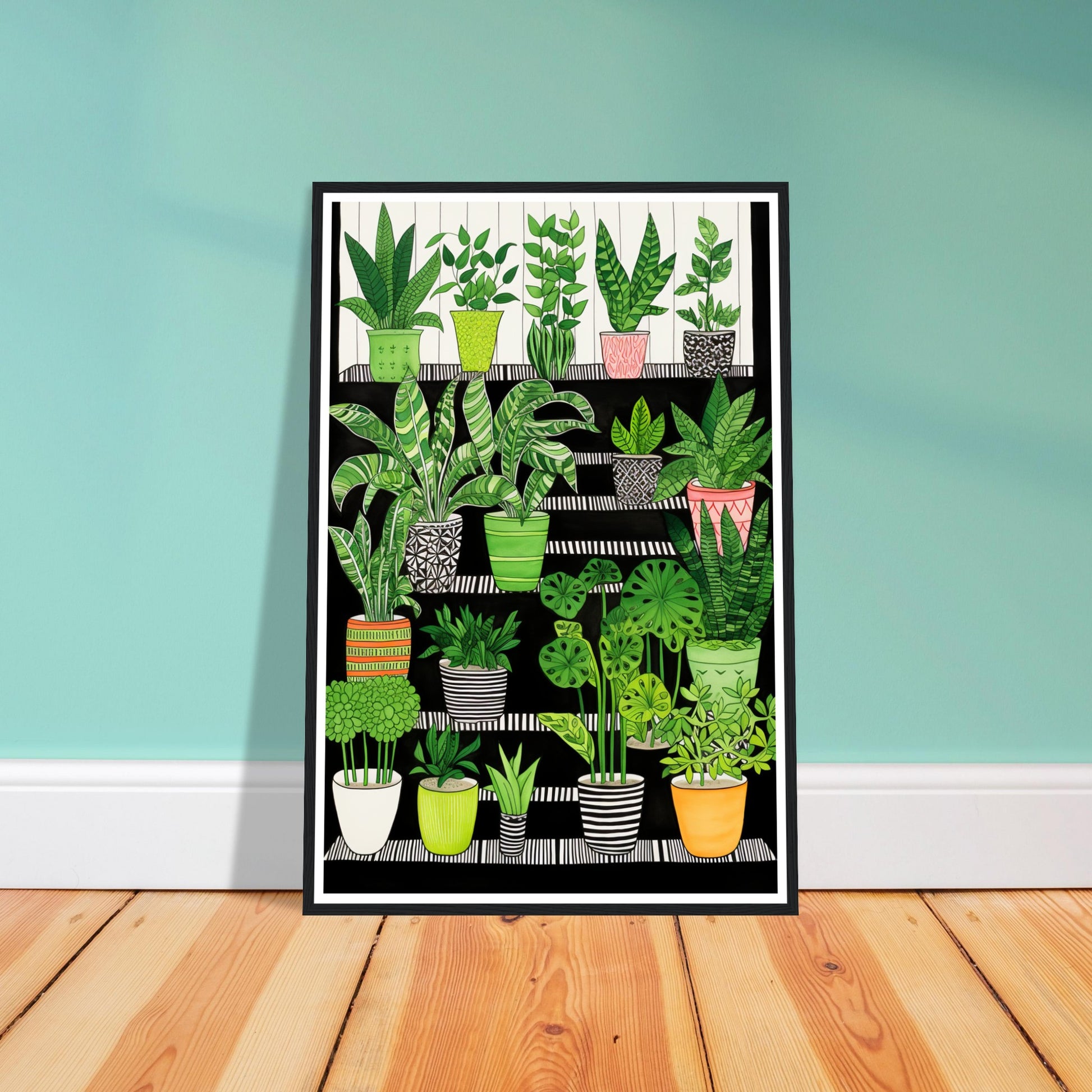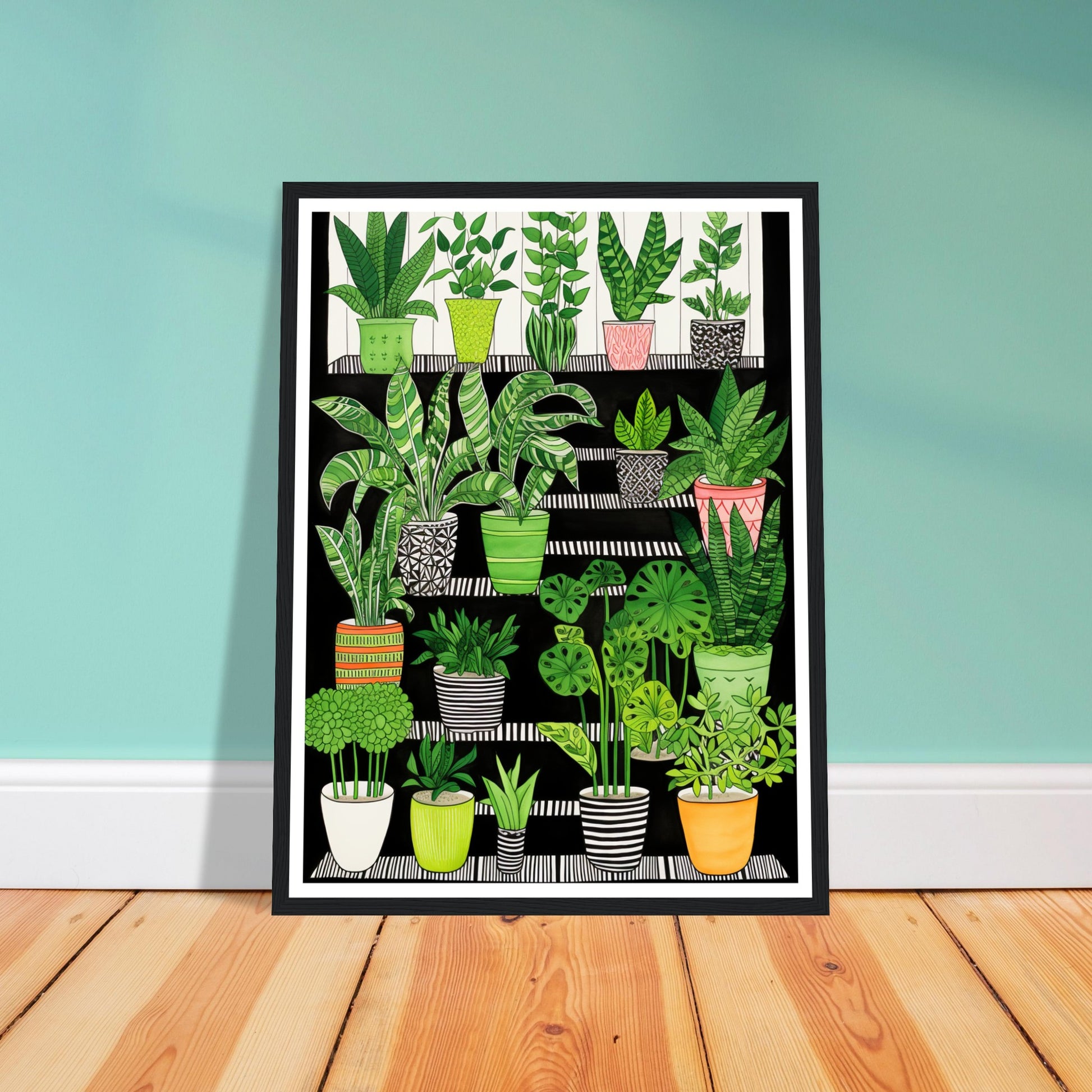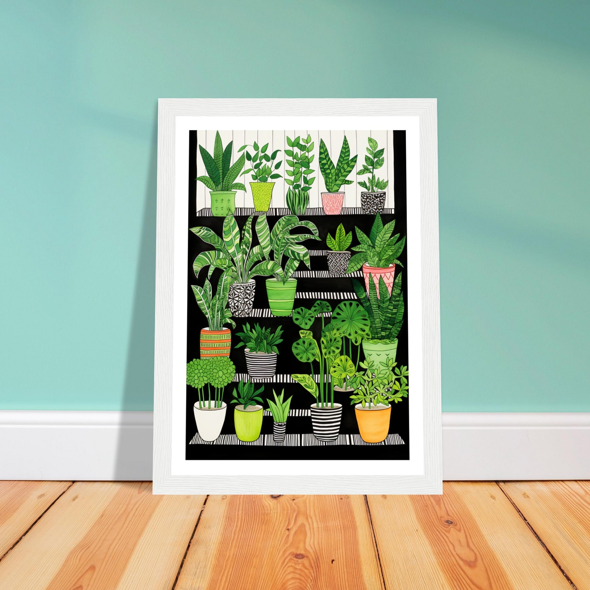 Folklore-Inspired Staircase and Potted Plants Wall Art Print