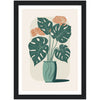 This minimalist illustration features a monstera house plant in a vase against a light background. The flat design adds a modern touch to the classic aesthetic. The simplicity of the design allows for it to seamlessly blend in with any decor style.