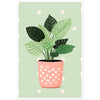 Playful Green House Plant in Pink Polka Dot Vase Wall Art Print